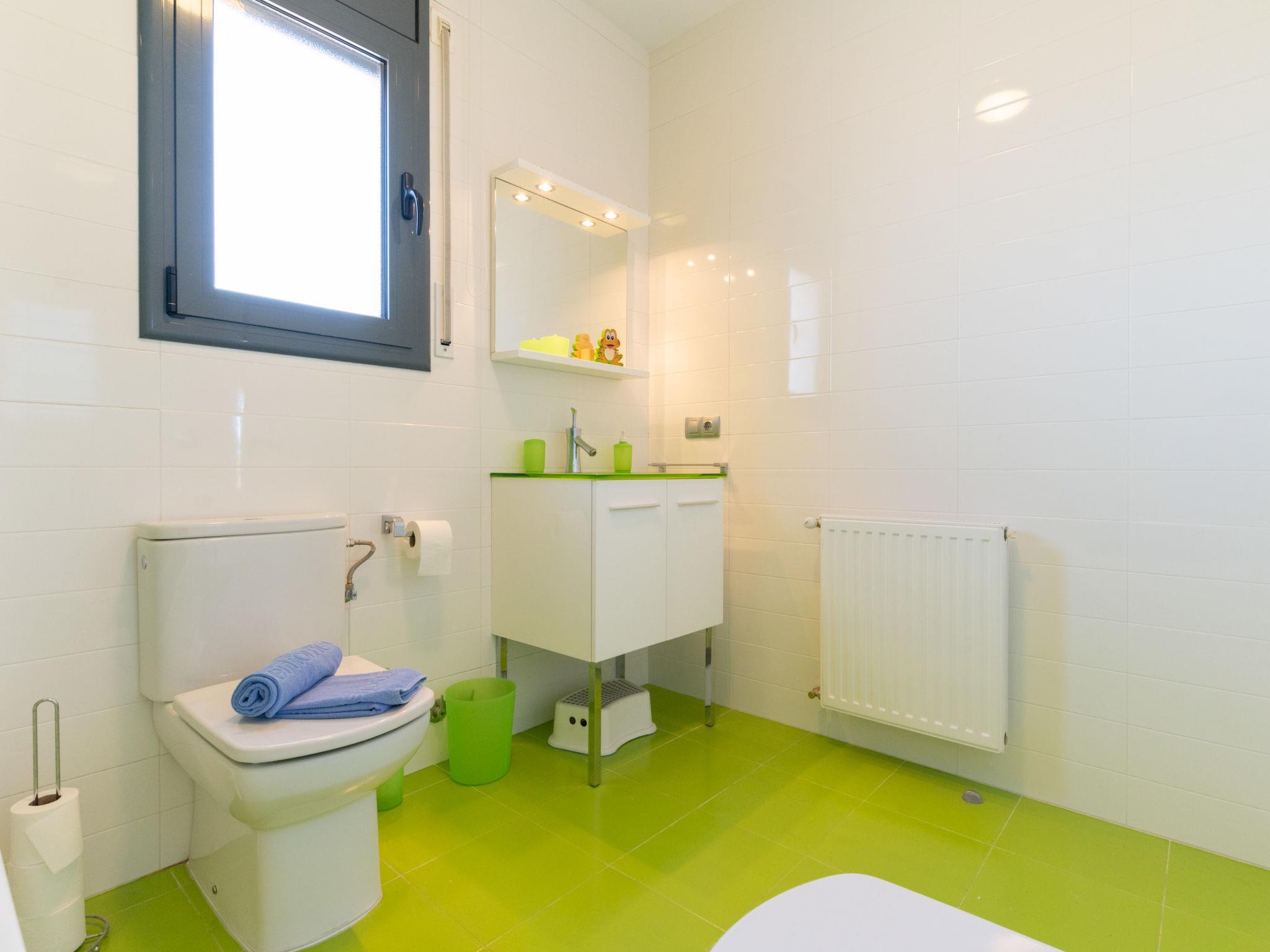 5-room semi-detached house 160 m2 on 2 levels. Modern furnishings: living/dining room with digital TV, flat screen, DVD, air conditioning and forced-air heating. Exit to the terrace, to the swimming pool. 1 room with 1 double sofabed (140 cm, length 200 cm). Kitchen (oven, dishwasher, 3 ceramic glass hob hotplates, toaster, microwave, freezer). Exit to the terrace, to the swimming pool. Sep. WC. Heating. Upper floor: 1 room with 1 french bed (160 cm, length 200 cm), shower/WC, air conditioning and forced-air heating. Exit to the balcony. 1 room with 1 bed (140 cm, length 200 cm), air conditioning and forced-air heating. 1 room with 1 french bed (135 cm, length 190 cm), air conditioning and forced-air heating. Bath/WC. Small balcony, large terrace. Terrace furniture, barbecue. Facilities: washing machine, iron, children's high chair, baby cot, hair dryer, baby changing unit. Internet (WiFi, free). Garage. Please note: non-smoking house. Maximum 1 pet/ dog allowed. TV only ES. HUTG-074875 // Reg. Nr.: ESFCTU00001702000057860600000000000000000HUTG-0748758