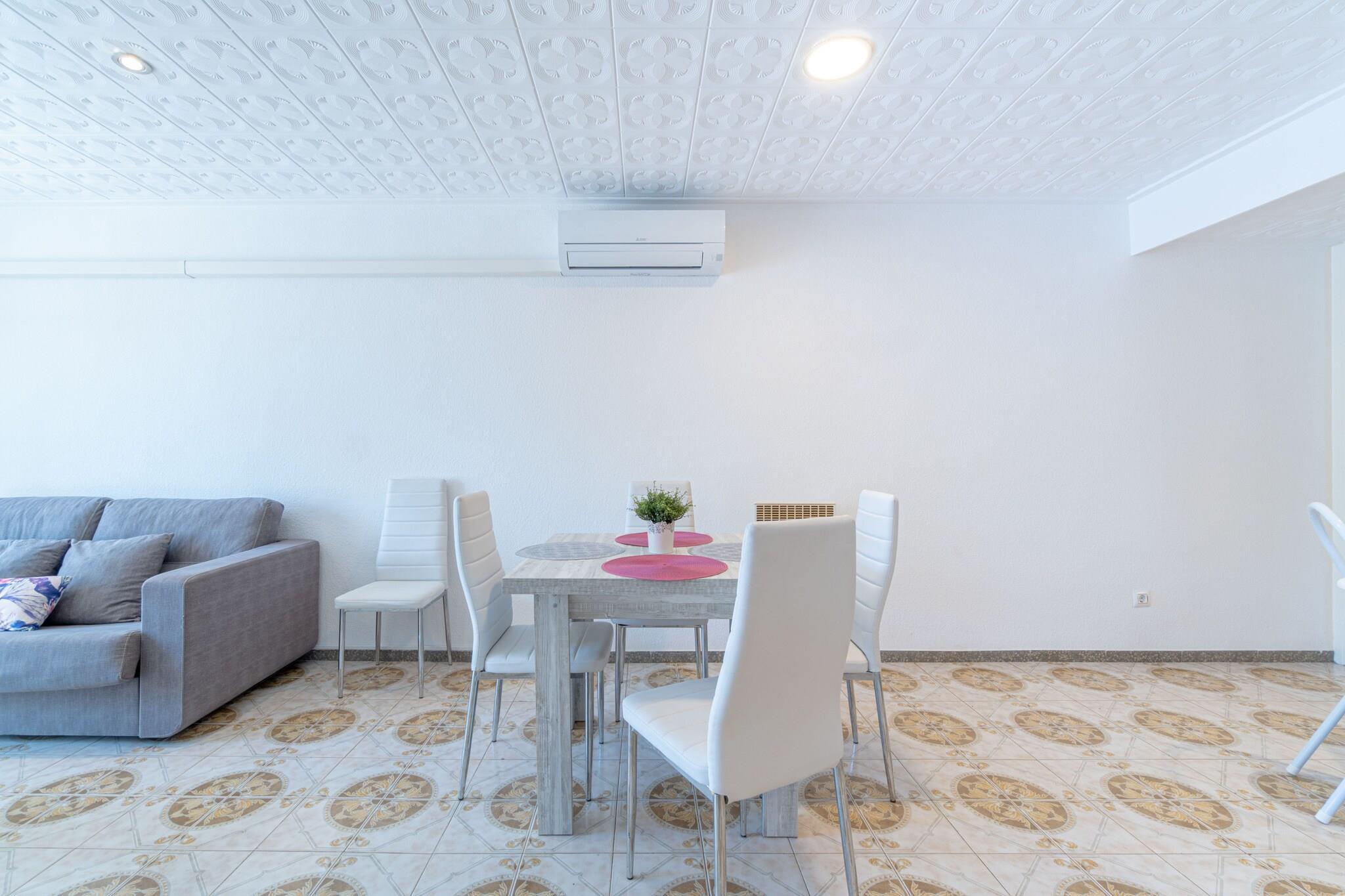 Denne lyse og rummelige lejlighed med 2 soveværelser i Empuriabrava er ideel til familier eller små grupper og har komfortabel plads til op til 6 gæster. Med et boligareal på 63 m² og en privat terrasse tilbyder den en afslappet og praktisk beliggenhed kun 1 km fra sandstranden og 800 meter fra et supermarked. Beliggende i et livligt, familievenligt kvarter tæt på butikker og restauranter er det en god base for at udforske Costa Brava. Lejligheden har to dobbeltværelser og en dobbelt sovesofa i opholdsstuen. Det åbne køkken er fuldt udstyret med keramisk kogeplade, ovn, mikrobølgeovn, kaffemaskine, brødrister og elkedel. Gæsterne kan nyde faciliteter såsom Wi-Fi, aircondition i stuen, elektrisk opvarmning, vaskemaskine og tv. Terrassen med havemøbler giver et behageligt udendørsområde til spisning eller afslapning. Lejligheden ligger på første sal og er kæledyrsvenlig efter anmodning. Der er nem adgang til lokale attraktioner som vandlandet Aquabrava (8 km), Peralada Golf (16 km) og Figueres AVE/TGV-stationen (20 km). Girona Lufthavn ligger 60 km væk. Med sin bekvemme beliggenhed, essentielle faciliteter og overkommelige pris er denne lejlighed et godt valg til en komfortabel strandferie.