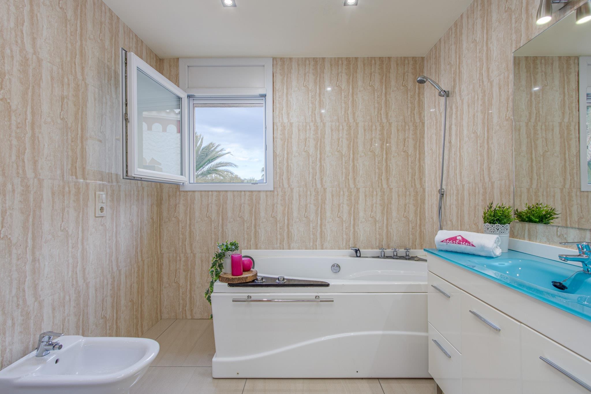 Denne rummelige villa med 4 soveværelser i Empuriabrava tilbyder et luksuriøst og fleksibelt ophold for op til 8 gæster. Med 180 m² boligareal på en 500 m² grund indeholder ejendommen tre soveværelser i hovedhuset og et ekstra soveværelse i et separat udendørs atelier - perfekt til ekstra privatliv. Beliggende kun 2 km fra stranden og supermarkedet, ligger huset i et fredeligt boligområde og har en privat pool og fortøjningsplads til både mellem 8 og 12 meter. Villaen er fuldt udstyret med et køkken med keramiske kogeplader, inklusive køleskab, ovn, mikrobølgeovn, opvaskemaskine og kaffemaskine. Gæsterne kan nyde en stor terrasse med havemøbler og grill samt moderne bekvemmeligheder som Wi-Fi, satellit-tv, aircondition overalt og varmepumpeopvarmning. Med tre badeværelser (to med bruser og et med badekar) og et ekstra toilet er planløsningen ideel til familier eller grupper. Yderligere faciliteter inkluderer vaskemaskine, strygejern og udendørs parkering. Ejendommen er kæledyrsvenlig efter anmodning og har en bekvem beliggenhed i nærheden af Peralada Golf (15 km), Figueres AVE/TGV-station (20 km) og Girona Lufthavn (65 km). Med sin beliggenhed ved kanalen, private pool og separate studiolejlighed er denne villa et perfekt valg til en afslappende og veludstyret ferie på Costa Brava.