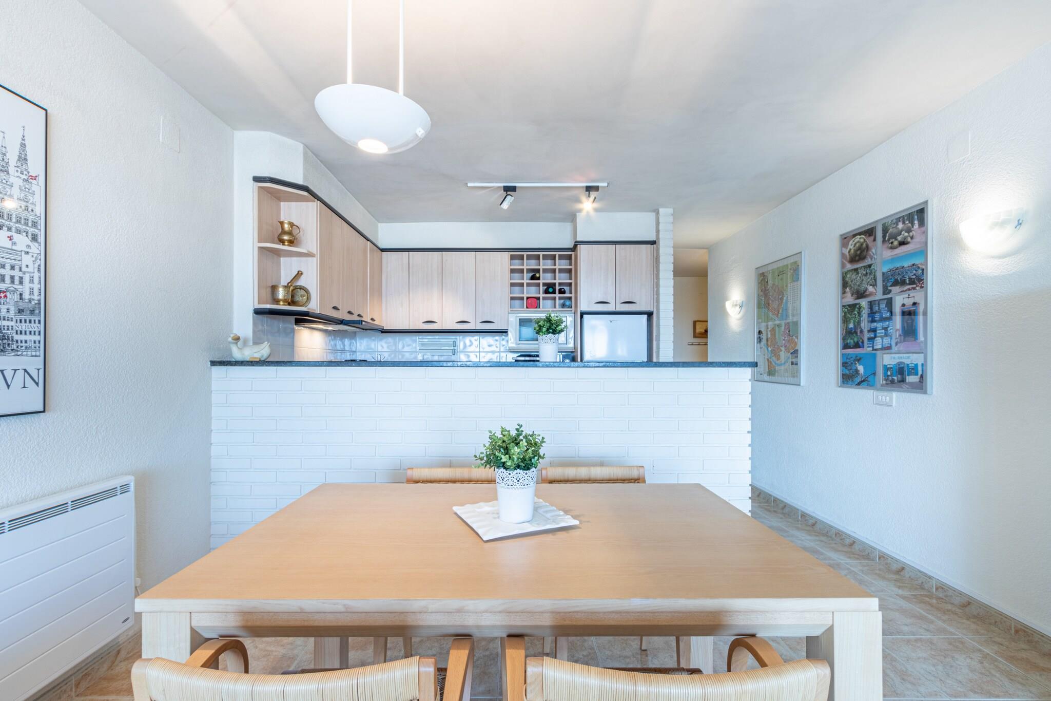 Denne lyse og komfortable lejlighed i Empuriabrava tilbyder et afslappende ophold for op til 5 gæster. Med 2 soveværelser og en ekstra seng i fællesområdet er det 58 m² store rum ideelt for familier eller små grupper. Beliggende kun 1 km fra stranden og 600 m fra et supermarked, har den en privat terrasse med smuk havudsigt og ligger i et roligt, familievenligt kvarter tæt på butikker og restauranter. Lejligheden har et åbent køkken med keramisk kogeplade, mikrobølgeovn, opvaskemaskine, kaffemaskine, brødrister og elkedel. Gæsterne kan nyde faciliteter såsom Wi-Fi, satellit-tv, vaskemaskine og en elevator for nem adgang til lejligheden på 4. sal. Tre ventilatorer og elektrisk varme giver komfort i alle årstider. Bemærk venligst, at kæledyr ikke er tilladt. Bekvemt placeret i nærheden af Aquabrava Water Park (8 km), Peralada Golfbane (16 km), Figueres AVE/TGV station (20 km) og Girona Lufthavn (65 km), er lejligheden godt placeret til at udforske Costa Brava. Der opkræves et refunderbart depositum, og der tilbydes valgfrie tjenester som sengelinned, håndklæder og slutrengøring. Fleksibel indtjekning tilbydes i lavsæsonen, og sen ankomst kan imødekommes via en sikker nøgleboks.