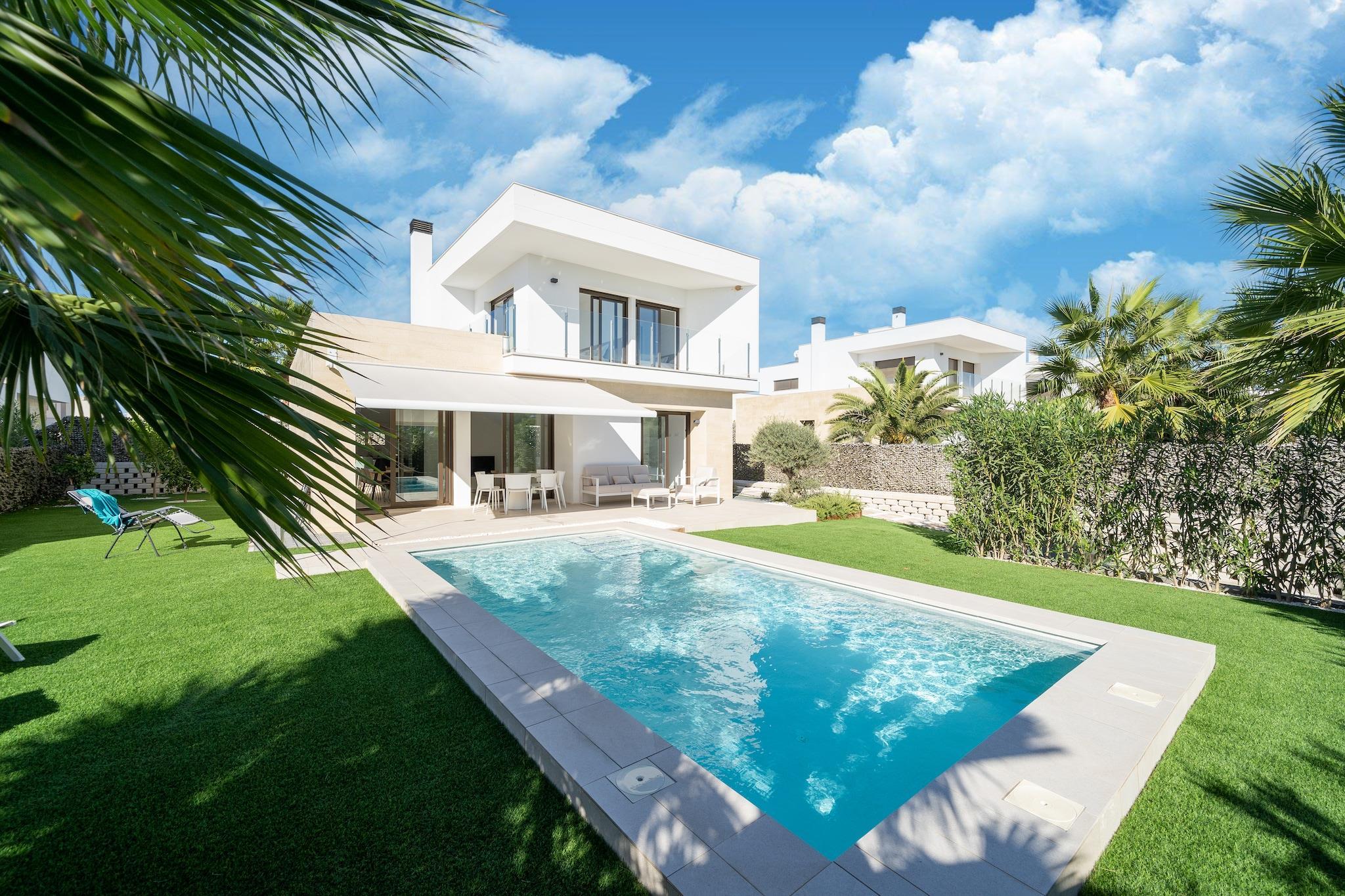 Flygt til denne luksuriøse nybyggede villa i Orihuela, beliggende på en rummelig grund og designet til komfort, stil og afslapning. Hjemmet er perfekt til familier eller venner og har eksklusive møbler, en privat pool med omgivende belysning og en stor terrasse med udsigt over en smukt anlagt have. Stueetagen har et åbent køkken udstyret med en keramisk kogeplade, ovn, mikroovn, køleskab med fryser, opvaskemaskine og kaffemaskine, ideel til at tilberede måltider til at nyde udendørs. Terrassen inkluderer en elektrisk markise og premium udendørsmøbler, hvilket skaber en perfekt ramme for spisning eller aftenslapning. Ovenpå åbner to solbelyste soveværelser ud til private terrasser, der tilbyder fredelige steder at nyde den spanske sol. Et vaskerum med vaskemaskine og privat parkering tilføjer til bekvemmeligheden, og den fuldt lukkede ejendom sikrer privatlivets fred under hele dit ophold. Beliggende i gåafstand fra et supermarked, restauranter og et fitnesscenter, og kun 1,5 km fra en golfbane og 6,7 km fra en naturskøn sø, er denne villa en fredfyldt, men alligevel godt forbundet base for din ferie på Costa Blanca.