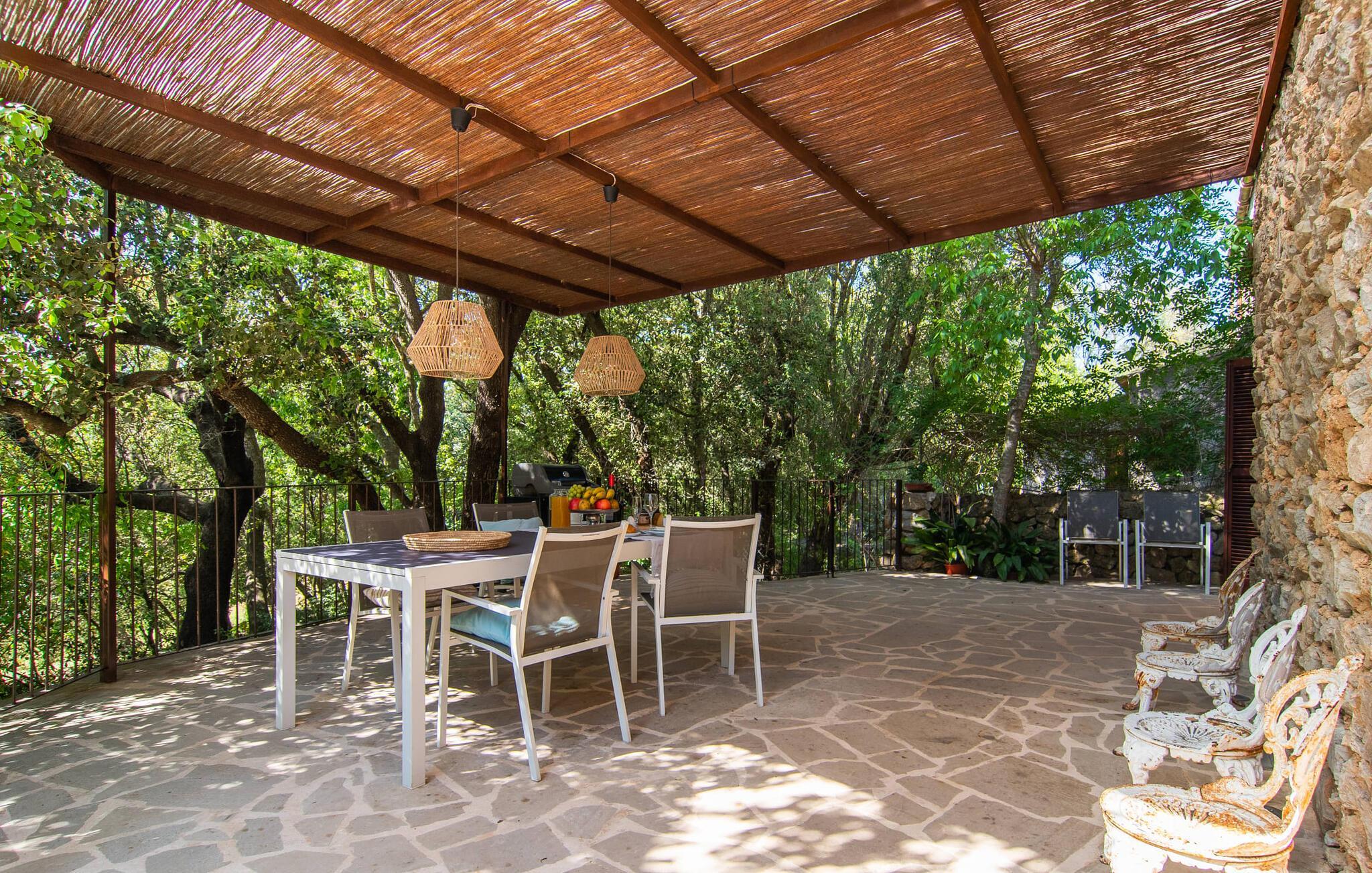Ved første øjekast fremstår den traditionelle villa "Es Badei" som en ret beskeden bygning, beliggende i smukke naturomgivelser med en afslappende udsigt over det blidt bølgende, altid grønne landskab i den østlige del af øen. Det værdige landsted er omgivet af en naturlig have fuld af middelhavsplanter og høje træer, der byder på vidunderlige skyggefulde siddepladser. Terrasser belagt med natursten omkranser ejendommen på alle sider. Udearealet med sine hyggelige afkroge skaber en nærmest fortryllet atmosfære. Foran huset er der et rustikt, overdækket område med en murstensovn. Foran køkkenet, i ly af et stort træ, er der en vidunderlig rummelig og åben spiseplads, udstyret med udendørsmøbler af høj kvalitet. Et par nostalgisk udseende metalstole læner sig op ad væggen og tjener mere end blot et dekorativt formål. Herfra fører et par trin ned til den kølige infinity-pool med en omgivende solterrasse. Udover komfortable liggestole og parasoller er der også et afkølet loungeområde med enkle hvide stole og en bænk, alle udstyret med bløde, benzinfarvede sædehynder. Gæstebadeværelset med toilet og håndvask nær poolen er også praktisk. At der er tale om en type dobbelthus, påvirker ikke på nogen måde privatlivets fred i din ferie. Dette er et Fincallorca feriehus. Når du går en tur gennem naturhaven og det omgængelige udeområde, vil du straks bemærke, at indretningen har opnået en yderst harmonisk blanding af mallorcansk tradition og urban designstil. Du vil blive særligt positivt overrasket, når du træder ind i det ret rustikke ydre og bliver mødt af en meget åben grundplan med flotte designklassikere som Eames Chair fra Vitra (i spisepladsen og i galleriet, hvor du finder en stille arbejdsplads med stue). Denne kombination af gammelt og moderne skaber en vidunderlig hygge. I stueetagen finder du stuen med sine lyse polstringsfarver og pejs, en smart central spiseplads og et rummeligt køkkenområde med en central ø, der alle flyder problemfrit ind i hinanden. Det store, fuldt udstyrede køkken med træskabe lader intet tilbage at ønske, når det kommer til at sætte dine selvforplejningsplaner ud i livet. Lyse værelser og smagfulde designelementer, såsom antikke himmelsenge, skaber en vidunderligt stimulerende symbiose for vores gæster. De tre dobbeltværelser tilbyder enten en king-size seng, der måler 1,50 m bred eller to enkeltsenge, der hver måler 0,90 m. Alle værelser er udstyret med et vægmonteret LCD-tv. Uanset om du rejser som par eller med en gruppe venner, er badeværelser særligt praktiske. Kun badeværelset i stueetagen er ikke en-suite og kan bruges som gæstetoilet hele dagen. Alle de resterende tre badeværelser er en-suite og tilbyder en masse frihed takket være deres veludstyrede faciliteter. En tur til middelalderbyen Artà tager kun fem minutter. Ud over de små supermarkeder og et friskvaremarked er det ugentlige marked om tirsdagen i Placa del Conquerodor og på det overdækkede marked et perfekt sted at købe aromatiske frugter og grøntsager. Hvorfor ikke kombinere dit markedsbesøg med et stop på en af de mange lokale udendørs cafeer langs pladsen til en cafe cortado og den uhøjtidelige atmosfære? Så gå en tur gennem gågaden og bliv inspireret af varerne i de små fine butikker og souvenirbutikker. Takket være villaens nærhed til vejen, der fører ind til byen (afhængigt af vindretningen kan der være trafikstøj), er de nærliggende strande også nemme at nå. Der er adskillige strande at vælge imellem langs denne 25 km lange kyststrækning, fra de mere afsondrede naturlige strande som "Cala Torta" til de mere populære bystrande som "Cala Millor". Ved at vælge villaen "Es Badei" har du valgt et stærkt anbefalet sted med perfekt harmoni - det ideelle sted at organisere en individuel villaferie, der passer perfekt til dine egne behov og ønsker. Villaen "Es Badei", renoveret i 2015, ligger i fantastiske landlige omgivelser nær middelalderbyen Artà. Dette moderniserede landsted med en naturlig have har et overraskende urban-chic interiør. Artà ligger kun 5 minutters kørsel væk for dine daglige indkøb, og du bør ikke gå glip af det ugentlige marked om tirsdagen. Uberørte naturlige sandstrande såsom "Cala Torta" eller "Cala Matzok" ligger kun 10 km fra villaen.