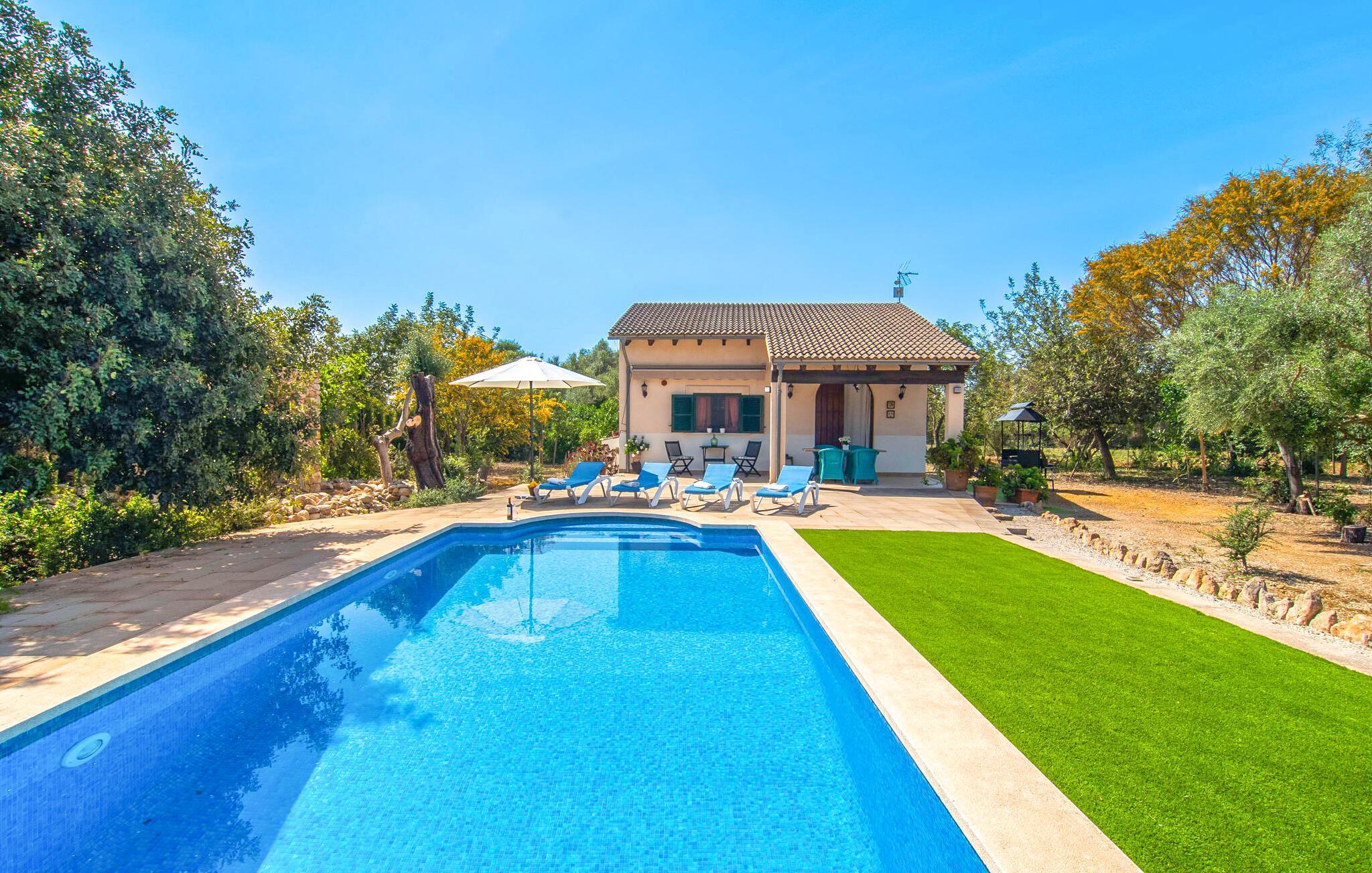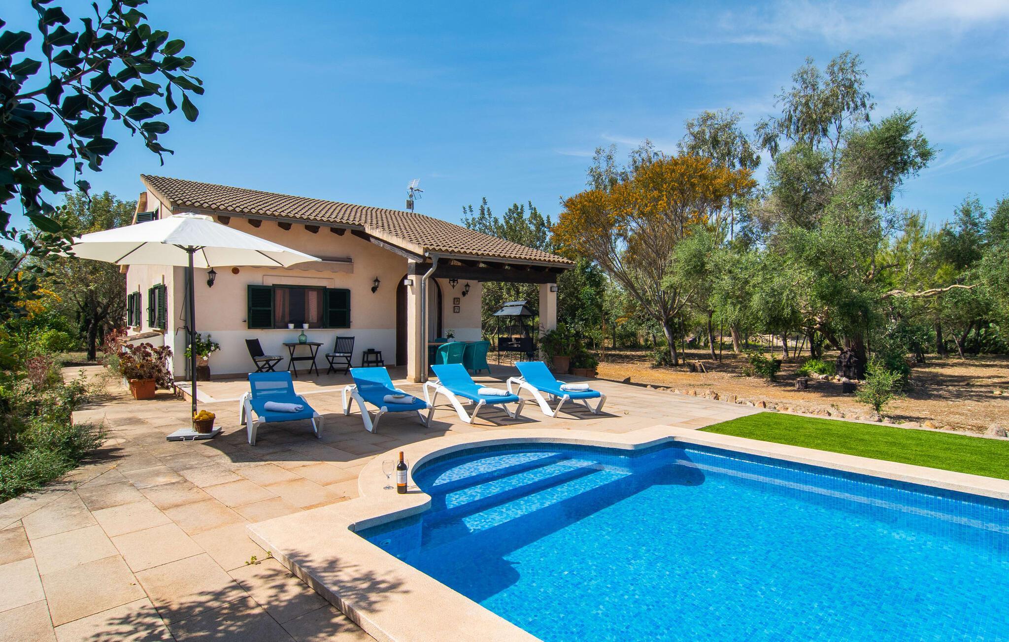 Det lille bondehus "Es Garroveret" tilbyder en mallorcansk ferie i absolut fred. Den overdækkede terrasse er ikke kun dejlig stille og hyggelig, men byder også på en fantastisk udsigt mod Tramuntana-bjergene. Dette er et Fincallorca feriehus. Blot få meter væk ligger den 8 meter lange pool, som nemt kan nås via en romersk trappe. Det er omgivet af en solterrasse, hvor komfortable liggestole inviterer dig til at slappe af under Mallorcas himmel. Frodig middelhavsvegetation indrammer området dekorativt og understreger den private atmosfære i dette hjem. Den mobile grill inviterer til at fejre aftenen med en solid grill. Det rustikke husinteriør har en behagelig ukompliceret karakter og er præget af en høj grad af hygge. Terracotta fliser, træ og en række dekorationer, nogle antikke, giver interiøret et ekstra individuelt præg. Den åbne plan stue og spisestue er et fantastisk sted at slappe af eller spise indendørs. Satellit-tv og trådløst internet giver en moderne medieforbindelse. Det åbne, integrerede køkken byder på alt, hvad du behøver til selvforplejning på ferien. To hyggelige dobbeltværelser giver plads til en afslappende søvn eller en siesta i løbet af dagen. Et badeværelse med brusebad og naturligt lys fuldender værelsestilbuddet i denne rolige bondegård på Mallorca. Mindre end 10 minutter i bil fra den lille landsby Campanet ved foden af Serra de Tramuntana, tilbyder bondegården "Es Garroveret" op til fire gæster et feriested i absolut fred. De nærmeste strande ligger ca. 20 km væk. I Sa Pobla (ca. 11 km) kan du slentre gennem den smukke gamle bydel med dens caféer og butikker.
