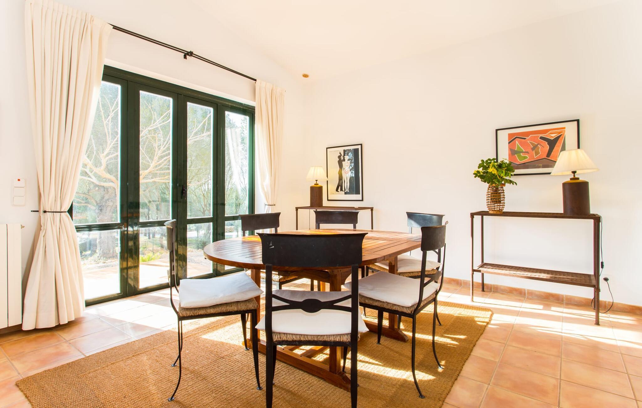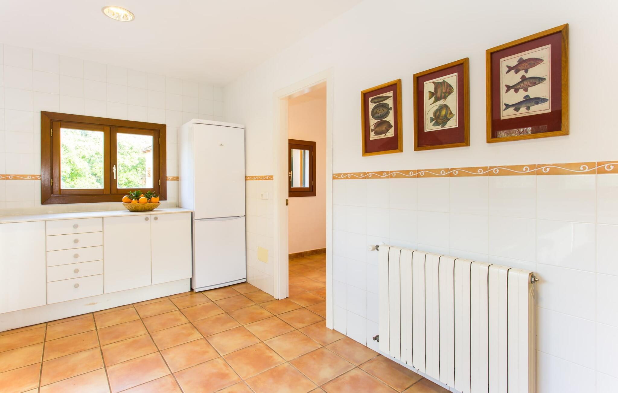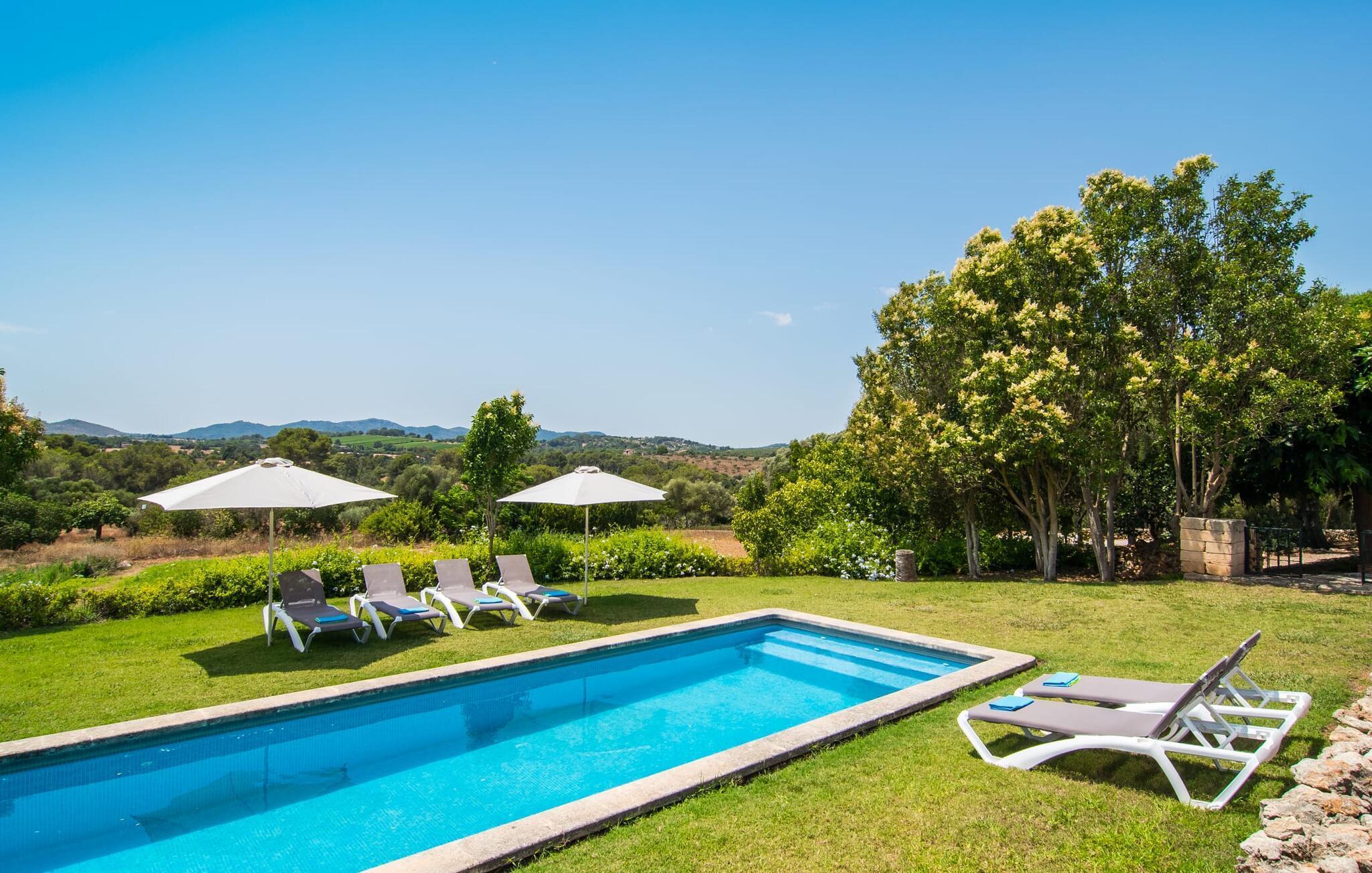Villaen “Es Gorg” ligger meget stille og idyllisk i den smukke østlige del af Mallorca - hvor Serra Levantens bølgende bakker danner et dejligt middelhavskystlandskab. Du nyder luksusen af fantastisk privatliv uden at være begrænset af høje mure eller hegn under dit ophold. En malerisk have med frugttræer og roser omgiver huset, som i sin munterhed konkurrerer med græsplænernes grønne farver og middelhavshimlens blå. Den lange pool ligger lige foran huset og er tilgængelig gennem en lille havedør. Den 1,60 til 2 m dybe pool, flisebelagt med små blå mosaiksten, er omgivet af græsplæner, der tilbyder en idyllisk udsigt over landskabet. Nyd udsigten komfortabelt på de seks liggestole. Direkte ved huset indbyder grus- og flisearealer samt skyggefulde og solrige steder til afslapning udendørs. Uanset om det er foran eller bagved bygningen - her finder alle deres perfekte plads. Indbyggede spiseborde giver siddeområderne en særlig imponerende stemning til at nyde et dejligt måltid sammen. Der er en parkeringsplads til din bil foran huset. Dette er et Fincallorca feriehus. Store værelser præger interiøret i dette overdådigt designede hus. Et samlet areal på 260 m² venter på at blive udforsket grundigt. De lyse vægge harmonerer med terrakottafliserne lige så stemningsfuldt som trævinduerne med møblerne og de smukke, farverige stoffer. Omhyggeligt udvalgte og velplacerede billeder på væggene giver et ekstra blikfang. Denne vellykkede harmoni skaber en usædvanlig personlig og samtidig hyggelig atmosfære, hvor du straks føler dig hjemme. Til din behagelige afslapning indendørs er der en stor kombineret stue/spisestue med sofaer, lænestole, et lille bibliotek og en pejs. En bred passage fører til spisepladsen, som er ideel til indendørs måltider sammen i en smagfuld atmosfære. Et andet indbydende sted at sidde og nyde er en slags vinterhave, som helt kan åbnes til en overdækket terrasse i de varmere måneder og er udstyret med en ekstra sofa og spisebord. Her finder du også fladskærms-tv med satellitforbindelse til din underholdning. Det rummelige, lyse køkken er fuldt udstyret og byder på alt hvad du behøver til din ferie. Her finder du også en opvaskemaskine, en elkedel samt en italiensk kaffemaskine og en filterkaffemaskine. Tre nænsomt renoverede soveværelser med aircondition - hver med sit eget badeværelse - fuldender komforten i denne villa. Badeværelserne er lyse og behageligt indrettede. For nemheds skyld er strygejern og hårtørrer tilgængelige. Fra villaen "Es Gorg" er der mindre end 4 km til Portocristo med dens maleriske havn og strandbugter, over hvilke der er en smuk promenade med butikker, caféer, barer og restauranter. Der er også et muntert ugentligt marked, der er et besøg værd, samt flere store, velassorterede supermarkeder til hverdagens behov. Også interessant i Portocristo er et besøg i de såkaldte Dracula Caves, en unik drypstensgrotte med Europas største underjordiske sø. Bekvemt, udover denne lille by, kan du også nemt nå flere fantastiske strande. De er alle fremragende, og de fleste har lavvandet adgang til havet. Villaen tilbyder et ideelt udgangspunkt for en varieret badeferie. Efter udflugter i de varierede omgivelser, når I vender tilbage til jeres sommerhus “Es Gorg”, kan I slutte aftenen af med en god flaske vin og grill i godt selskab og fred. Den slående idylliske villa "Es Gorg" ligger mindre end 4 km fra den maleriske havneby Portocristo. Nogle strande, de såkaldte "Calas de Mallorca", er meget nemme at nå, såsom Cala Petita. Portocristo byder på gode shopping- og nattelivsmuligheder.