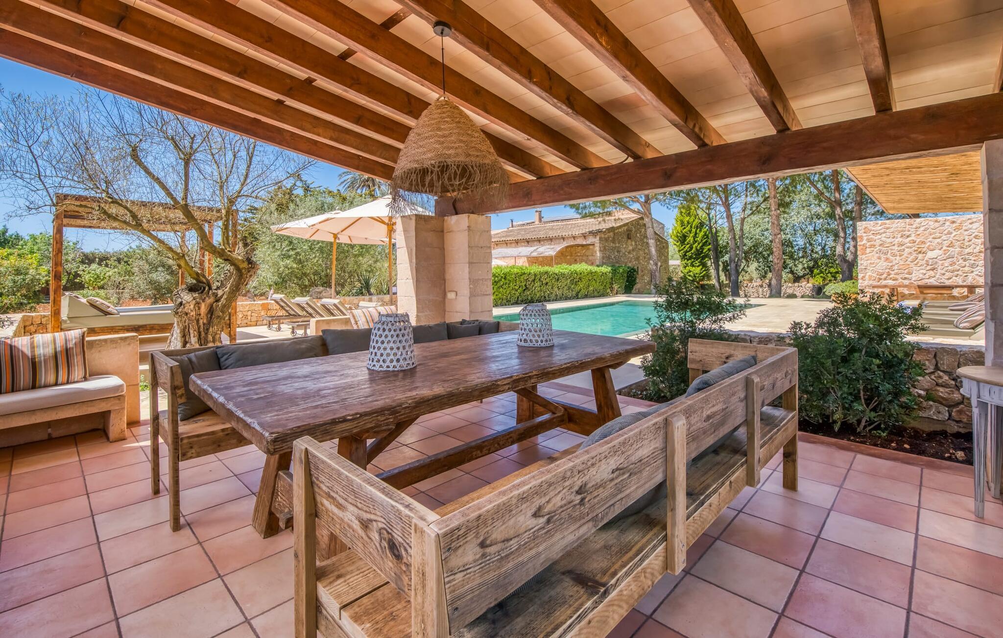 Denne stenbyggede finca "Es Lledoner dos" er omgivet af en rummelig grund med palmer, fyrretræer og oliventræer og andre middelhavsplanter. Dette er et feriehus i Fincallorca. Der er en privat terrasse lige ved huset, perfekt til at spise under åben himmel eller slappe af på den udendørs sofa, mens den nærliggende grillplads er ideel til aftengrill. I fællesarealet finder du naturlig skygge samt gynger, en balinesisk seng og et picnicbord. Det fantastiske poolområde omfatter en pool, let tilgængelig via en bred trappe, med liggestole og daybeds på den omkringliggende terrasse. Det rustikke poolhus med siddepladser og udendørs køkken tilbyder et perfekt sted for uforglemmelige øjeblikke. Ejerne bor på ejendommen med deres kat og to hunde, men poolen er kun for gæster. Indenfor byder den åbne stue og spisestue på lyse vægge, synlige bjælker og hyggelige træmøbler. En dekorativ buegang fører til de tre komfortabelt indrettede soveværelser, to dobbeltværelser og et enkeltværelse. Med tre badeværelser, to af dem en suite, tilbyder fincaen absolut privatliv. Booking "Es Lledoner Tres" (EMI327) ved siden af er perfekt til to familier, der rejser sammen. Omkring 13 km fra Mallorcas østkyst ligger fincaen på en afsondret beliggenhed og er omgivet af smukke træer. På grund af sin beliggenhed tæt på vejen er forskellige destinationer let tilgængelige. Den smukke havnepromenade i Portocolom, hvor du vil finde gode barer, restauranter og supermarkeder, ligger 20 minutter væk i bil. Restauranter og butikker kan også findes i nærliggende Felanitx (4 km). For længere shoppingture er Manacor (17 km) et godt valg. Efter 20 til 30 minutter kan du også nå nogle strande.