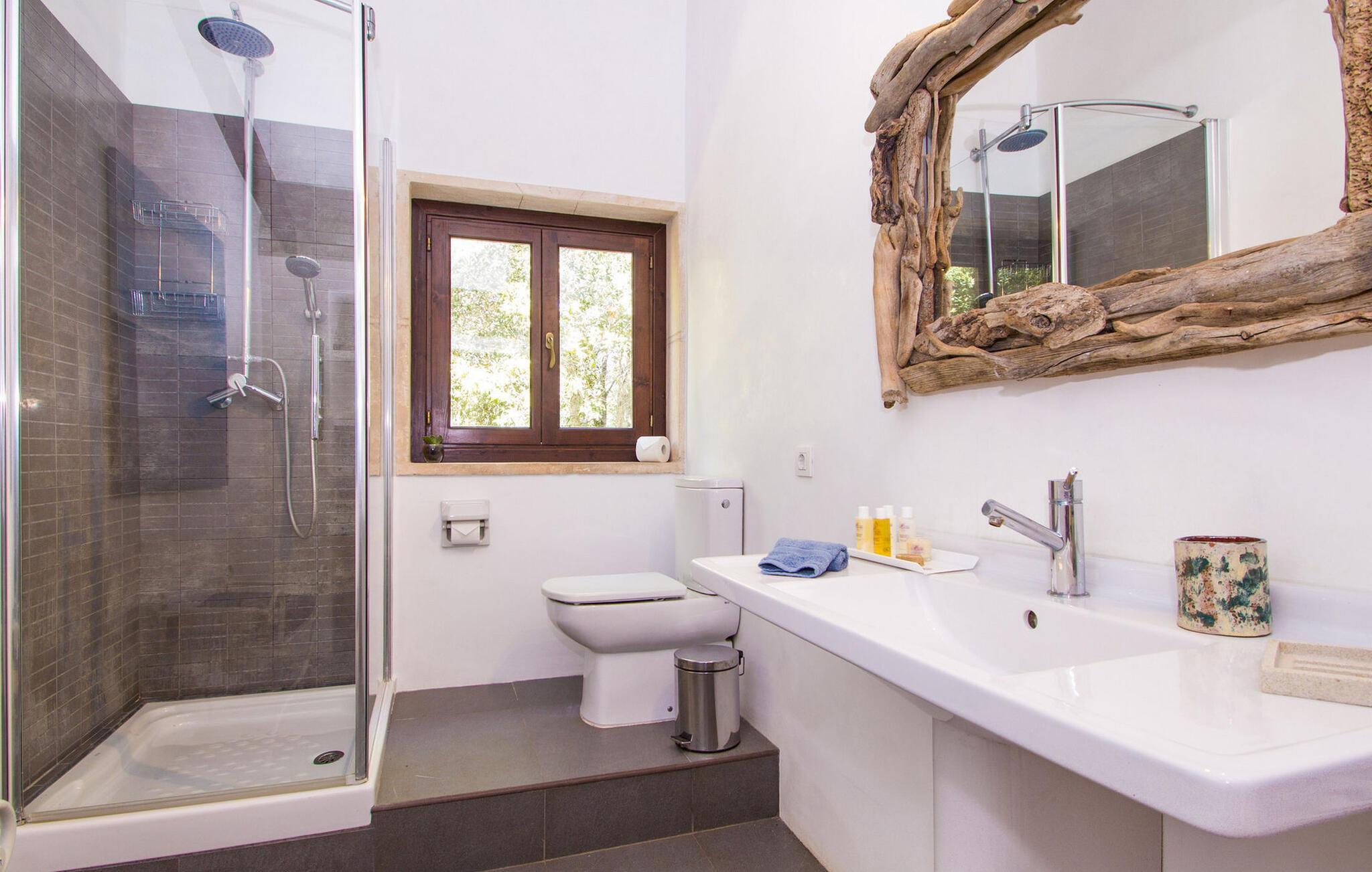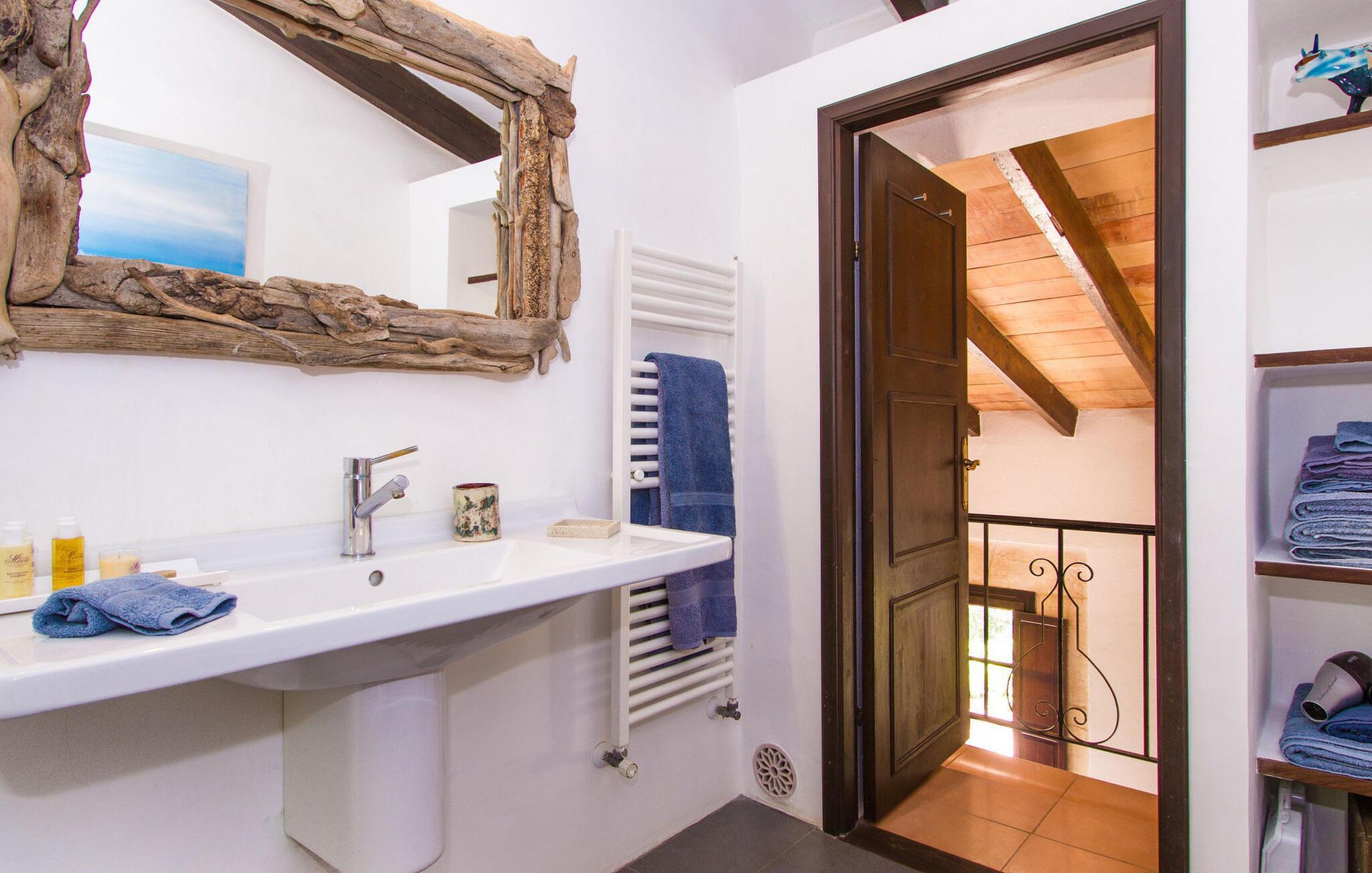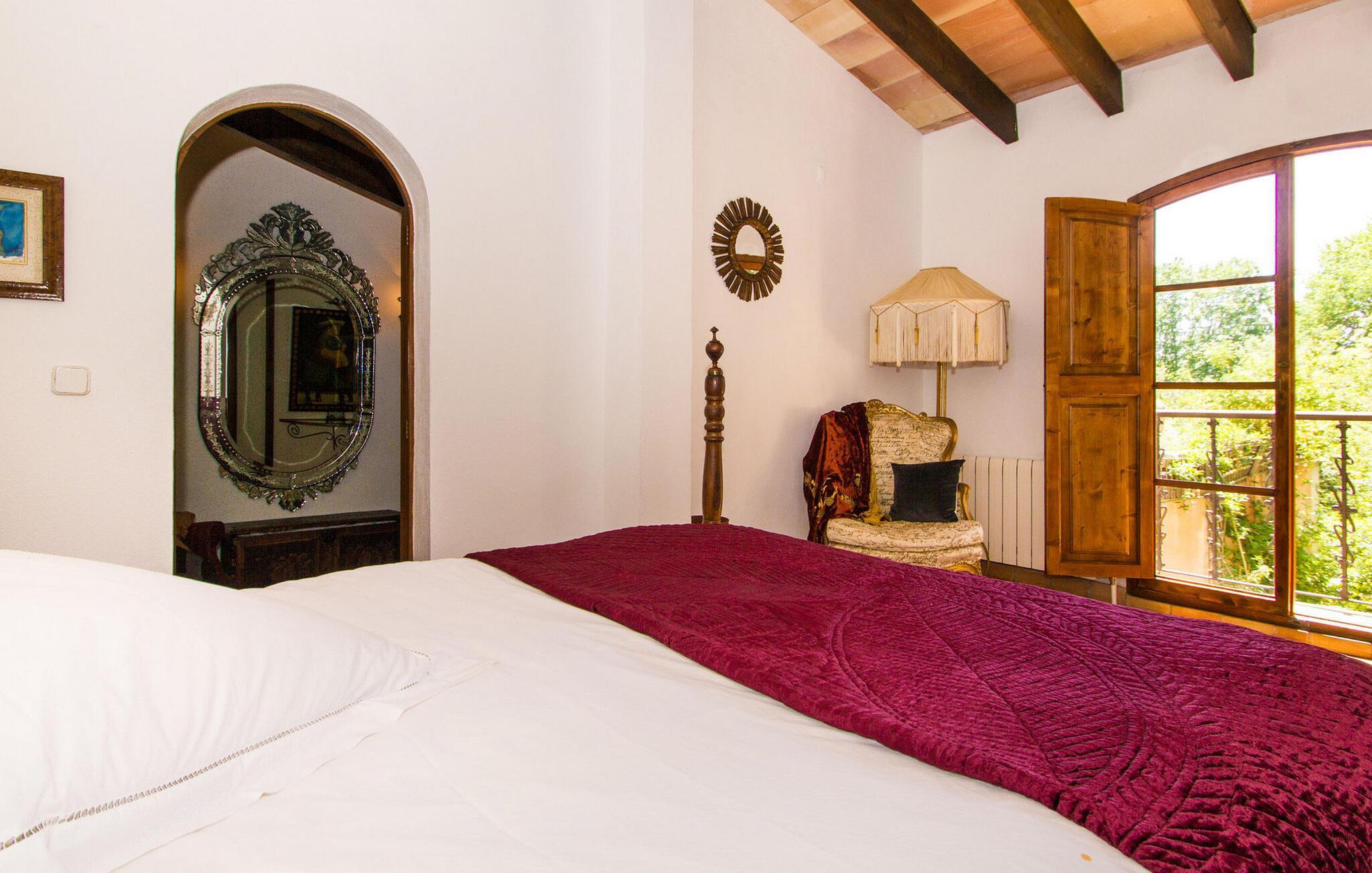 Finca Es Lloquet ligger i et afsides skovområde, omgivet af en frodig have fuld af palmer og en økologisk køkkenhave. Ekspansive græsplæner giver plads til børn at lege eller til yoga og meditation. XXL-poolen har trin, liggestole, en balinesisk liggestol og en udendørs bar giver et skyggefuldt spiseområde, mens familier kan nyde lejlighedsvise besøg af Victorias venlige hund. Husholdersken, der bor på den anden side af ejendommen, passer køkkenhaven og hjælper gæster, når det er nødvendigt.