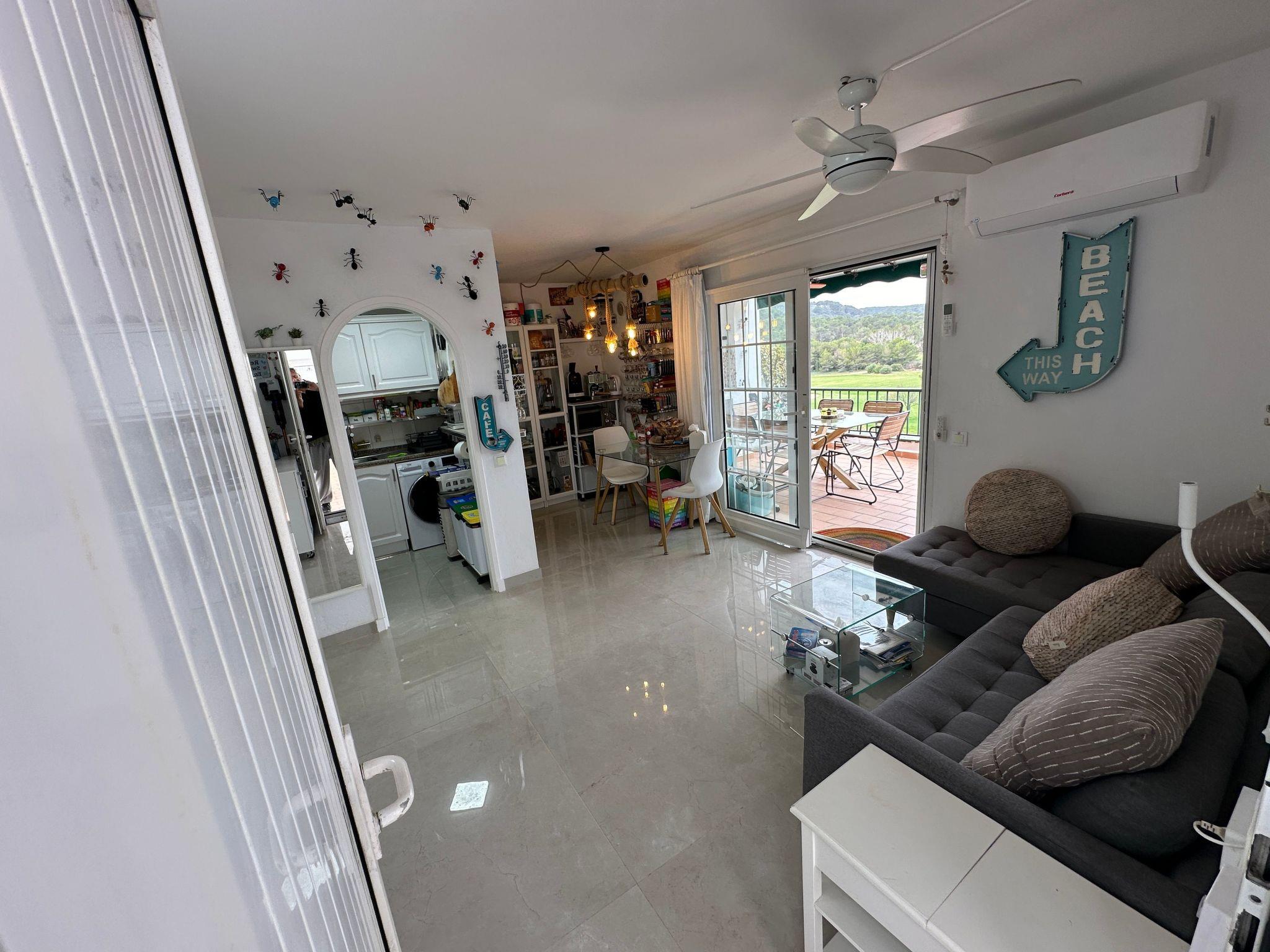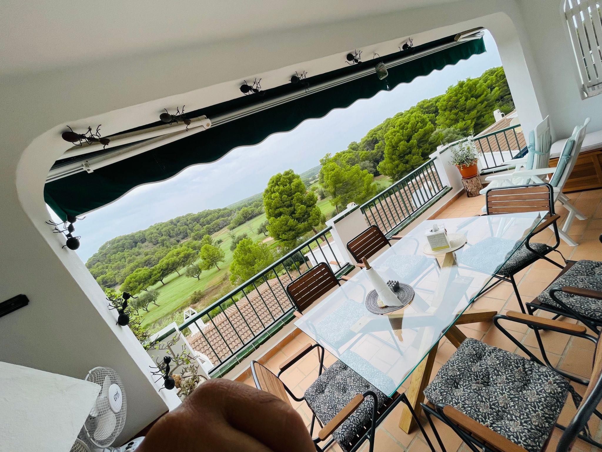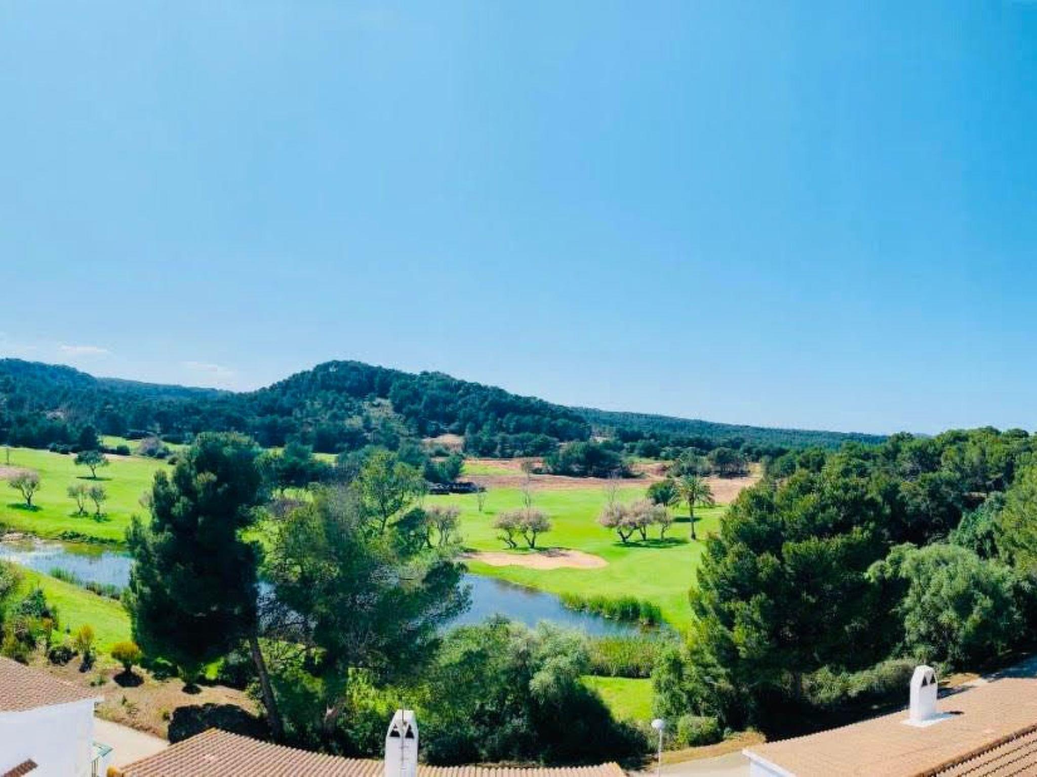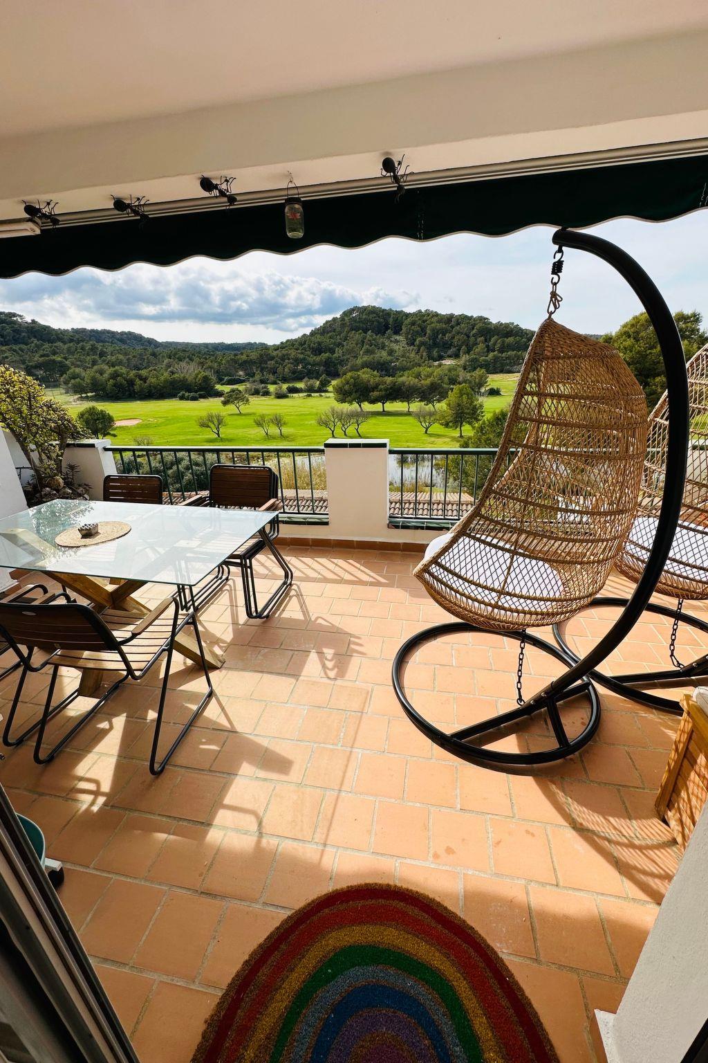 FLAT Surrounded by nature, with pool , and beach nearby Apartment located in the north of the island, in front of its only golf course. It is a very quiet urbanization, surrounded by nature, with a beautiful pool overlooking the countryside and a short distance from the beach (Arenal de Son Saura), which is 5 minutes by car and about 15 minutes on foot. It has three bedrooms, two full bathrooms (one of them with a bathtub and the other, ensuite, with a shower), a living room with a smart TV and a DVD player, a small but fully equipped kitchen (large fridge-freezer, washing machine, microwave, oven, Nesspreso and Senseo coffee machines, kitchenware, etc). There are ceiling fans in all three bedrooms and in the living room. Mosquito nets on all the windows and on the access door to the terrace. Free high-speed Wi-Fi. The terrace is very large, with beautiful views of the golf course and the mountains and has a built-in barbecue. It has its own parking space located just behind the apartment and you don't have to go up or down steps to access it, making it very convenient for people with reduced mobility. The largest bedroom has a 160cm double bed. Another bedroom, with a small ensuite bathroom, has a 135cm double bed. The third bedroom has two single beds, one 90cm and the other 80cm, which can be converted into a double bed. The apartment is located in the north of the island, 24.3 km from the airport, 20 km from the port of Mahón and 37.4 km. from the port of Ciudadela. Fornells, a fishing village, famous for its lobster stew, is about 10 km. About 15 minutes by car are the towns of Es Mercadal and Alaior, where you can find all kinds of shops. Son Parc beach (Arenal de Son Saura) is wide, with fine white sand and shallow, transparent waters (ideal for children). You can access by car to the parking lot and from there there are only a few meters to reach the sand. There are a couple of beach bars where you can eat. In addition, for those who like hiking, from the apartment, walking a few minutes, you can connect with the Cami de Cavalls, a long-distance path that runs along the entire island along the coast. Light In every room in the apartment you have additional lighting with a remote, romantic light, from strong light to colored lights of your choice, blue light, red light, green light, etc.,,, the same thing on the balcony, a unique colored light that creates a pleasant atmosphere. In addition, there are chair holders hanging on the wall in the balcony and there you have additional chairs if necessary. In the Apartment you have 2 Coffees coffee machine.