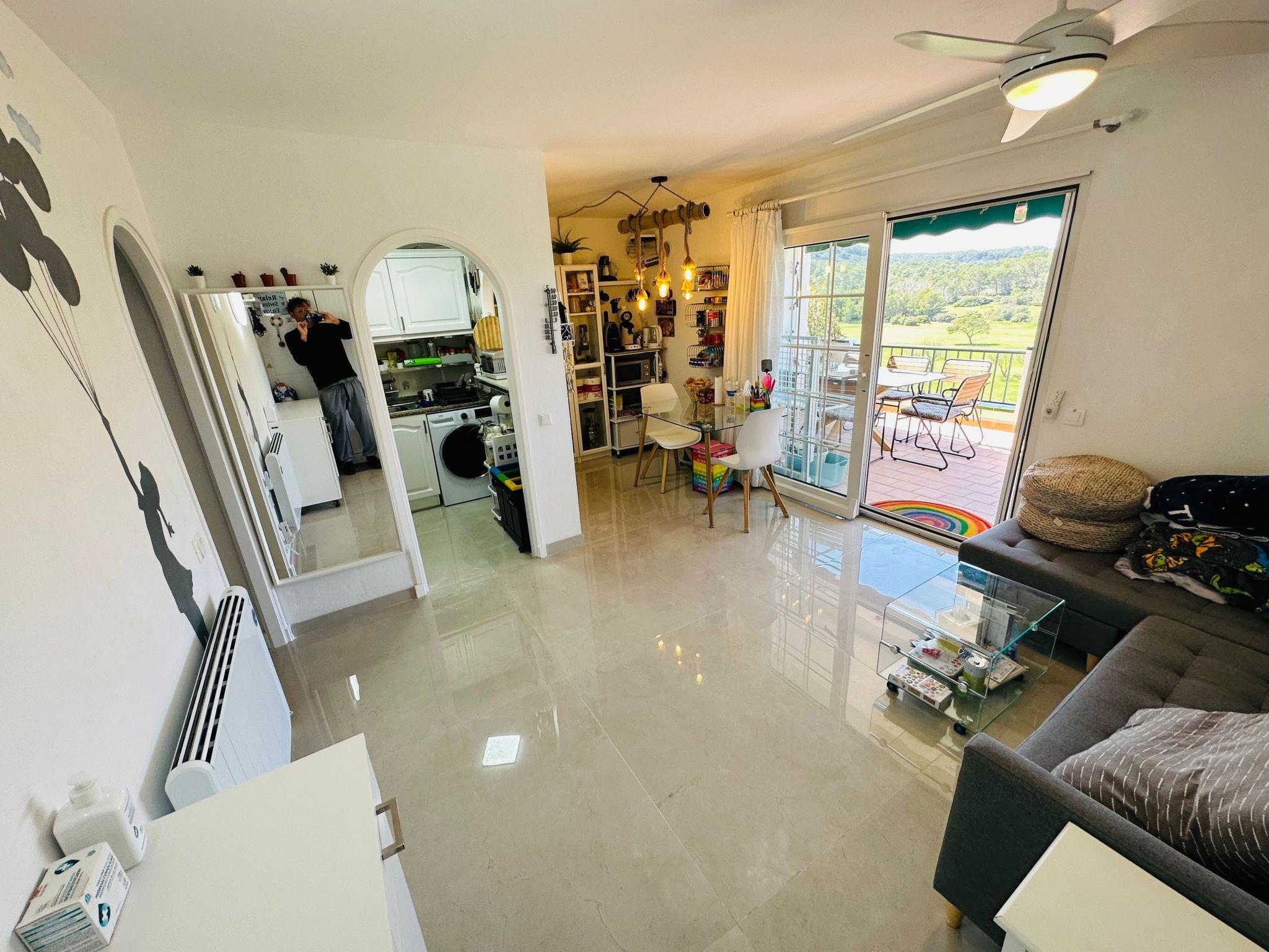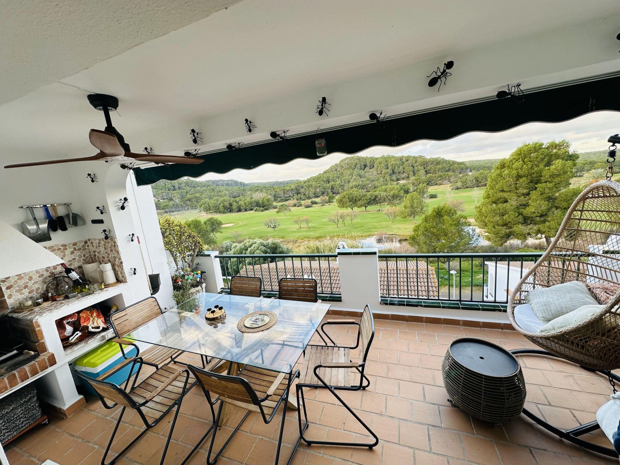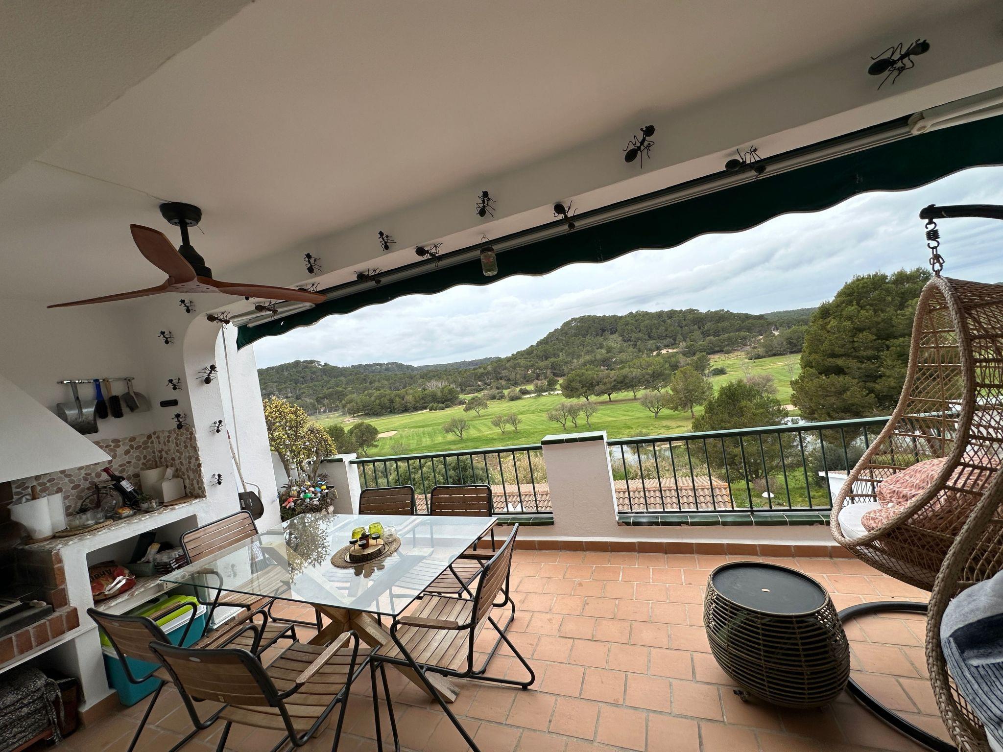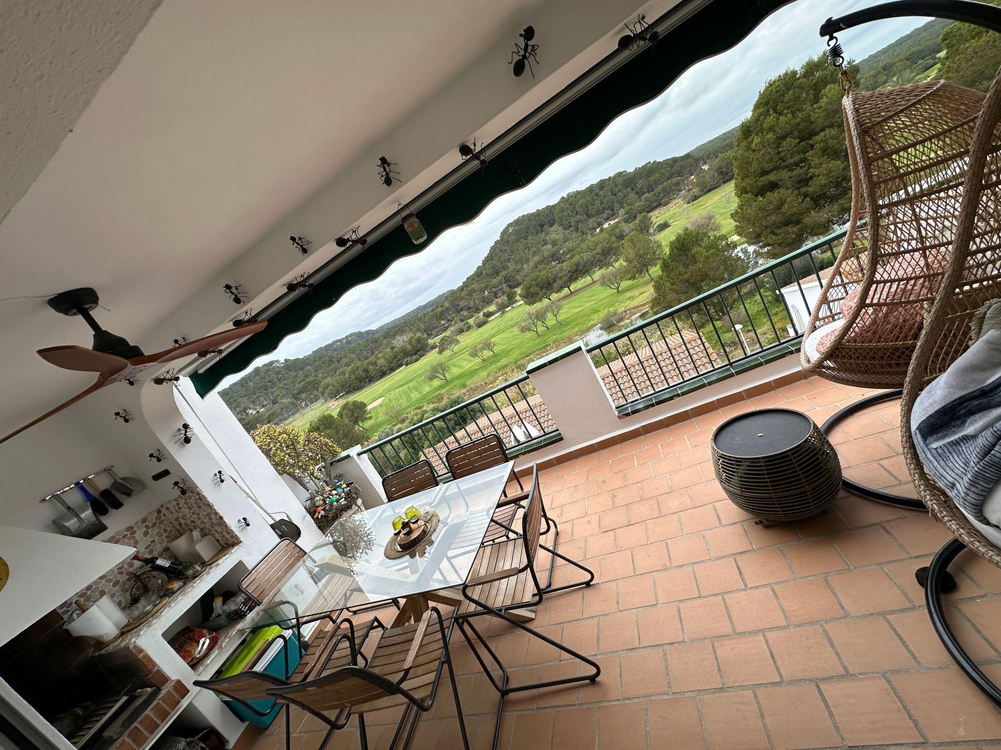 FLAT Surrounded by nature, with pool , and beach nearby Apartment located in the north of the island, in front of its only golf course. It is a very quiet urbanization, surrounded by nature, with a beautiful pool overlooking the countryside and a short distance from the beach (Arenal de Son Saura), which is 5 minutes by car and about 15 minutes on foot. It has three bedrooms, two full bathrooms (one of them with a bathtub and the other, ensuite, with a shower), a living room with a smart TV and a DVD player, a small but fully equipped kitchen (large fridge-freezer, washing machine, microwave, oven, Nesspreso and Senseo coffee machines, kitchenware, etc). There are ceiling fans in all three bedrooms and in the living room. Mosquito nets on all the windows and on the access door to the terrace. Free high-speed Wi-Fi. The terrace is very large, with beautiful views of the golf course and the mountains and has a built-in barbecue. It has its own parking space located just behind the apartment and you don't have to go up or down steps to access it, making it very convenient for people with reduced mobility. The largest bedroom has a 160cm double bed. Another bedroom, with a small ensuite bathroom, has a 135cm double bed. The third bedroom has two single beds, one 90cm and the other 80cm, which can be converted into a double bed. The apartment is located in the north of the island, 24.3 km from the airport, 20 km from the port of Mahón and 37.4 km. from the port of Ciudadela. Fornells, a fishing village, famous for its lobster stew, is about 10 km. About 15 minutes by car are the towns of Es Mercadal and Alaior, where you can find all kinds of shops. Son Parc beach (Arenal de Son Saura) is wide, with fine white sand and shallow, transparent waters (ideal for children). You can access by car to the parking lot and from there there are only a few meters to reach the sand. There are a couple of beach bars where you can eat. In addition, for those who like hiking, from the apartment, walking a few minutes, you can connect with the Cami de Cavalls, a long-distance path that runs along the entire island along the coast. Light In every room in the apartment you have additional lighting with a remote, romantic light, from strong light to colored lights of your choice, blue light, red light, green light, etc.,,, the same thing on the balcony, a unique colored light that creates a pleasant atmosphere. In addition, there are chair holders hanging on the wall in the balcony and there you have additional chairs if necessary. In the Apartment you have 2 Coffees coffee machine.