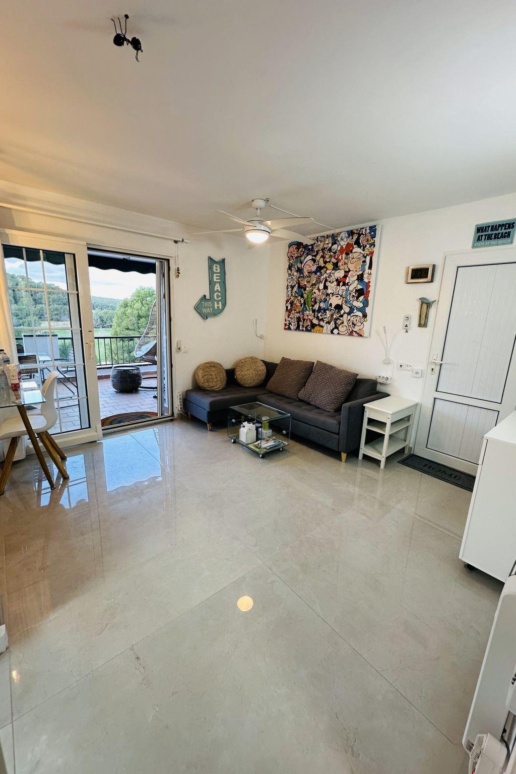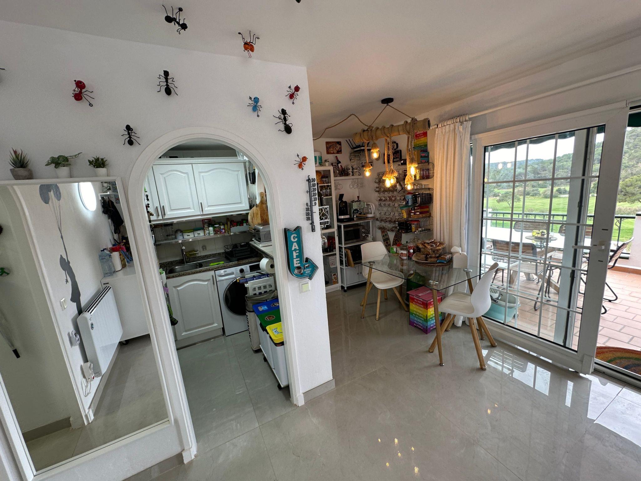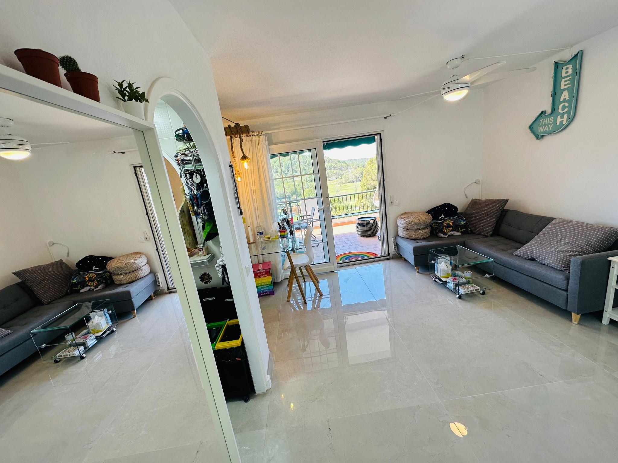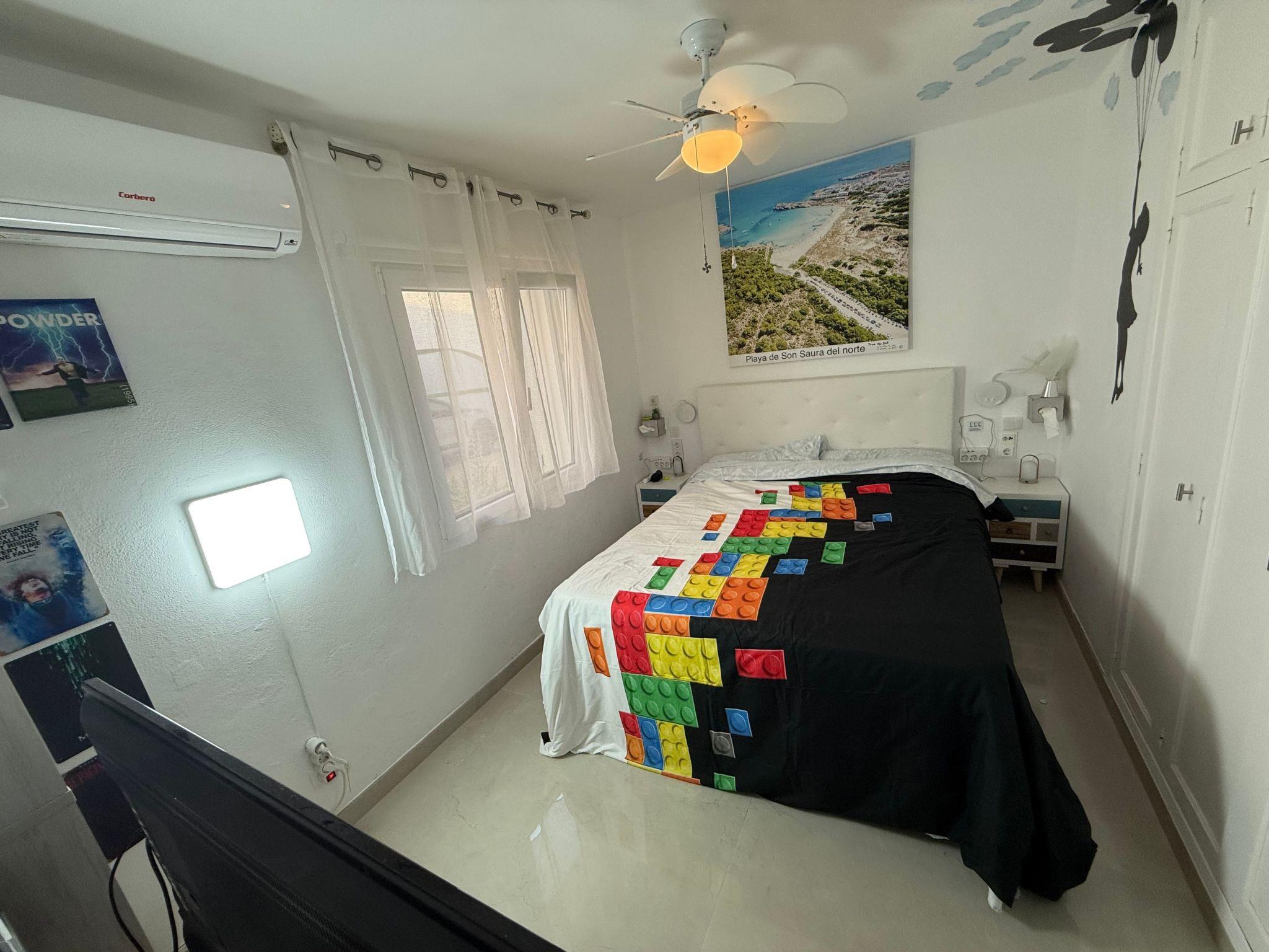 FLAT Surrounded by nature, with pool , and beach nearby Apartment located in the north of the island, in front of its only golf course. It is a very quiet urbanization, surrounded by nature, with a beautiful pool overlooking the countryside and a short distance from the beach (Arenal de Son Saura), which is 5 minutes by car and about 15 minutes on foot. It has three bedrooms, two full bathrooms (one of them with a bathtub and the other, ensuite, with a shower), a living room with a smart TV and a DVD player, a small but fully equipped kitchen (large fridge-freezer, washing machine, microwave, oven, Nesspreso and Senseo coffee machines, kitchenware, etc). There are ceiling fans in all three bedrooms and in the living room. Mosquito nets on all the windows and on the access door to the terrace. Free high-speed Wi-Fi. The terrace is very large, with beautiful views of the golf course and the mountains and has a built-in barbecue. It has its own parking space located just behind the apartment and you don't have to go up or down steps to access it, making it very convenient for people with reduced mobility. The largest bedroom has a 160cm double bed. Another bedroom, with a small ensuite bathroom, has a 135cm double bed. The third bedroom has two single beds, one 90cm and the other 80cm, which can be converted into a double bed. The apartment is located in the north of the island, 24.3 km from the airport, 20 km from the port of Mahón and 37.4 km. from the port of Ciudadela. Fornells, a fishing village, famous for its lobster stew, is about 10 km. About 15 minutes by car are the towns of Es Mercadal and Alaior, where you can find all kinds of shops. Son Parc beach (Arenal de Son Saura) is wide, with fine white sand and shallow, transparent waters (ideal for children). You can access by car to the parking lot and from there there are only a few meters to reach the sand. There are a couple of beach bars where you can eat. In addition, for those who like hiking, from the apartment, walking a few minutes, you can connect with the Cami de Cavalls, a long-distance path that runs along the entire island along the coast. Light In every room in the apartment you have additional lighting with a remote, romantic light, from strong light to colored lights of your choice, blue light, red light, green light, etc.,,, the same thing on the balcony, a unique colored light that creates a pleasant atmosphere. In addition, there are chair holders hanging on the wall in the balcony and there you have additional chairs if necessary. In the Apartment you have 2 Coffees coffee machine.