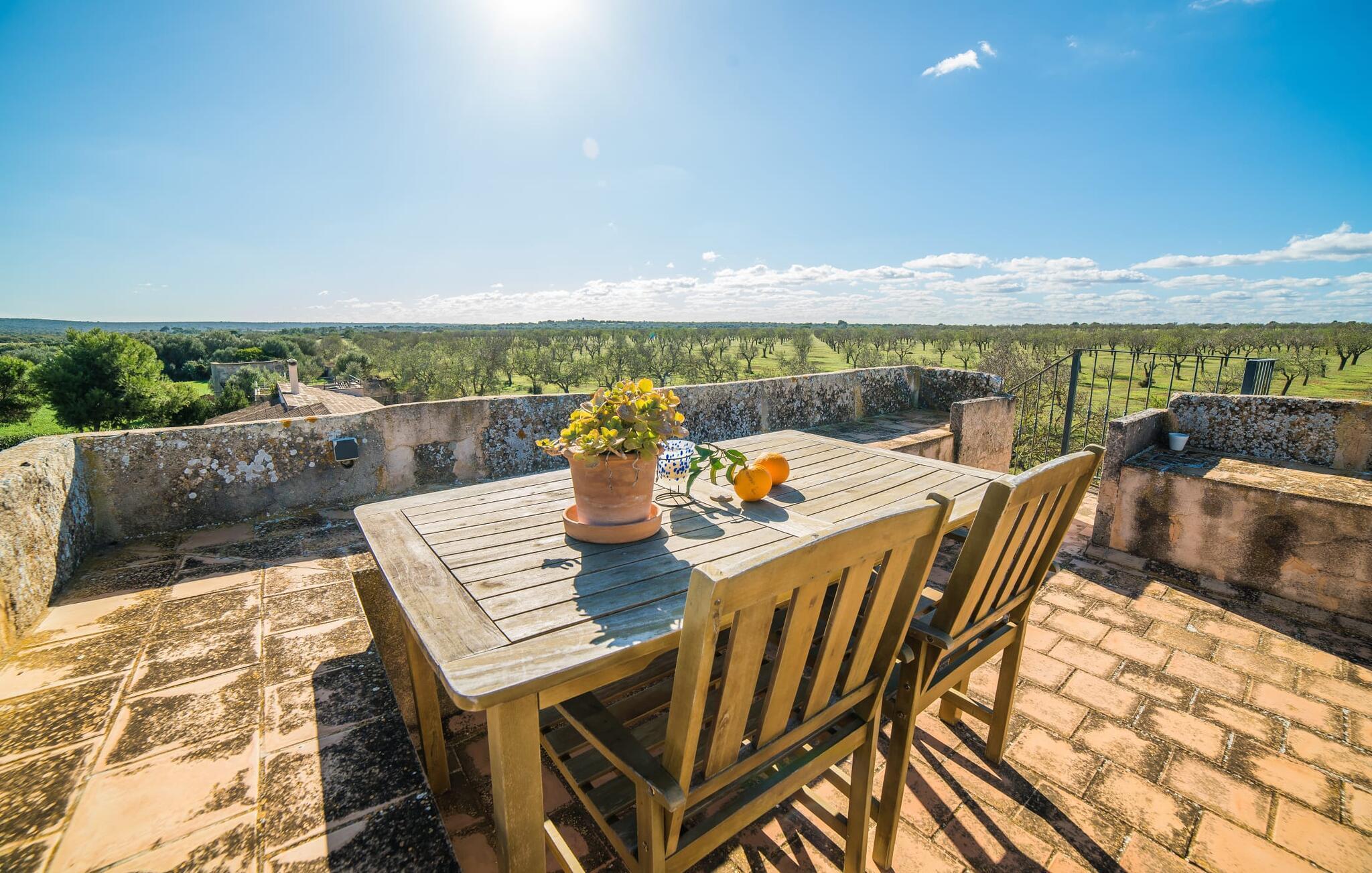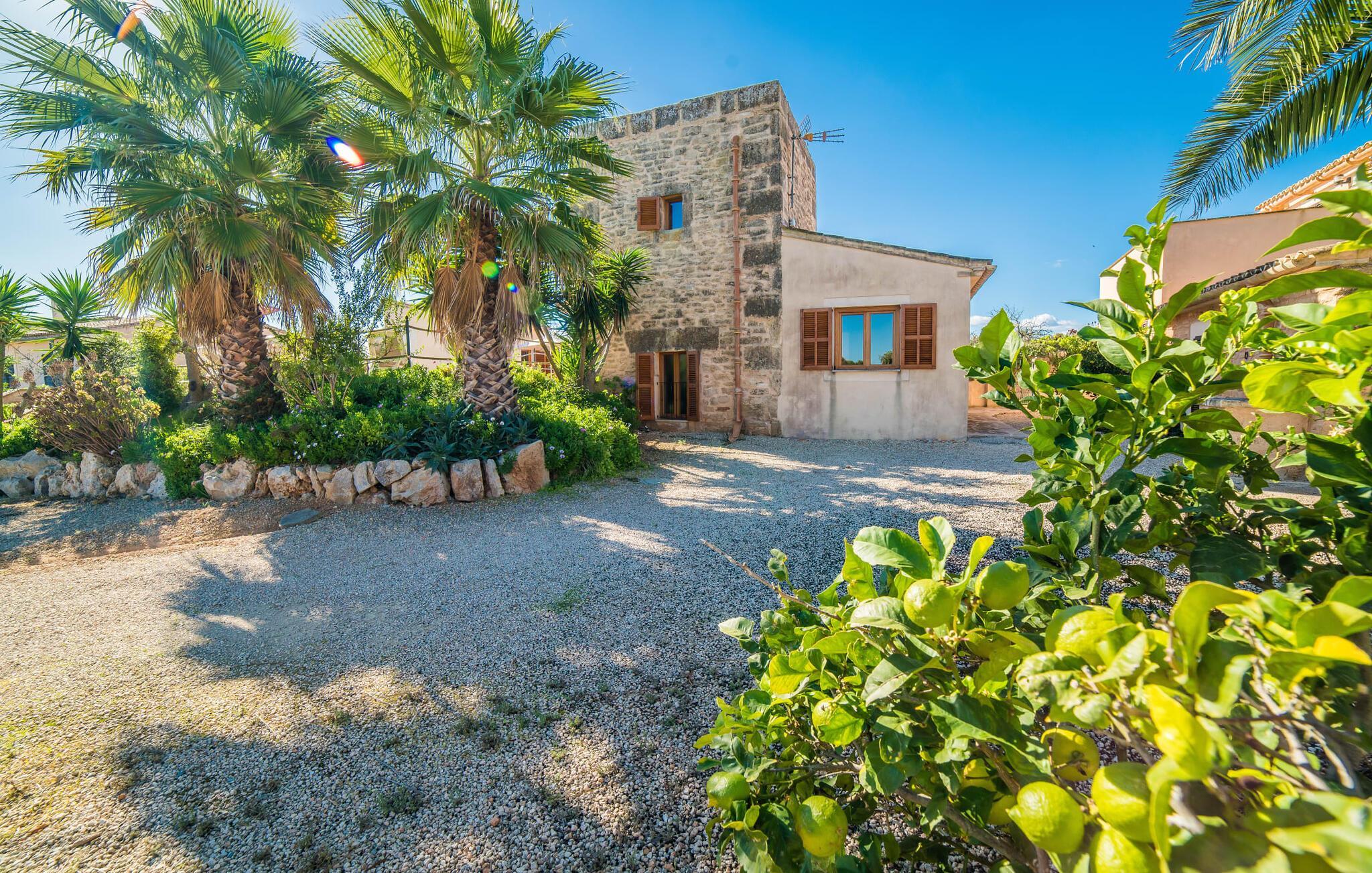 Hvis du elsker vidstrakte landskaber og har en forkærlighed for smukke, historiske naturstenshuse, vil villaen "Es Moli de na Sebastiana" helt sikkert give et smil på læben. Det ligger på den sydlige del af øen, omgivet af store grønne marker samt palmer og oliventræer. Velkommen til dit drømmeferiehus! Start dagen optimalt med en solid morgenmad på villaens terrasse og nyd de første varmende stråler i dit ansigt – et tegn på de vidunderlige ting, der venter dig. Senere, hvorfor ikke tage en dukkert i den oplyste blå saltvandspool og se lyset få vandet til at funkle? Og for ikke at nævne den dejlige lille tagterrasse, der byder på en fantastisk udsigt over det omkringliggende område. Det er også fantastisk for par, der ønsker at tilbringe lidt tid alene sammen. Hvad med en middag med levende lys deroppe? Lyt til grillens knitren, mens du nyder lækre tapas og et lille glas mallorcansk vin. Ejendommen er så smuk, at selv ejerne nogle gange bruger poolen og solterrassen om sommeren eller i weekenden. Men bare rolig – dit privatliv vil helt sikkert blive respekteret. Dette er et Fincallorca feriehus. Dette sommerhus er også ganske enkelt en drøm indefra. Et rigtigt højdepunkt er de blotlagte naturstensvægge i alle rum. De udstråler en vidunderlig middelhavs- og venlig karakter, så du føler dig hjemme, så snart du træder ind i villaen - du vil aldrig forlade! Terrassen fører direkte ind i det fuldt udstyrede åbne træ køkken; Den er rigtig praktisk og giver dig mulighed for nemt at transportere alle de salater og tilbehør, du har lavet, til grillen. Loungen er en del af det samme rum, hvilket betyder, at hele rummet er virkelig omgængeligt, da den udpegede kok aldrig efterlades alene, mens han passer på familiens gastronomiske behov. De to soveværelser er indrettet i smarte cremefarver og bløde og hyggelige tekstiler. Så hver nat er garanteret behagelig, og du vågner endelig udhvilet om morgenen. Badeværelset passer også problemfrit ind i husets stilfulde overordnede design og byder på plads til to personer med sin ekstra store vask. Villaen anbefales især til naturelskere. Hvis du kan lide at vandre, bør du bestemt ikke gå glip af ruten fra Cap de Ses Salines til Colonia Sant Jordi, da den passerer adskillige uberørte kyststrækninger. Glem ikke at pakke nok drikkevand! Uden for sæsonen kan et besøg på den utrolige Es Trenc strand varmt anbefales - det er ikke for ingenting, at det er en af de mest berømte strande på Mallorca, dets fine hvide sand og turkise vand giver den et næsten caribisk look. Med en lejebil er det kun omkring 13 minutter i bil fra villaen. Beliggende i et vidunderligt middelhavslandskab ligger naturstensvillaen "Es Moli de na Sebastiana", som er designet til dem, der leder efter idyl og privatliv på ferien. Det lille feriested Ses Salines ligger kun omkring 3,2 km væk. Der vil du finde et supermarked, et ugentligt marked og et apotek samt alt hvad du behøver til dine daglige behov, kun 3,6 km væk.