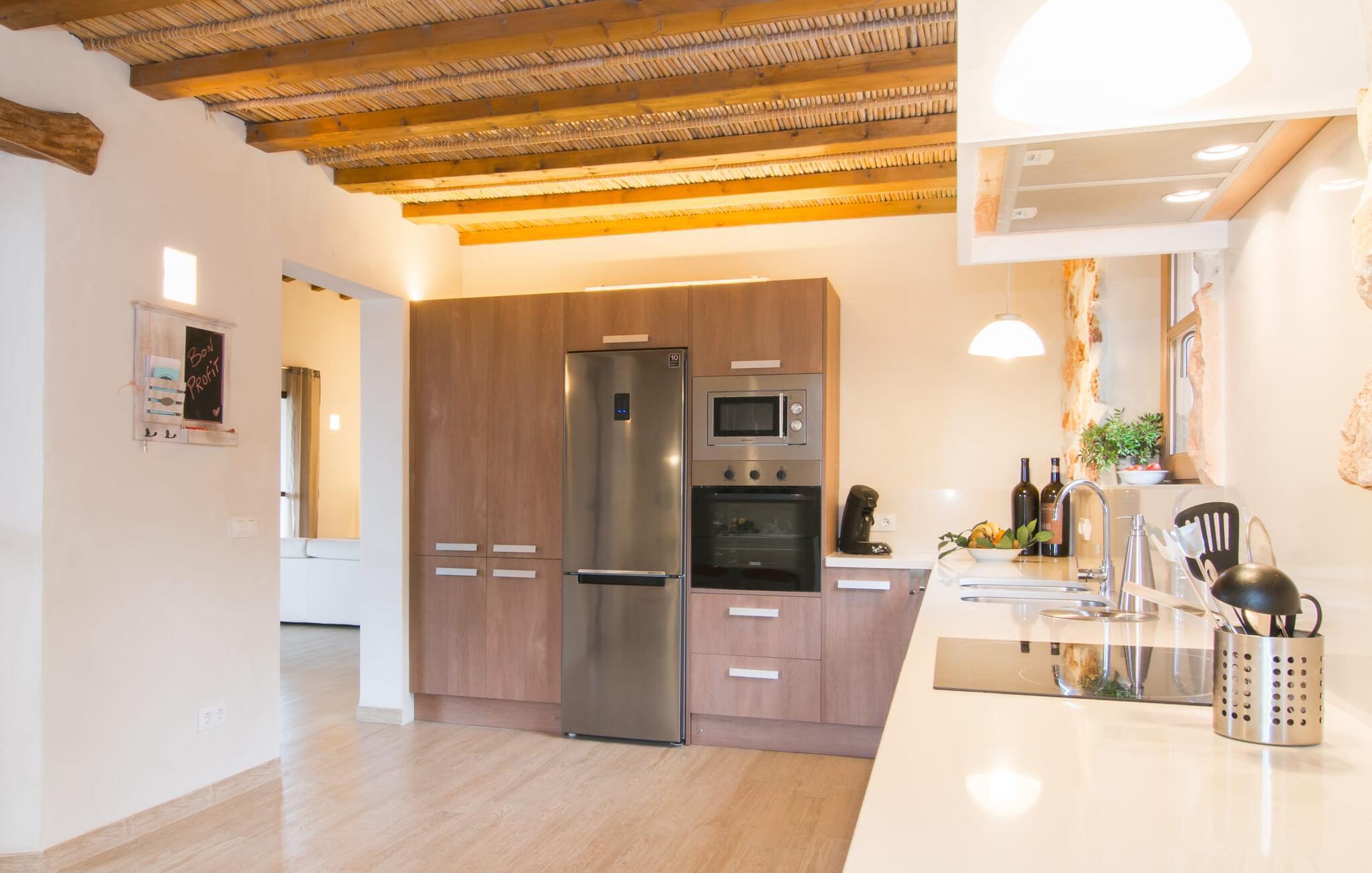 Den smukke, nye villa "Es Pins" (bygget i 2014) byder på en fantastisk blanding af typisk mallorcansk tradition og nutidig modernitet. Ejendommen er omkranset af en mur; Beboelsesbygningen udgør hjertet af denne ejendom med panoramaudsigt over de maleriske bakker omkring Artà. Enhver, der har besøgt den østlige kystregion, vil helt sikkert efterlade varige indtryk af det rustikke bakkelandskab og den fjerne udsigt over frodige grønne områder hele vejen til Tramuntana-bjergene og havet udenfor. Den solbeskinnede ejendom putter sig vidunderligt ind i landskabet - til en afvekslende ferie. Den børnevenlige bolig har et udendørs område med en stor pool (1,50 m dyb) og græske trapper. Bare slap af og forfrisk dig selv et stykke tid på trappen eller tag en dukkert i det kølige blå vand. Poolen er dels omgivet af græsplæne og dels af en muret solterrasse. Her finder du otte liggestole, hvor du kan slappe af og nyde den beroligende udsigt over den smukke natur. En trappe fører til den overdækkede terrasse ved siden af huset. Udnyt en af de mange siddemuligheder: et stort spisebord til op til otte personer og et meget afslappet loungeområde med kurvemøbler. Nyd din kop kaffe til en god start på dagen på den anden terrasse ved siden af huset ved det lille sofabord med to stole. Faktisk er det nemt at få en god start på dagen efter at have sovet i et af de tre markante soveværelser. De hvide værelser er indrettet i en moderne landlig stil. Det store soveværelse har eget badeværelse. Det er blevet udstyret med storslåede detaljer og understreger den moderne stemning gennem brug af naturlige materialer. Gulvene har et lyst trælook og væggene er delvist udført i upudset brudstensmurværk. Små gæster vil elske deres soveværelse med en seng fra gulv til loft. Sengen er foret med gamle træbjælker, hvilket skaber et ekstra andet niveau tilgængeligt via en trappe. Et godt sted at løbe rundt. Også her understreger naturlige brune og hvide toner den hyggelige atmosfære. Den store og lyse opholdsstue er udstyret med en hvid siddegruppe foran pejsen. Klare linjer dominerer formerne. Trælooket på gulvene i dette rum og i soveværelserne sikrer et meget lyst og stilfuldt puristisk look. Den åbne spiseplads har et bredt spisebord i træ med hvide udkragningsstole. Terrassedøre støder op til spisestuen og fører til det tidligere beskrevne udeareal på den overdækkede terrasse. Designet af denne boligareal er både lyst og venligt og byder på en smuk udsigt over det naturlige landskab. Så er der det fantastiske spisekøkken. Trækøkkenet står i kontrast til rustfrit stål. Den fritlagte stenmur over bordpladerne giver ekstra pizzazz. Det fuldt udstyrede køkken med opvaskemaskine, keramisk kogeplade, mikroovn og separat ovn i komforthøjde, kaffemaskine, elkedel og meget mere gør madlavningen til en fornøjelse. Nyd en afslappet middag ved den indbyggede grill. Den stilfulde designvilla med puristiske designpræg er også det perfekte feriehus for golfspillere. Pula og Capdepera Golf er i umiddelbar nærhed. Feriegæster, der kan lide at slappe af ved vandet, vil glæde sig over, at mange naturlige sandstrande kan nås hurtigt og nemt med lejebil. Om aftenen kan du sove med stil og måske endda tage på klubklubber i Cala Ratjada. Uanset hvordan du ønsker at tilbringe din ferie, garanterer den trendy villa "Es Pins" dig en vidunderlig tid. Det er vi hos Fincallorca helt sikre på og ønsker dig et afslappende ophold og store eventyr. Den stilfulde nye villa "Es Pins" (bygget i 2014) kombinerer dygtigt modernitet og tradition. Den storslåede, solbeskinnede ejendom ligger i bakkerne omkring Artà. Den smukke by Artà kan nemt nås til shopping eller slentreture. Der er også nogle autentiske barer og restauranter med gode internationale retter. De smukke sandstrande i Cala Torta, Sa Marjal og Cala Bona er også kun en kort køretur væk med lejebil. Dette er et Fincallorca feriehus.