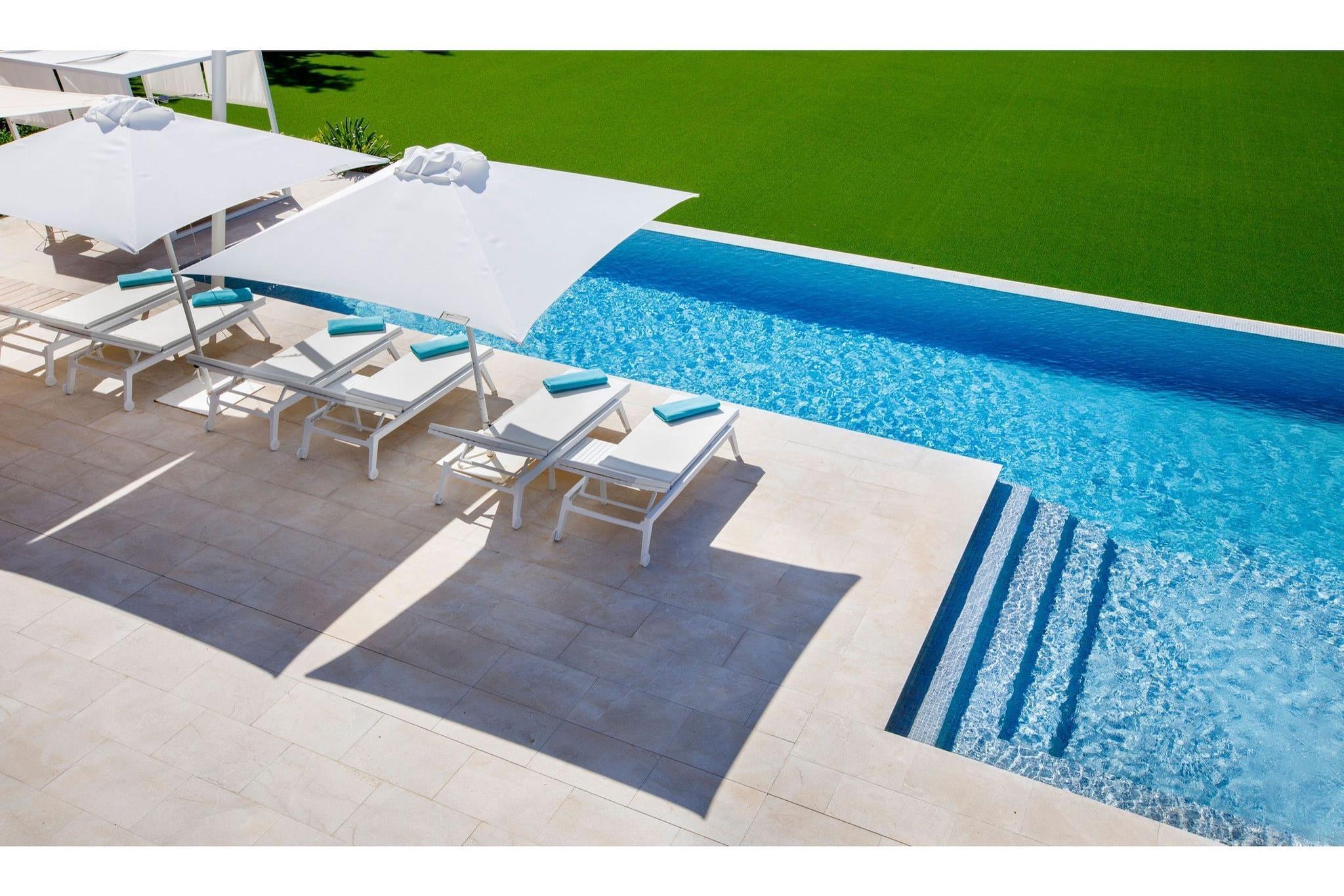 Stueetage: (Køkken(spisebord, bar(spise bar), komfur(glaskeramisk), kaffemaskine, ovn, mikrobølgeovn, opvaskemaskine , køle-fryseskab), stue / spisestue(Fjernsyn(parabol), spisebord, sofahjørne), soveværelse(dobbeltseng(180 x 200 cm), Fjernsyn(parabol), klimaanlæg), badeværelse(bruser(Walk-in-bruser), håndvask, toilet)) På 1. etage: (soveværelse(dobbeltseng(180 x 200 cm), Fjernsyn(parabol), klimaanlæg), soveværelse(dobbeltseng(180 x 200 cm), Fjernsyn(parabol), klimaanlæg), soveværelse(dobbeltseng(160 x 200 cm), Fjernsyn(parabol), klimaanlæg), badeværelse(bruser(Walk-in-bruser), håndvask, toilet), badeværelse(badekar, håndvask, toilet)) fitnessrum(Fjernsyn(parabol)), udekøkken, tørretumbler, bruser(udendørs), vaskemaskine, balkon, varme(central), klimaanlæg, terrasse(140 m2), have, havemøbler, solstole, grill, parkering, Parasol, swimmingpool(privat, 12 x 4 m.), fodboldmål, loungemøbler