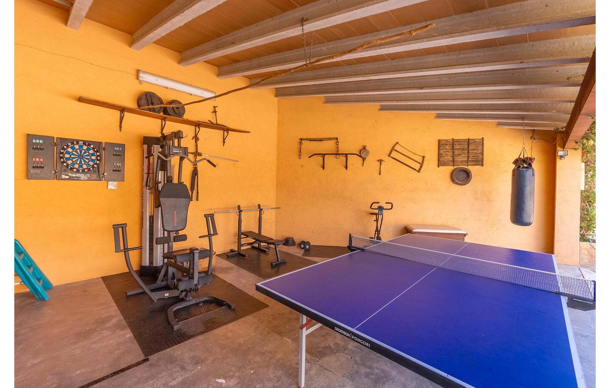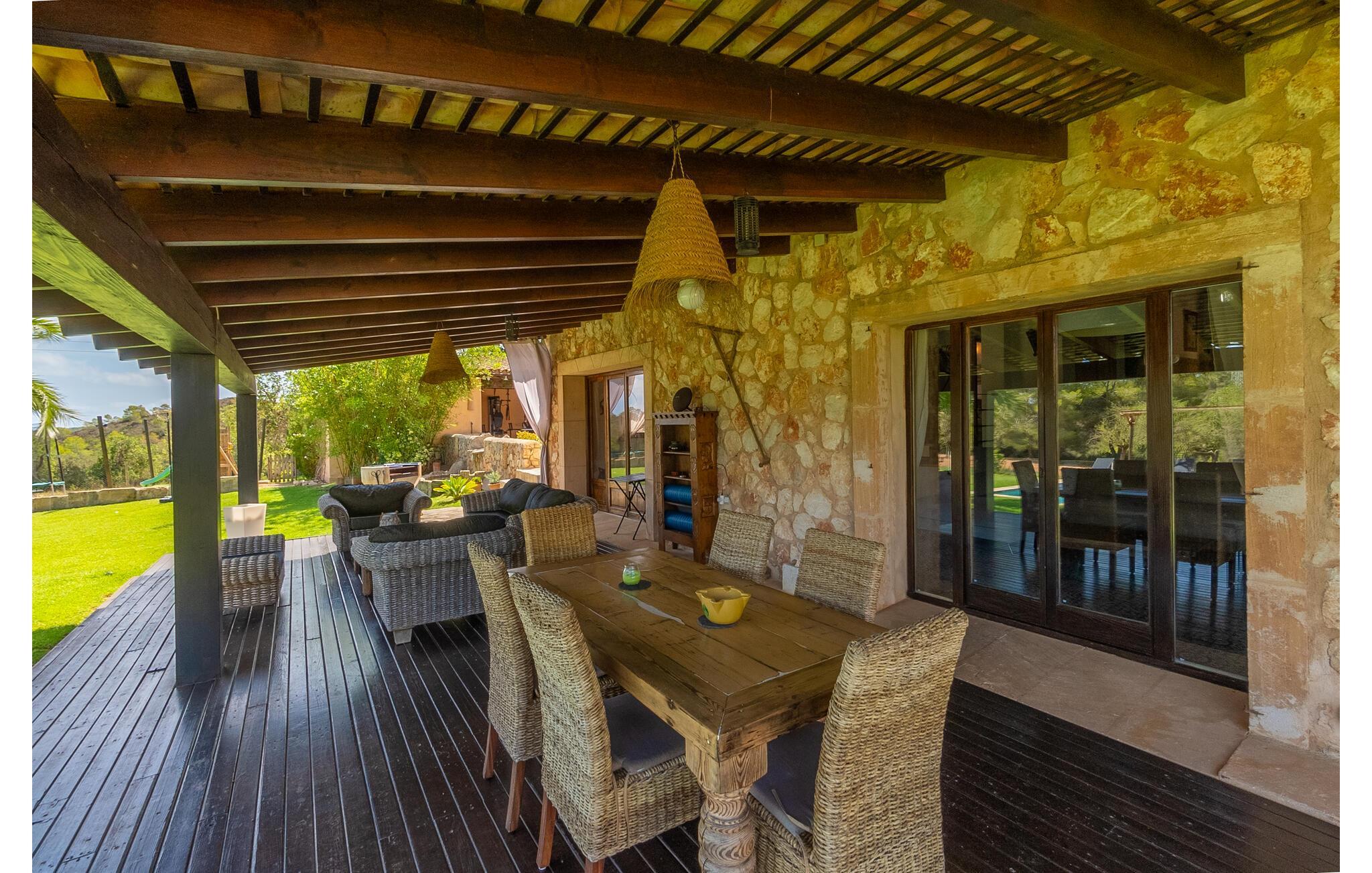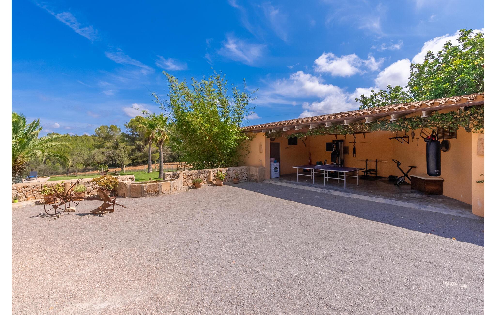 Omgivelserne i den fortryllende villa "Es Sequer" er særligt luksuriøse; På et ejendomsareal på 40.000 m² er du sikker på at finde dit helt eget yndlingssted. Ejendommen er præget af velholdte græsplæner samt palmer og andre middelhavsplanter. Hjertet af haven ligger på bagsiden af huset: den utrolige, næsten 60 m² store pool med nem trinadgang på den ene side er omgivet af en rummelig plæneterrasse. Her kan du slappe af af hjertens lyst og nyde middelhavslyset og den smukke udsigt, enten i solen eller under en af parasollerne. Afhængigt af tidspunktet på dagen finder du også steder med luftig naturlig skygge, der inviterer dig til at blive hængende. Udearealet rummer bekvemt en udendørs bruser og et gæstetoilet. To trin fra haven fører til den rummelige overdækkede terrasse, som er udstyret med et flot trægulv og førsteklasses havemøbler. Denne terrasse rummer et stort spisebord samt et luksuriøst sofaområde, der forvandler dette område til en ægte "udendørs opholds- og spisestue" i de varmere måneder. Her kan du nyde din sofistikerede morgenmad eller afslutte en afslappende dag fuld af ferieaktiviteter. Udsigten over poolen og resten af haven er simpelthen vidunderlig. På varme aftener inviterer den originale grill dig til at forberede og nyde en frisklavet middag med regionale delikatesser sammen med venner. Måske ved at bruge ingredienser købt på markedet tidligere på dagen. Udearealet og poolen er stemningsfuldt oplyst frem til midnat, ligesom den smukke legeplads med klatrestativ, gynger, rutsjebane og trampolin. Alle sportsentusiaster vil finde et fitnessområde i den lille tilstødende bygning med en vægtbænk, håndvægte, pull-up bar og bordtennisbord. Gæsterne kan naturligvis også benytte ejendommens to garager, så du kan parkere din lejebil i skyggen. Dette er et Fincallorca feriehus. Fra terrassen kommer man ind i huset gennem en bred glasdør. Dette fører ind i den åbne stue/spisestue. Masser af lyst træ, dygtigt kombinerede møbler og terracotta fliser skaber en særlig venlig og hyggelig atmosfære. Du vil bare slå dig ned her og frem for alt blive. Forskellige boligetager, forbundet med trætrapper, understreger denne hjemlige og originale atmosfære. Det samme gør den halvhøje glasvæg bag den brede sofa, som afslører udsigten til køkkenet og poolen bagved. Sofahjørnet inviterer til afslapning med en god bog eller en underholdende film. Det massive spisebord lige ved siden af er ideelt til middag for op til seks personer. Køkkenet udstråler simpelthen rummelighed. Udover køleskab, ovn, komfur, opvaskemaskine og mikroovn kan gæsterne også bruge el-komfur, filterkaffemaskine og Nespresso-maskine. Køkken-alrummet byder også på tilstrækkelig opbevaringsplads og et mindre bord med to stole. Soveværelserne imponerer med deres klarhed og masser af hvidt uden unødvendige dikkedarer, suppleret med subtile møbler. Gæsterne har to dobbeltsenge, der måler 1,50 x 2,00 m og to enkeltsenge, der måler 0,90 x 2,00 m i det tredje soveværelse. Det store soveværelse ovenpå er endda udstyret med et andet fjernsyn med satellitforbindelse. Hvis det anmodes om det, kan vi også tilbyde en ekstra seng i soveværelset til et barn, der rejser med dig. De to badeværelser med naturligt lys har et funktionelt og moderne design med flotte gulv- og vægfliser. Du kan nemt lade din hårtørrer og strygejern blive hjemme og blot bruge dem, der allerede er i villaen. Et andet lille højdepunkt i denne villa: Der er en vinkælder (med rød og mallorcansk vin). Et vinkort med beskrivelser og priser på de fyrre flasker er tilgængeligt på stedet. Hvis du har spørgsmål, er du velkommen til at kontakte ejeren, som bor i nærheden. Portocolom er hjemsted for den største naturlige havn på Mallorca. Selvom den i dag hovedsageligt bruges til privat skibsfart, er den fortsat en vigtig fiskerihavn. Havnepromenaden med sine barer og restauranter indbyder til en lang gåtur. Udover havnen er den gamle bydel også et besøg værd. Den naturlige og beskyttede sandstrand Cala de Marcal er omkring 120 meter bred. I nærheden af boligområdet Sa Punta finder du to andre mindre bugter, på den modsatte side af Portocolom-bugten. Villaen "Es Sequer" ligger i en fortryllende beliggenhed mellem Felanitx og Portocolom på den sydlige del af øen. Ferieboligens omgivelser er præget af natur og plads. I bil kan du nå Portocolom på 10 minutter, hvor der er nogle gode restauranter, især ved havnen. Forskellige smukke bugter, såsom Cala Brafi (10 km), kan hurtigt nås. Afstanden fra villaen til lufthavnen er cirka 52 km.