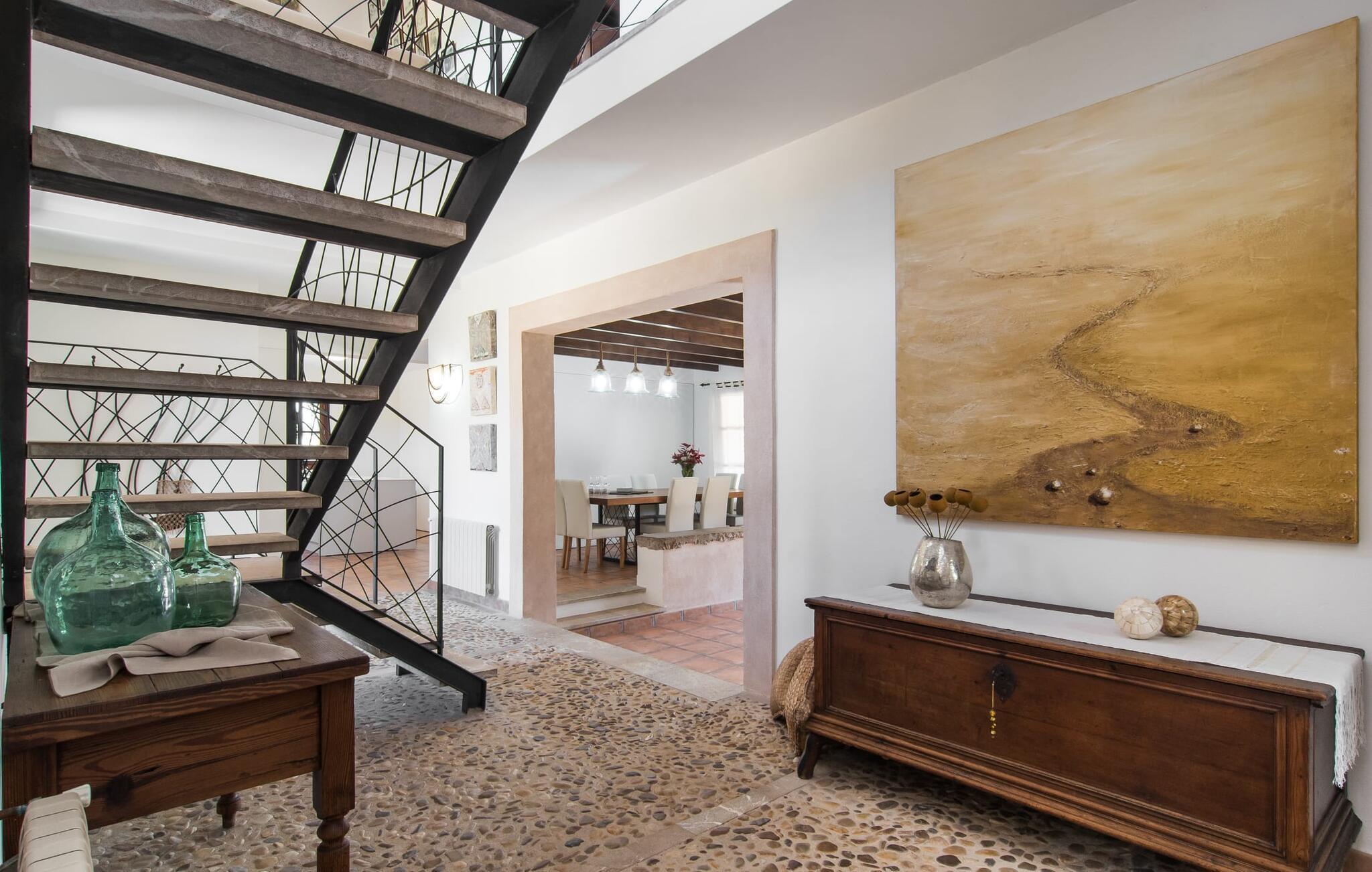 Kun en kort køretur fra Palma Lufthavn byder Finca "Es Triquet" dig velkommen gennem en automatisk port, der fører dig ned ad en asfalteret sti midt i frodige haver. Ejendommen tilbyder rigelig parkering, herunder en garage med to pladser. Omgivet af natur omfatter udendørsarealerne en swimmingpool opdelt i to områder, ideel til børn, og skyggefulde steder under et knudret johannesbrødtræ. Dette er et feriehus i Fincallorca. Villaen imponerer med rustik mallorcansk arkitektur med møbler af høj kvalitet. Indenfor forbinder en stor trappe to niveauer og fører til et opholdsområde med pejs, en rummelig spisestue og et fuldt udstyret køkken. Fire komfortable soveværelser kan rumme op til otte gæster og har charmerende badeværelser. Fra det øverste niveau er der udgang til en solterrasse med en vidunderlig udsigt over Tramuntana-bjergene. Den nybyggede stenvilla "Es Triquet" er beliggende nær byen Binissalem på Pla de Mallorca. Denne landlige, smukke region er fuld af vinmarker, appelsin- og mandeltræer. Du kan tage til Binissalem for at shoppe til daglige behov. Der er et ugentligt marked med regionale produkter om fredagen. Takket være dens centrale beliggenhed, tæt på en hørbar vej, kan du hurtigt nå hovedstaden Palma og strandene som Cuidad Jardin. El skal betales kontant på stedet. Bemærk venligst, at denne ejendom ikke accepterer ungdomsgrupper eller polterabender. En ungdomsgruppe på denne ejendom består af personer under 23 år. Book ikke denne ejendom, hvis du er en ungdomsgruppe eller polterabend, da din reservation vil blive afvist, når den er booket, hvilket kan være ved ankomsten til ejendommen eller under dit ophold, og du vil ikke modtage en refusion.