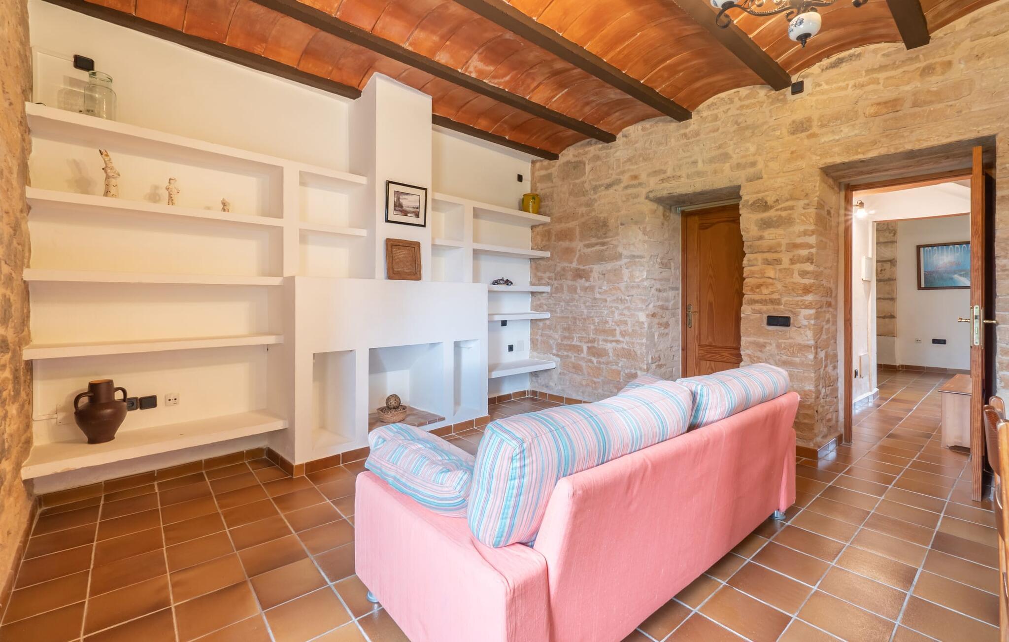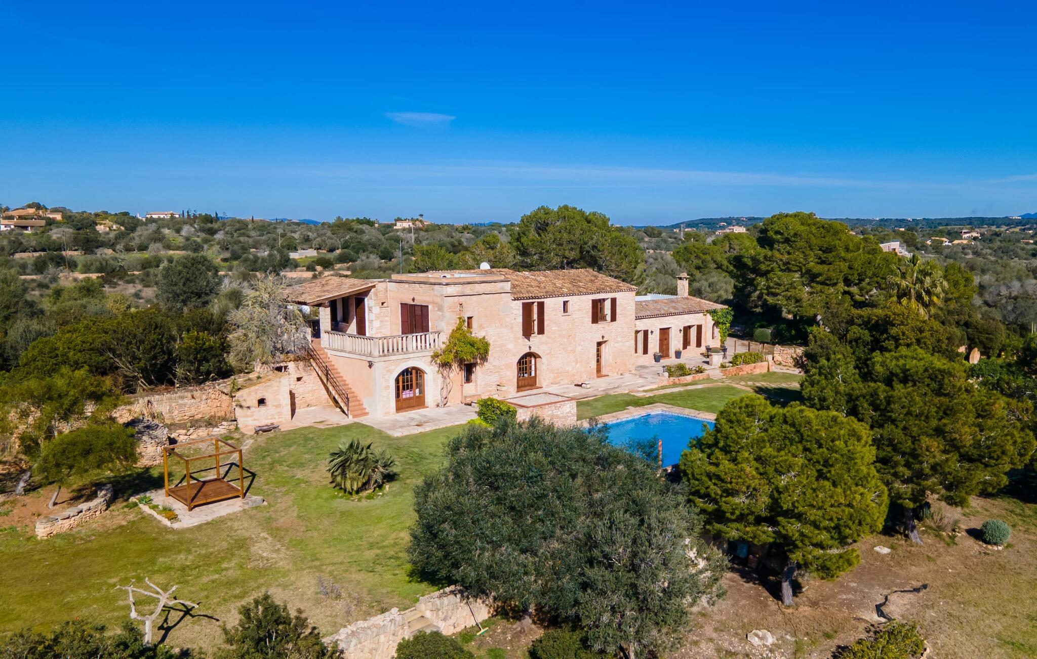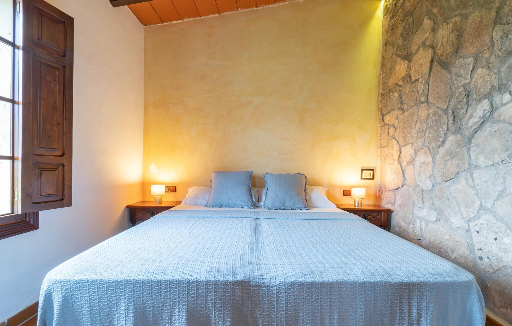 Sol, afslapning, privatliv og en betagende udsigt - alt dette er muligt i ferielejligheden "Es Turo Eivissa", som ligger på ejendommen "S'Hort des Turó de ses Illes". Dette er et feriehus i Fincallorca. Beliggende i et stort parklignende område, kan du nyde rolige gåture og opdage forskellige steder at slappe af, såsom: B. Siddepladser ved poolen, på græsplænen eller i den naturlige skygge af et træ. Den private terrasse lige ved siden af lejligheden byder på et vidunderligt sted at slappe af udenfor. Selve lejligheden kombinerer rustik charme med komfort. Hvide vægge, natursten, terracotta fliser, synlige bjælker og træ skaber en autentisk ø-atmosfære. Den åbne stue-spisestue med integreret køkken byder på alt hvad du behøver til en ferie med selvforplejning. Soveværelset har en dobbeltseng (to enkeltmadrasser) og der er et rummeligt badeværelse. Et varmt-koldt klimaanlæg sikrer komfort året rundt. "Es Turo Eivissa" tilbyder den sande essens af Mallorca, med alle de bekvemmeligheder du har brug for til en afslappende ferie. Dette er en af fem enheder på ejendommen. De er "S'Hort des Turó Cabrera", "S'Hort des Turó Menorca", "S'Hort des Turó Mallorca" og "S'Hort des Turó Formentera" og kan alle bookes på vores hjemmeside. Ferielejligheden "Es Turo Eivissa" ligger kun 3 km sydvest for Ses Salines. Ejendommen på 28.520 m² byder på masser af plads. De umiddelbare omgivelser inviterer til lange gåture gennem naturen. Takket være den strategisk gode beliggenhed kan omkringliggende landsbyer og strande også nås hurtigt. Colonia de Sant Jordi (ca. 2,7 km) har to smukke sandstrande, den nordlige, Es Trenc, er den største naturlige strand på Mallorca.