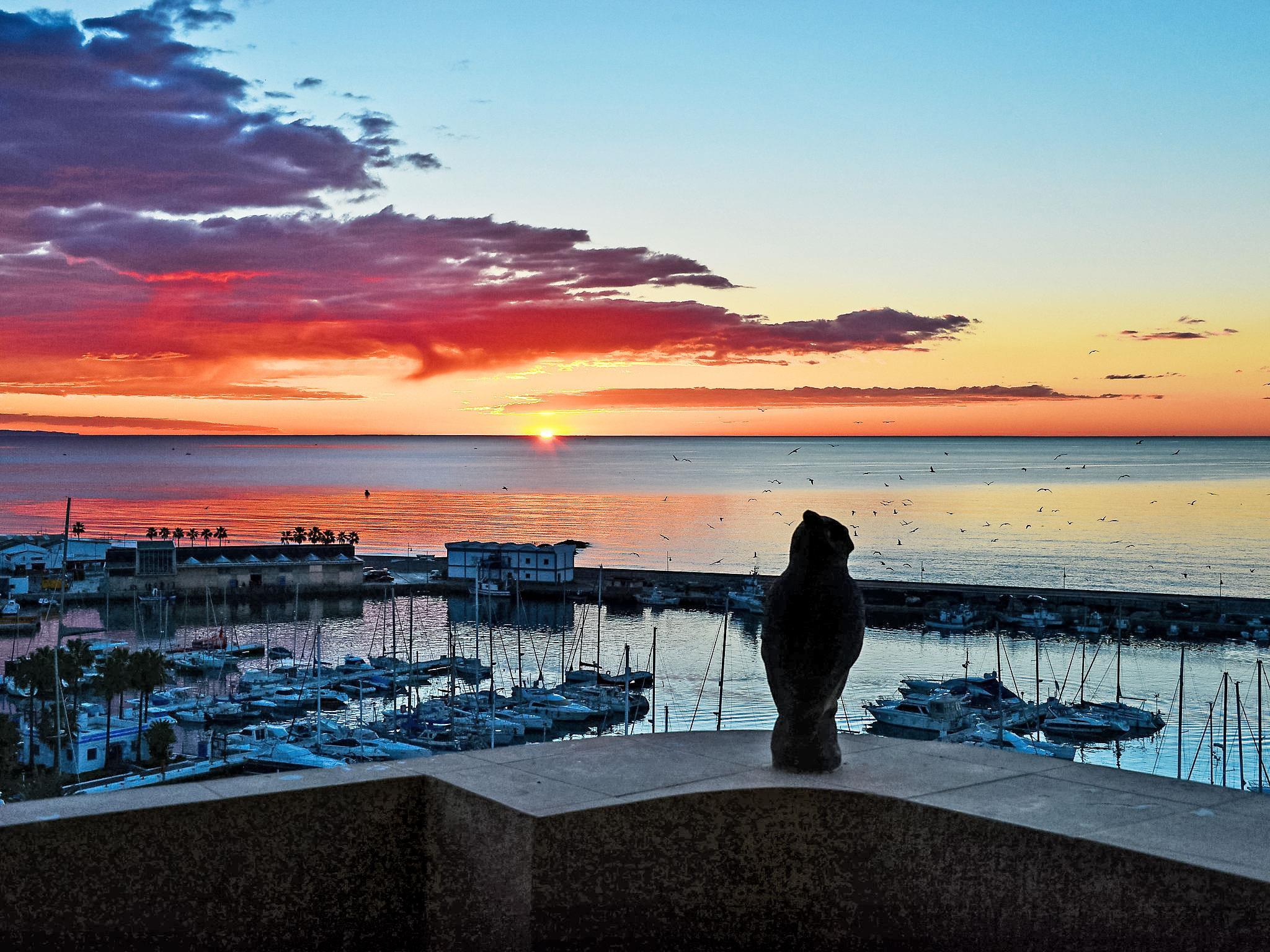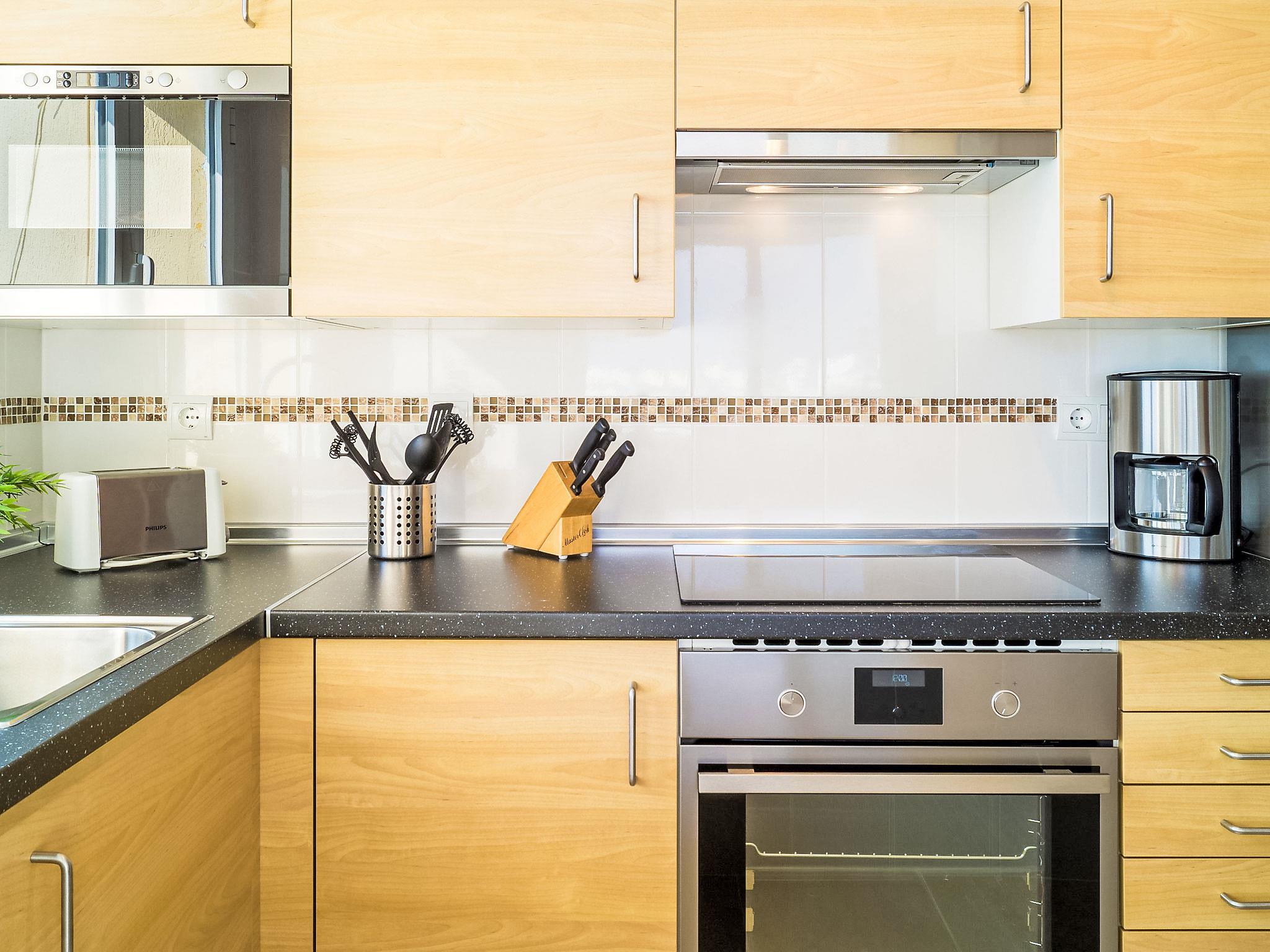 3-room apartment 110 m2 on 7th floor, south-east facing position. Renovated in 2016, comfortable furnishings: living/dining room with digital TV and DVD. Exit to the terrace. 1 room with 1 double bed (2 x 80 cm, length 200 cm), shower/WC (private). 1 room with 2 beds (90 cm, length 185 cm). Kitchen (oven, dishwasher, 4 ceramic glass hob hotplates, toaster, kettle, microwave, freezer, electric coffee machine). Shower/WC, double hand-basin. Air-conditioning, forced-air heating. Terrace 18 m2. Terrace furniture. Panoramic view of the sea and the port. Facilities: washing machine, iron, children's high chair, baby cot for up to 2 year olds, hair dryer. Internet (WiFi, free). Garage. Please note: non-smokers only. VUT/MA/01880 // Reg. Nr.: ESFCTU0000290360001649660000000000000000VUT/MA/018800
