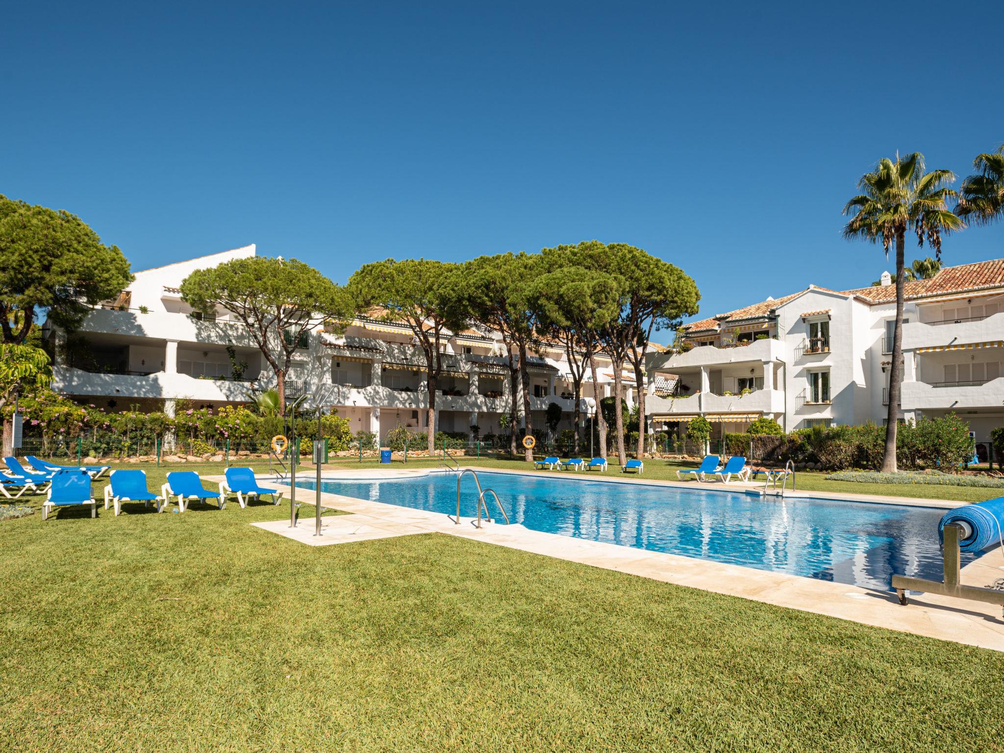 Apartment block "El Presidente". 12 km from the centre of Estepona, 6 km from the centre of Puerto Banús, 400 m from the sea, 500 m from the beach, south facing position. For shared use: park, garden with lawn, 5 swimming pools (seasonal availability: 01.Jan. - 31.Dec.). Shower/WC in the pool area, children's pool, tennis, floodlit, children's playground, public parking on the road. Supermarket 800 m, restaurant, bus stop 300 m, sandy beach 500 m. Sports harbour 6 km, golf course (18 hole) 3 km. Object suitable for 4 adults. The owner does not accept any groups. The owner does not accept any youth groups. Neighbourhood highly sensitive to noise. Quietness and good behaviour expected. One of the swimming pools is heated in winter.