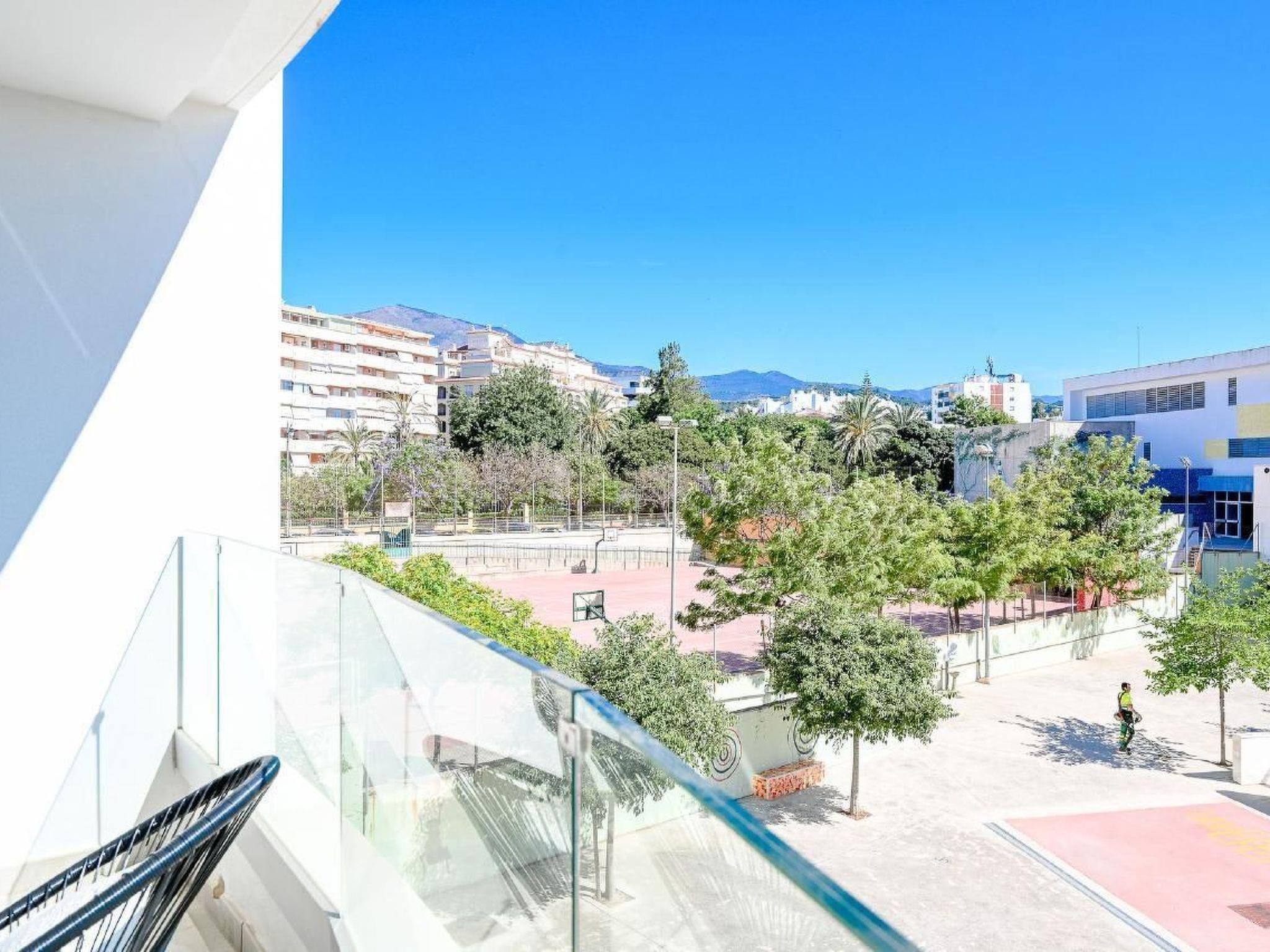 Externally, the apartment boasts a gently curved, east-facing terrace that captures the morning sun, offering a tranquil space to relax while overlooking a primary school and enjoying views of Estepona's charming old town. For those who drive, the convenience of indoor parking within the garage on-site adds to the apartment's appeal. The inclusion of communal use of a washing machine in the building ensures practicality for longer stays.