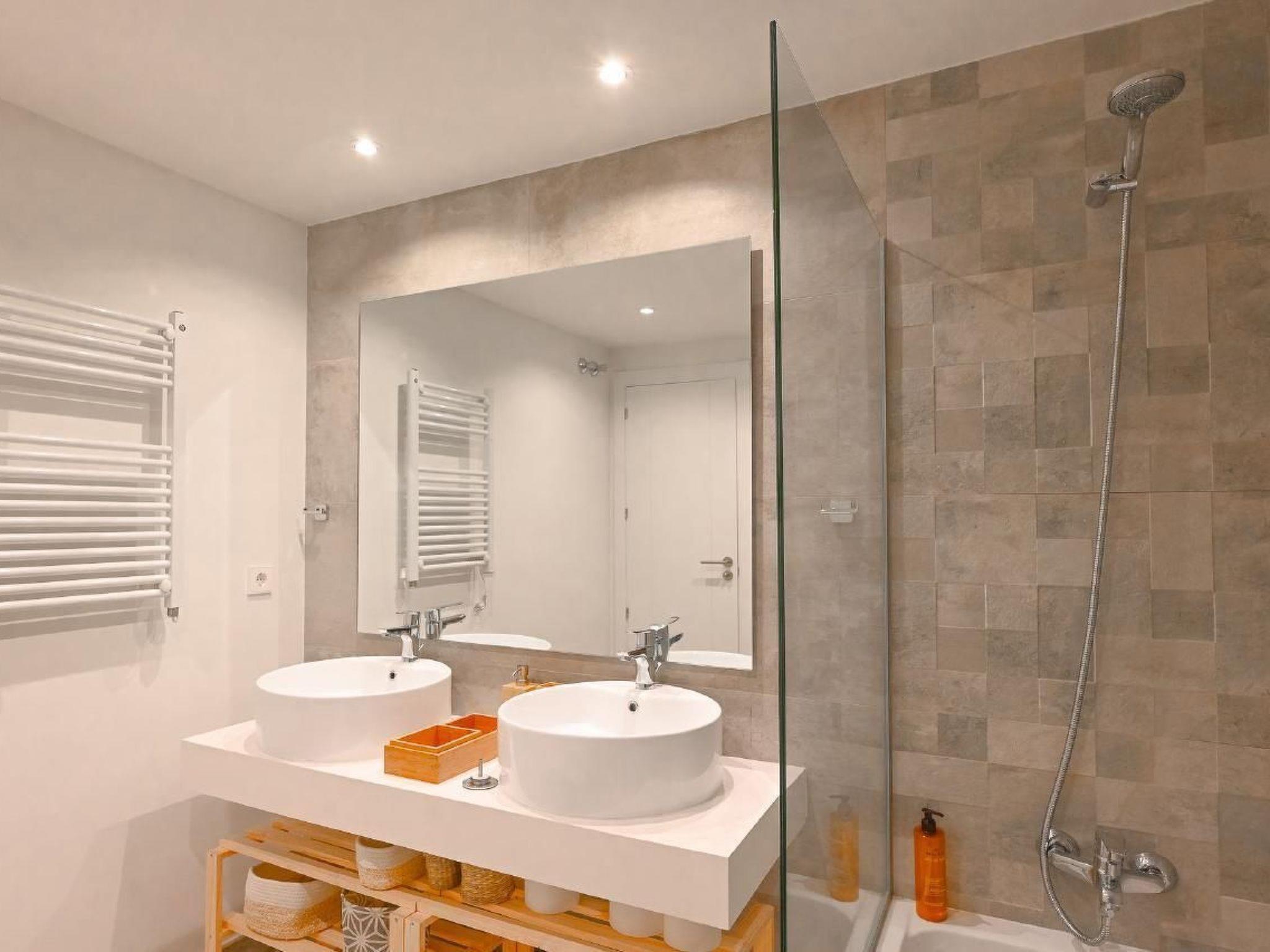 Inside, the apartment shines with modern amenities and thoughtful touches designed to ensure utmost comfort. Each of the two bedrooms is equipped with dimmable lights and fitted wardrobes, making storage a breeze. The living space is complemented by two full bathrooms, one featuring a bathtub with an integrated shower and another with a standalone shower, catering to varied preferences. The living area, beautified with stylish furnishings, comes complete with air conditioning, Wi-Fi, a Smart TV, a dishwasher, an electric kettle, and both a coffee machine and an espresso pot, promising both convenience and comfort.