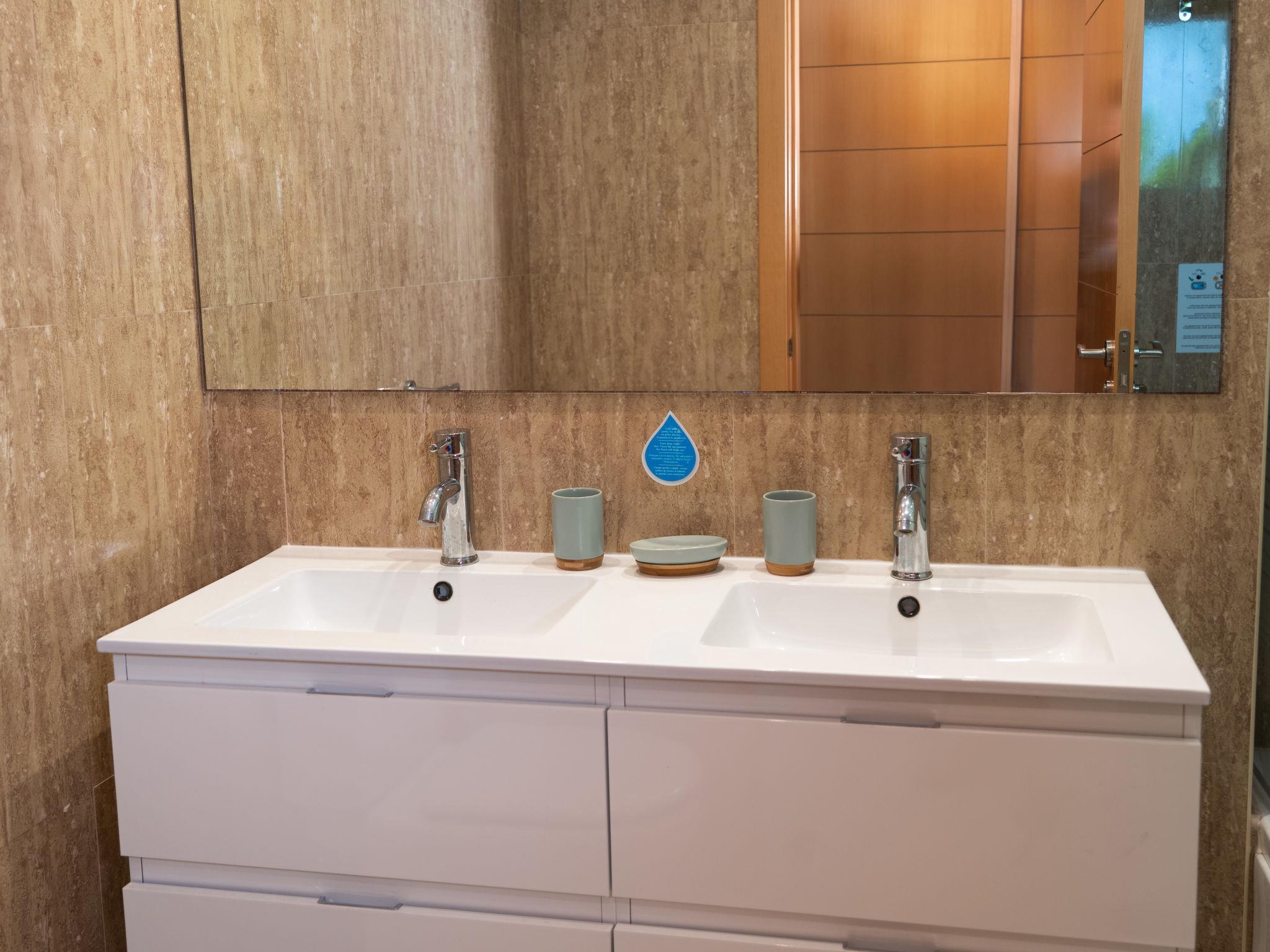 "Cortijo de Mar - Sunrise", 3-room apartment 96 m2, lower ground floor. Object suitable for 4 adults. Spacious and bright, comfortable and modern furnishings: living/dining room with digital TV, air conditioning and forced-air heating. Exit to the terrace. 1 room with 1 french bed (180 cm, length 190 cm), bath/WC and hydro massage bath (private) air conditioning and forced-air heating. 1 room with 2 beds (90 cm, length 190 cm), air conditioning and forced-air heating. Kitchen (oven, dishwasher, 4 ceramic glass hob hotplates, toaster, kettle, microwave, electric coffee machine, combination microwave). Shower/WC, hydro massage shower. Patio 75 m2. Deck chairs (2). Facilities: washing machine, safe, iron, children's high chair, baby cot, hair dryer. Internet (WiFi, free). Parking space n 156. Please note: non-smokers only. VUT/MA/90704 // Reg. Nr.: ESFCTU0000290370004876420000000000000000VUT/MA/907043