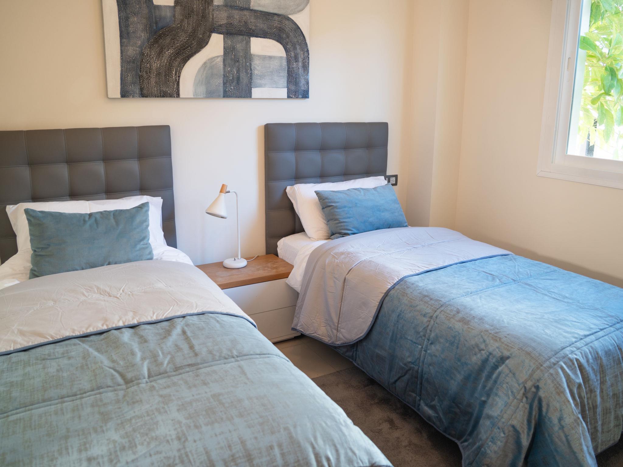Very beautiful, cosy, very comfortable resort "Cortijo del Mar", built in 2011, surrounded by trees. 5 km from the centre of San Pedro de Alcantara, 14 km from the centre of Estepona, outside the resort, 16 km from the centre of Marbella, in the district El Paraiso, in a quiet, sunny position, traffic calmed area, 1.6 km from the sea, 2.6 km from the beach. For shared use: garden with lawn, natural garden, lawn for sunbathing, swimming pool kidney-shaped (43 x 23 m, depth 100 - 210 cm, seasonal availability: 01.Apr. - 15.Oct. pool opening hours: 11:00-18:00 and 11:00-20:00). Shower/WC in the pool area, children's pool, outdoor shower. Shop, supermarket, restaurant 500 m, bus stop "El Pilar" 800 m, sandy beach "Playa Salduna" 2.6 km. Sports harbour 9 km, marina 9 km, golf course (18 hole) 2.4 km. The owner does not accept any youth groups. Please note: guarded residence. Additional accommodations can be booked.