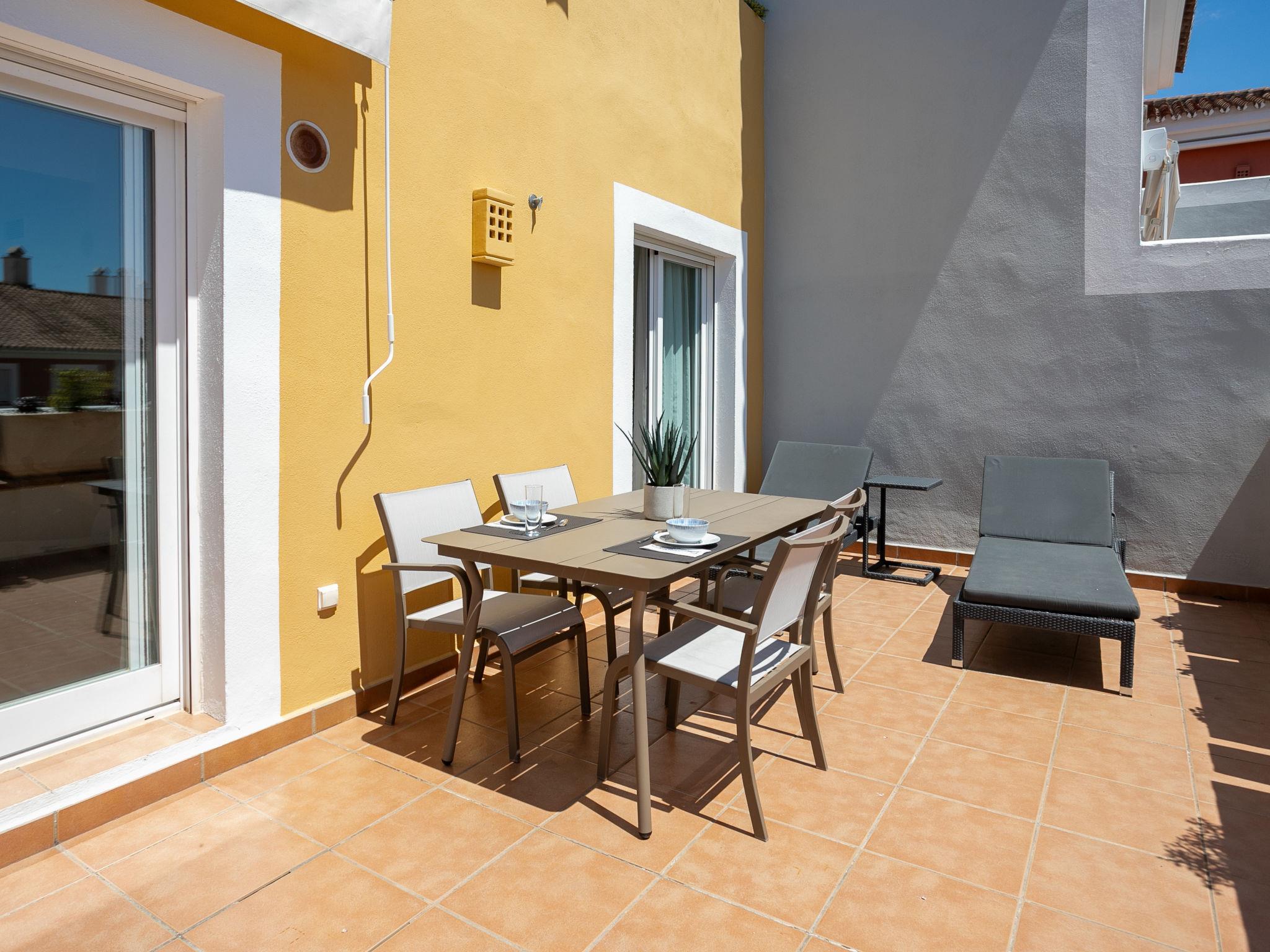 Very beautiful, cosy, very comfortable resort "Cortijo del Mar", built in 2011, surrounded by trees. 5 km from the centre of San Pedro de Alcantara, 14 km from the centre of Estepona, outside the resort, 16 km from the centre of Marbella, in the district El Paraiso, in a quiet, sunny position, traffic calmed area, 1.6 km from the sea, 2.6 km from the beach. For shared use: garden with lawn, natural garden, lawn for sunbathing, swimming pool kidney-shaped (43 x 23 m, depth 100 - 210 cm, seasonal availability: 01.Apr. - 15.Oct. pool opening hours: 11:00-18:00 and 11:00-20:00). Shower/WC in the pool area, children's pool, outdoor shower. Shop, supermarket, restaurant 500 m, bus stop "El Pilar" 800 m, sandy beach "Playa Salduna" 2.6 km. Sports harbour 9 km, marina 9 km, golf course (18 hole) 2.4 km. The owner does not accept any youth groups. Please note: guarded residence. Additional accommodations can be booked.