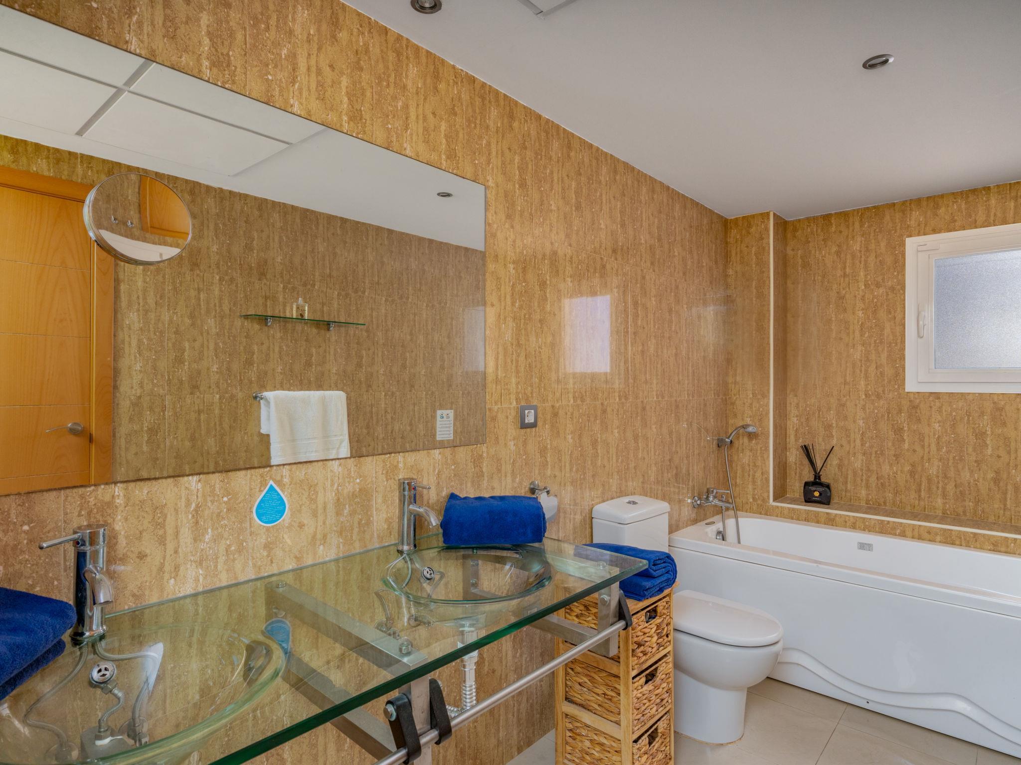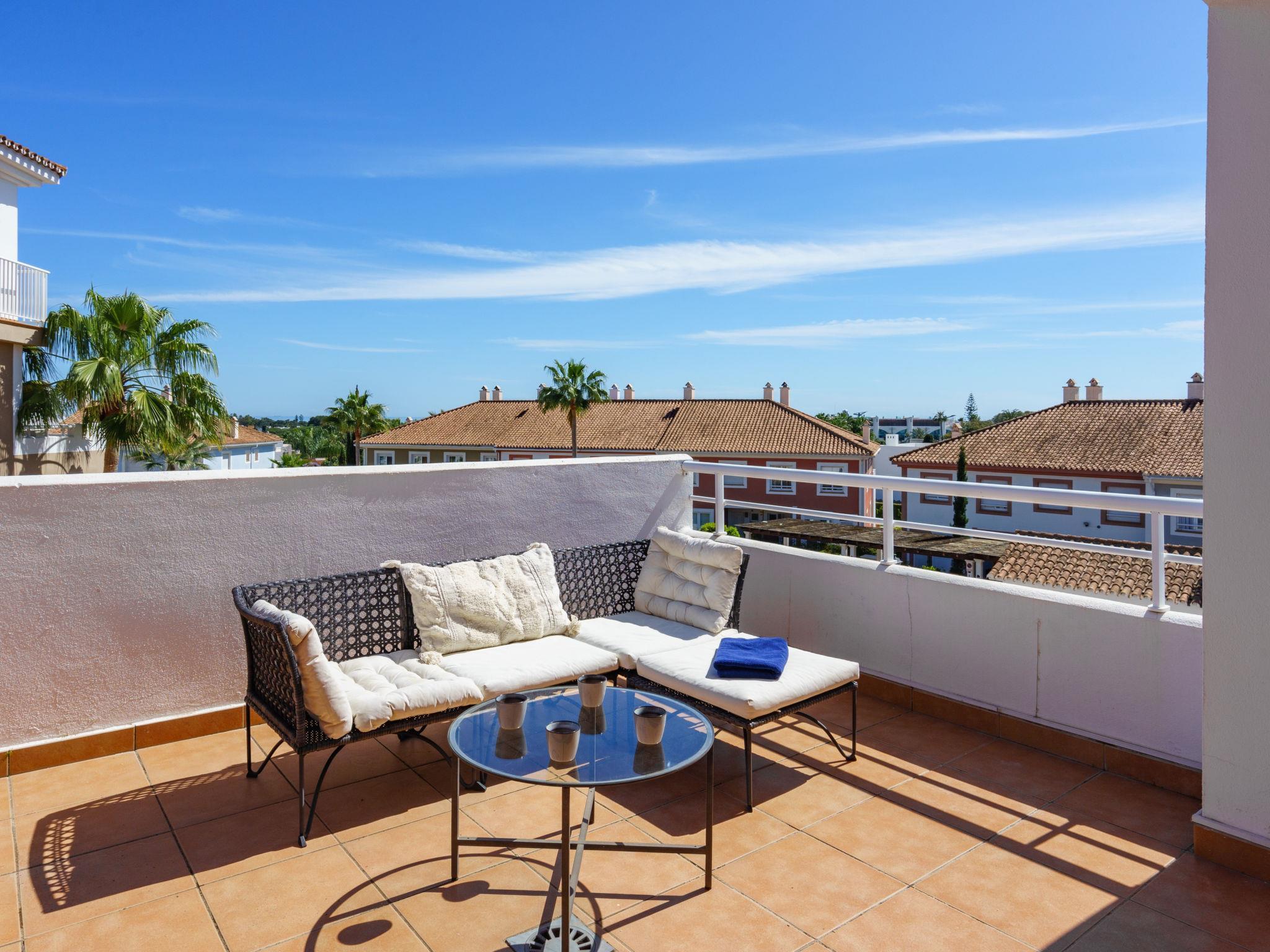 "Cortijo del Mar - Marisma", 4-room apartment 130 m2 on 2 levels, on the top floor. Object suitable for 4 adults + 2 children. Spacious and bright, comfortable and beautiful furnishings: living/dining room with digital TV, air conditioning and forced-air heating. Exit to the terrace. 1 room with 2 beds (80 cm, length 205 cm), air conditioning and forced-air heating. 1 room with 1 sofabed (140 cm, length 200 cm), air conditioning and forced-air heating. Kitchen (oven, dishwasher, 4 ceramic glass hob hotplates, toaster, kettle, microwave, freezer, electric coffee machine, Capsules for coffee machine (Nespresso) extra). 2 baths/WC. Upper floor: 1 room with 1 french bed (180 cm, length 200 cm), bath/WC (private) air conditioning and forced-air heating. Exit to the terrace. 2 terraces. Terrace furniture. Side view of the sea and the swimming pool. Facilities: washing machine, iron, children's high chair, baby cot, hair dryer. Internet (WiFi, free). Parking space n 157. Please note: suitable for families. Non-smokers only. VUT/MA/92926 // Reg. Nr.: ESFCTU0000290370004876590000000000000000VUT/MA/929265