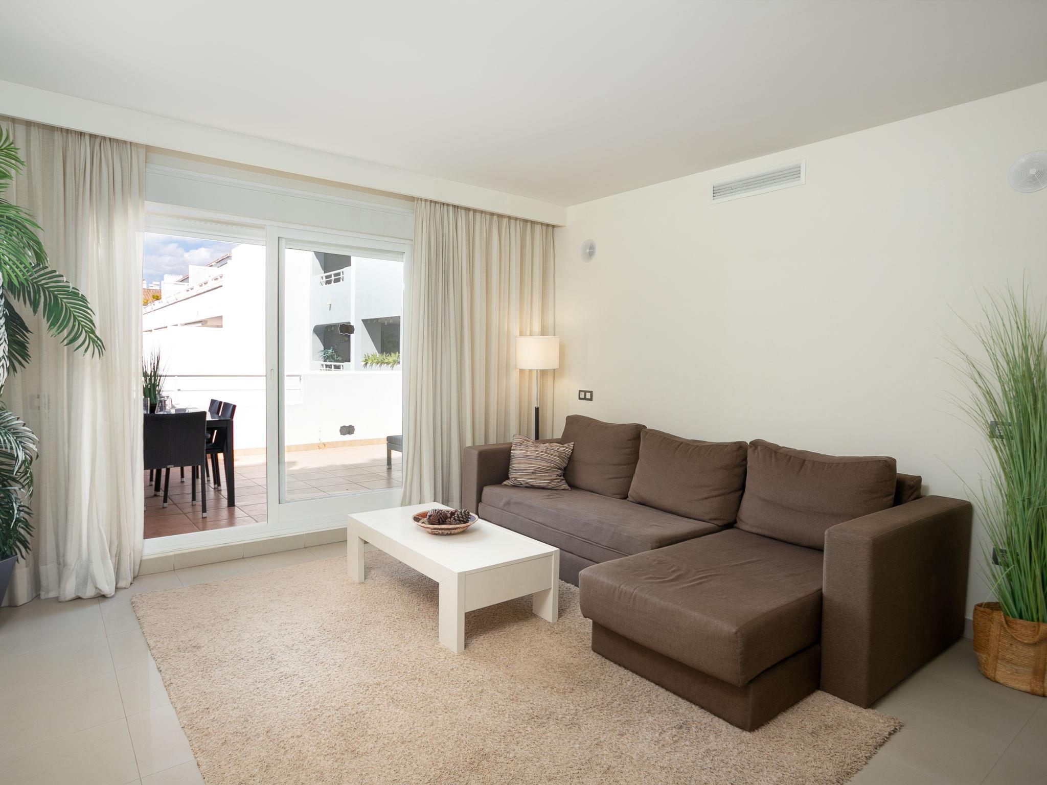 "Cortijo seastar", 3-room apartment 106 m2, south facing position. Bright, very comfortable and beautiful furnishings: living/dining room with digital TV, air conditioning and forced-air heating. Exit to the terrace. 1 room with 1 french bed (180 cm, length 200 cm), bath/WC and double hand-basin (private) air conditioning and electric shutters. Exit to the terrace. 1 room with 2 beds (105 cm, length 200 cm), air conditioning and forced-air heating. Kitchen (oven, dishwasher, 4 ceramic glass hob hotplates, toaster, kettle, microwave, freezer, electric coffee machine). Bath/WC. Terrace. Terrace furniture. View of the swimming pool and the garden. Facilities: washing machine, iron, children's high chair, baby cot, hair dryer. Internet (WiFi, free). Parking space n 58, garage. VUT/MA/92420 // Reg. Nr.: ESFCTU0000290370004872460000000000000000VUT/MA/924200