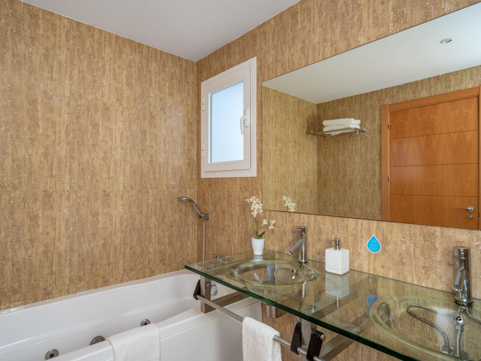 "Cortijo del Mar - Mermaids Hideaway", 3-room apartment 96 m2, on the ground floor. Bright, comfortable and beautiful furnishings: living/dining room with digital TV and air conditioning. Exit to the patio. 1 room with 1 french bed (190 cm, length 200 cm), shower/bidet/WC (private) air conditioning and forced-air heating. 1 room with 2 beds (110 cm, length 200 cm). Kitchen (4 ceramic glass hob hotplates, toaster, kettle, microwave, freezer, electric coffee machine). Shower/WC. Terrace, garden. Terrace furniture. Facilities: washing machine, iron, children's high chair, baby cot, hair dryer. Internet (WiFi, free). Garage space n 83. Please note: non-smokers only. VUT/MA/92801 // Reg. Nr.: ESFCTU0000290370004870170000000000000000VUT/MA/928013