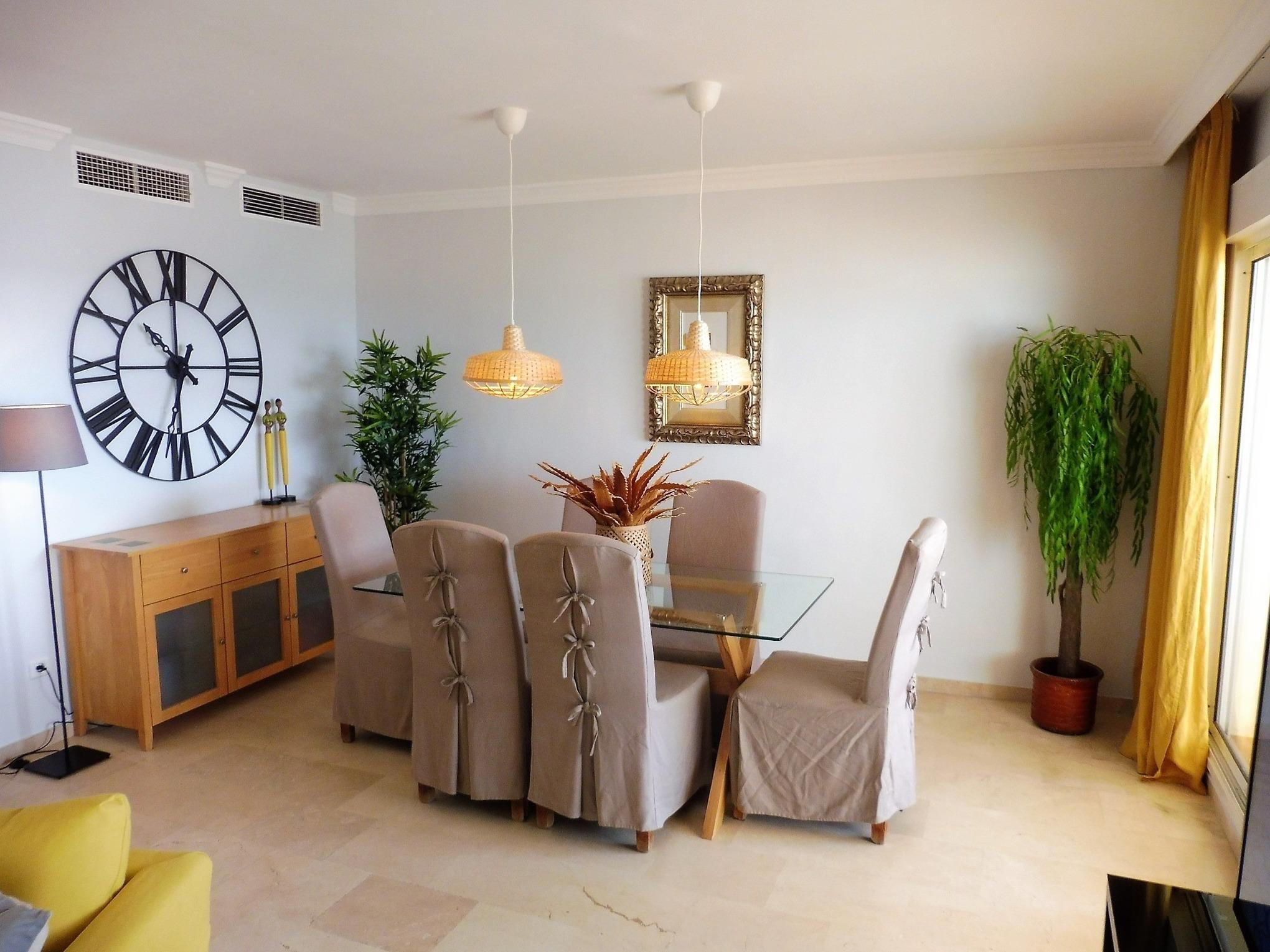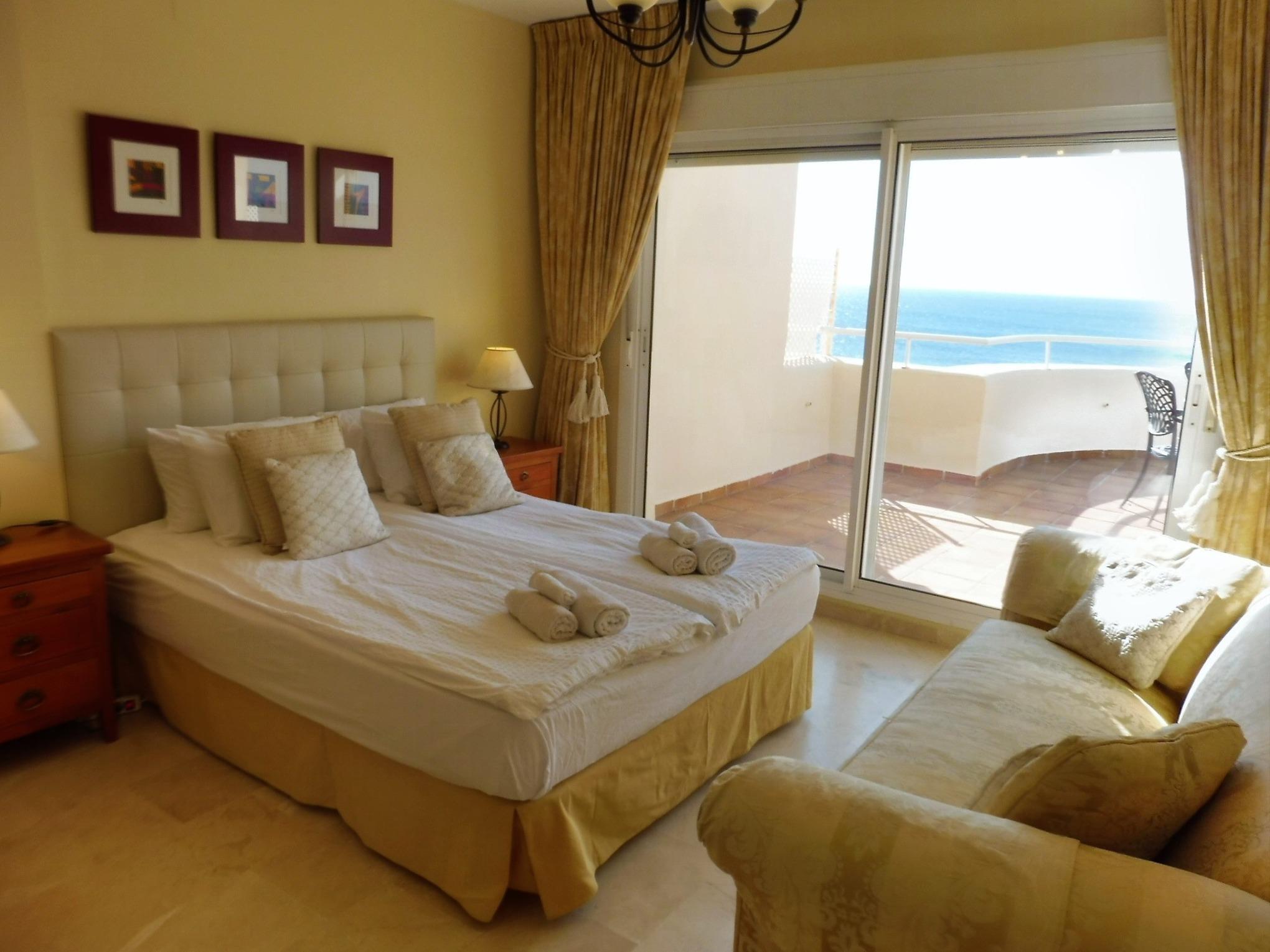 PENTHOUSE BERMUDA BEACH 3 ist eine sehr geräumige 3-Schlafzimmer-/ 2-Badezimmer-Wohnung mit viel Platz für die zu 6 Personen! Auf insgesamt 260m² (140m² innen + 120m² Terrassen) bietet die Wohnung ausreichend Raum mit wunderschönem Panorama-Blick auf das Meer und nahe Küste bis nach Afrika/ Gibraltar!