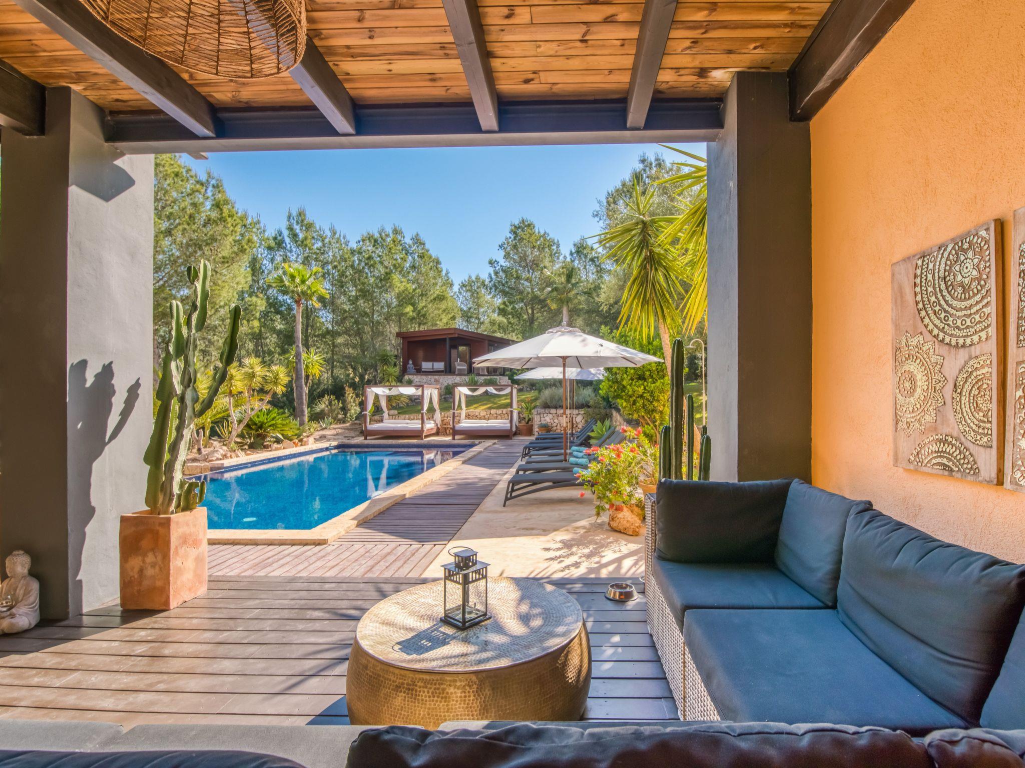 The furnishings match the modern style of the finca, the colour scheme is calm and the style is minimalist. A mixture of warm wood tones, large-format, light-coloured tiles - combined with glass and steel. Beautiful, unique pieces that we have found stand alongside design classics that are pleasing to the eye, calming and refreshing at the same time.