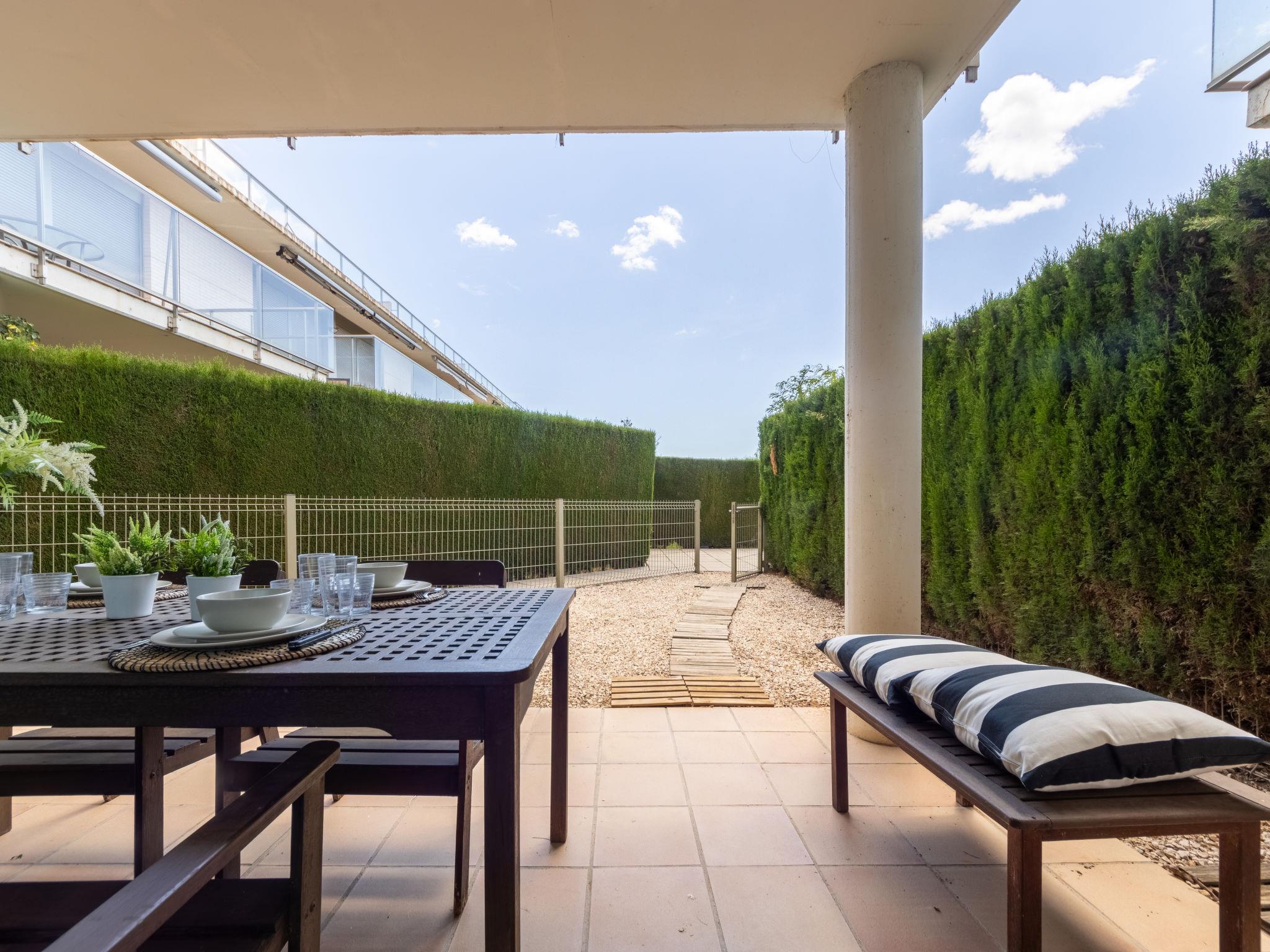 L'Ampolla 2 km from El Mirador del Delta: Beautiful, cosy apartment block. For shared use: garden, swimming pool angular (10 x 5 m, depth 1 - depth 90 cm, seasonal availability: 05.Mar. - 30.Nov.). Private: property with lawn. In the house: WiFi, air conditioning, washing machine. Parking, communal covered parking. Shop 3 km, grocery 3 km, supermarket 3 km, bakery 3 km, bus stop 11 km, railway station 3 km. Sports harbour 3 km, marina 3 km. Nearby attractions: PORT AVENTURA, PORTS DE BECEITE.