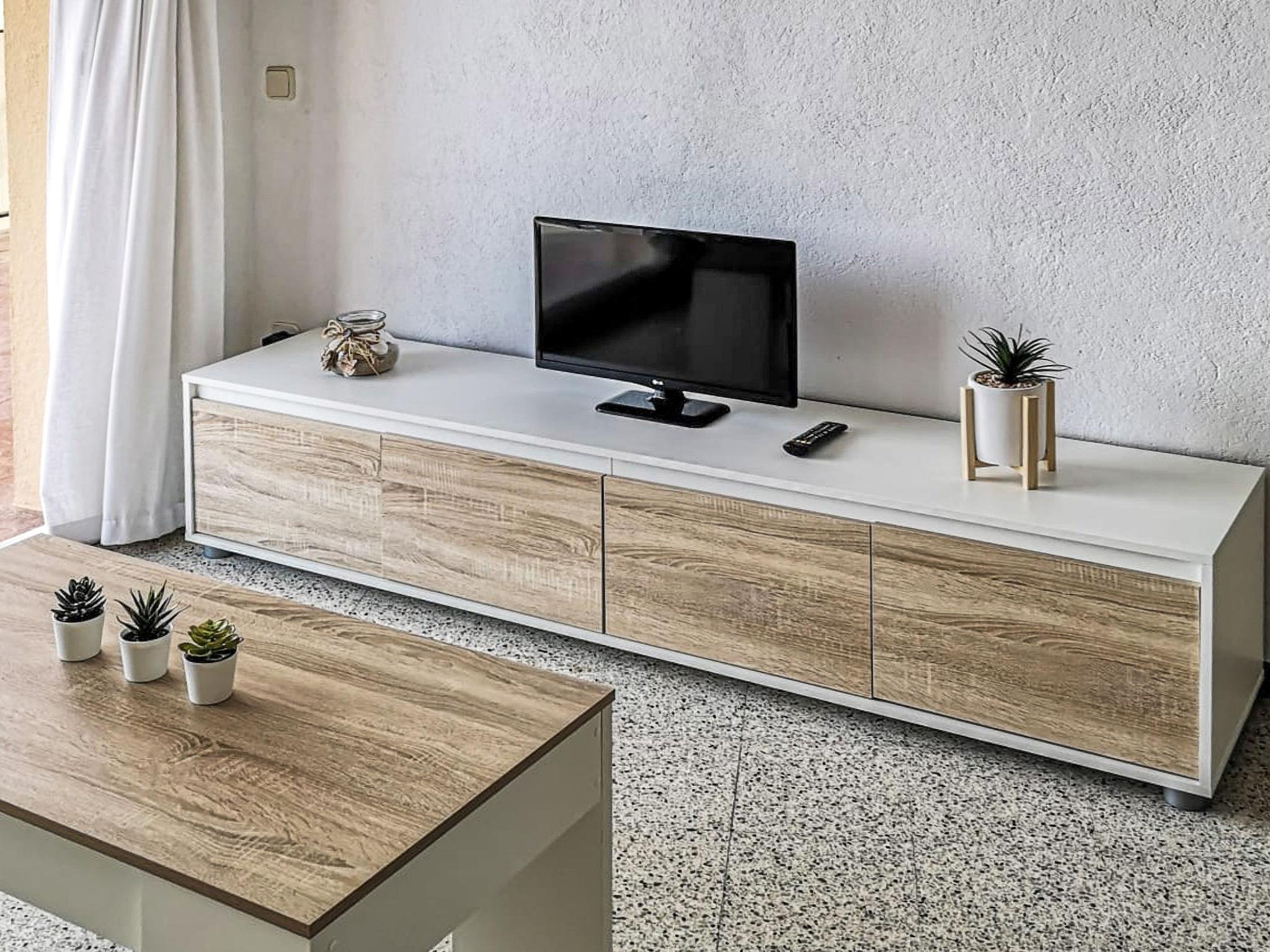 3-room apartment 50 m2 on 3rd floor. Simple and practical furnishings: living/dining room with cable TV. Exit to the terrace. 1 room with 1 french bed (135 cm, length 190 cm). Exit to the terrace. 1 room with 2 beds (80 cm, length 190 cm). Exit to the balcony. Kitchen (4 hot plates, oven, dishwasher, microwave). Shower/WC. Electric heating, air-conditioning. Balcony 15 m2. Balcony furniture. Marvellous view of the sea and the resort. Facilities: washing machine. Parking (1 car). HUTG006125 // Reg. Nr.: ESFCTU00001701000021112200000000000000000HUTG-0061259