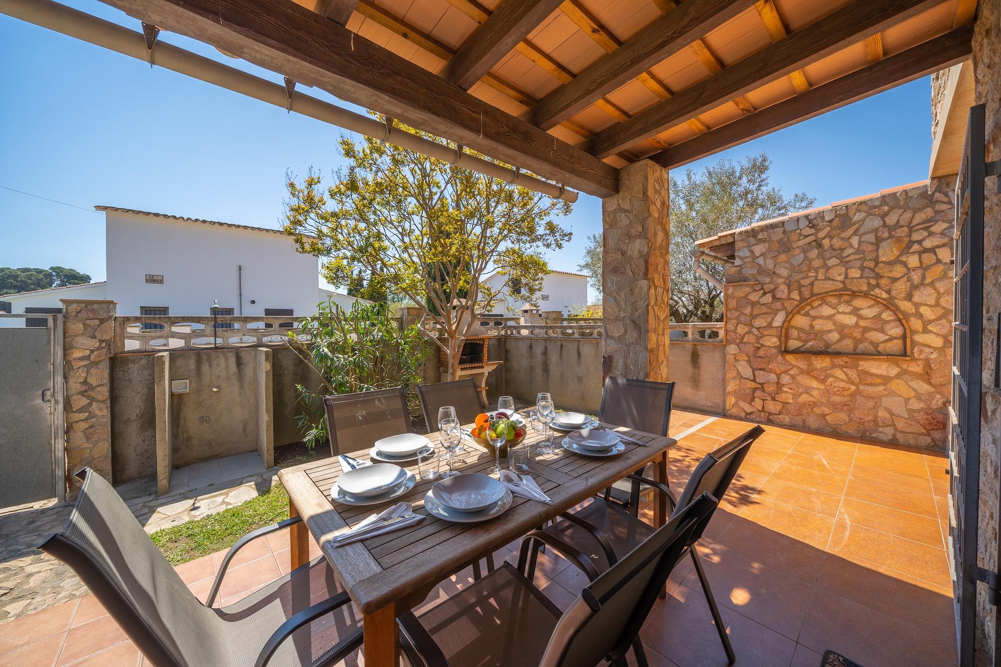 Dette rummelige feriehus er en hyggelig villa på 110 m² og har komfortabel plads til op til seks gæster. Det har to store soveværelser og et lyst og rummeligt interiør, der er ideelt til familier eller små grupper. Villaen er omgivet af en indhegnet have og har en møbleret terrasse og grillplads - perfekt til udendørs spisning og afslapning. Selvom der ikke er specificeret nogen regler for kæledyr, kan gæsterne drage fordel af faciliteter såsom aircondition i stuen og nogle soveværelser, en vaskemaskine og parkering i garage. Der er også gratis Wi-Fi og et tv for ekstra bekvemmelighed. Villaen ligger i en fredelig forstad til L'Escala, kun 550 m fra Platja d'Empúries og tæt på den naturskønne Platja Cala del Pedrigolet (1 km). Gæsterne kan nyde nærliggende restauranter, kun 500 m væk, samt lokale butikker og et supermarked 2 km fra ejendommen. L'Escalas historiske centrum ligger kun 3 km væk, mens Parc Natural del Montgrí nemt kan nås inden for 5 km. Transportforbindelser inkluderer en nærliggende busstation og Flaçà togstation 25 km væk. Det separate køkken er fuldt udstyret med moderne apparater, herunder induktionskogeplade, køleskab, ovn, mikrobølgeovn, fryser og opvaskemaskine. Gæsterne finder også alt nødvendigt redskaber, en kaffemaskine, brødrister, elkedel og juicer, hvilket gør det nemt og effektivt at lave mad selv. Villaen har en privat garage, strygejern og hårtørrer og er designet til komfortable ophold året rundt med både varme og aircondition. (Bemærk: Den fælles swimmingpool er udelukkende tilgængelig i juli og august.)