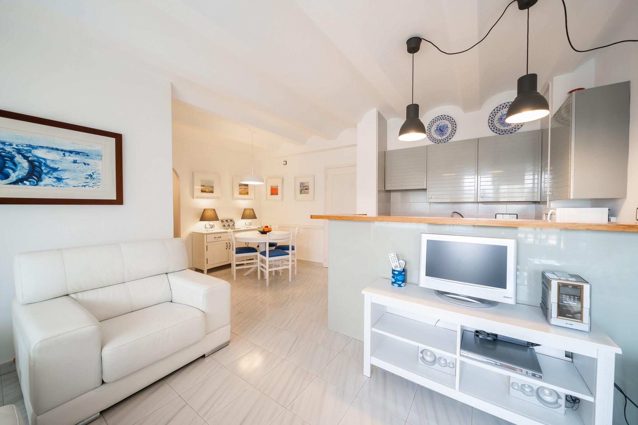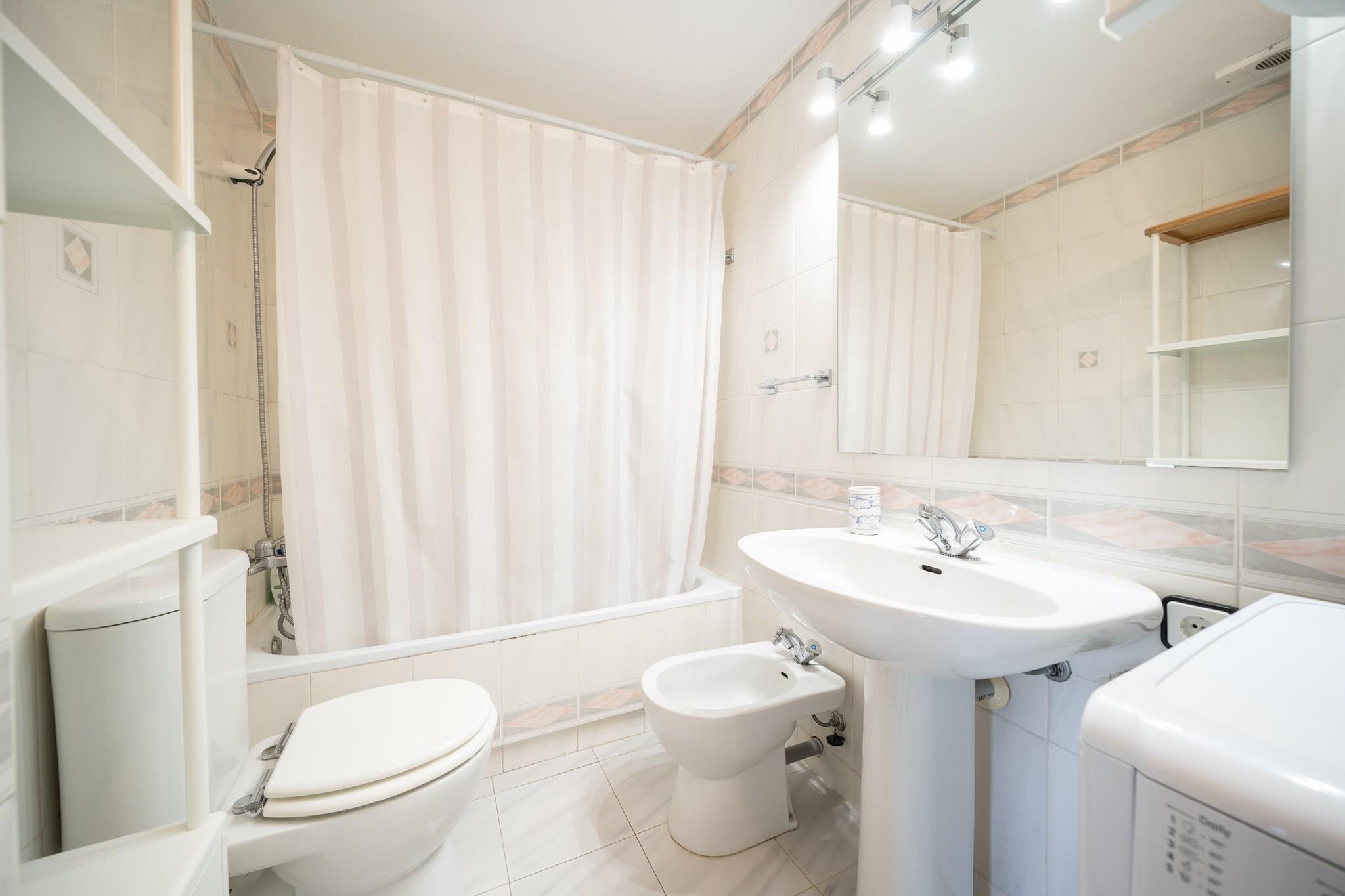 Dette hyggelige feriehus på 60 m² ved stranden tilbyder et fuldt udstyret og komfortabelt ophold for op til fire gæster. Det har to veludstyrede soveværelser og et badeværelse, hvilket gør det ideelt for par eller små familier. Ejendommen ligger direkte ved havet og har en 6 m² privat terrasse, en indhegnet have og en balkon - perfekt til at nyde havudsigten og den friske luft. Yderligere faciliteter inkluderer vaskemaskine, Wi-Fi, ventilator, hårtørrer, tv og adgang til en fælles swimmingpool. Lejligheden ligger i L'Escalas familievenlige historiske centrum, kun 50 m fra den klippefyldte Platja Cala de la Creu og 400 m fra den sandede Platja de les Barques. Gæsterne kan nyde lokale retter på nærliggende restauranter (300 m) og handle i supermarkedet kun 550 m væk. For naturelskere ligger Parc Natural del Montgrí kun 3 km fra ejendommen, mens offentlig transport er tilgængelig fra den lokale busstation, 700 m væk. Lejligheden har gode forbindelser til regionale højdepunkter, herunder Flaçà togstation (24 km), vandlandet Aquabrava og Girona-Costa Brava Lufthavn (55 km). Det åbne køkken med keramiske kogeplader er designet til praktisk selvforplejning og inkluderer køleskab, mikrobølgeovn, fryser, opvaskemaskine og essentielt køkkengrej. Små apparater såsom kaffemaskine, elkedel og brødrister gør morgenerne nemme og behagelige. Med sin førsteklasses beliggenhed, havudsigt og gennemtænkte faciliteter tilbyder denne lejlighed et afslappende, godt forbundet tilflugtssted, ideelt for strandelskere og dem, der ønsker at udforske Costa del Sol. Brava. (Bemærk: Den fælles swimmingpool er udelukkende tilgængelig i juli og august.)