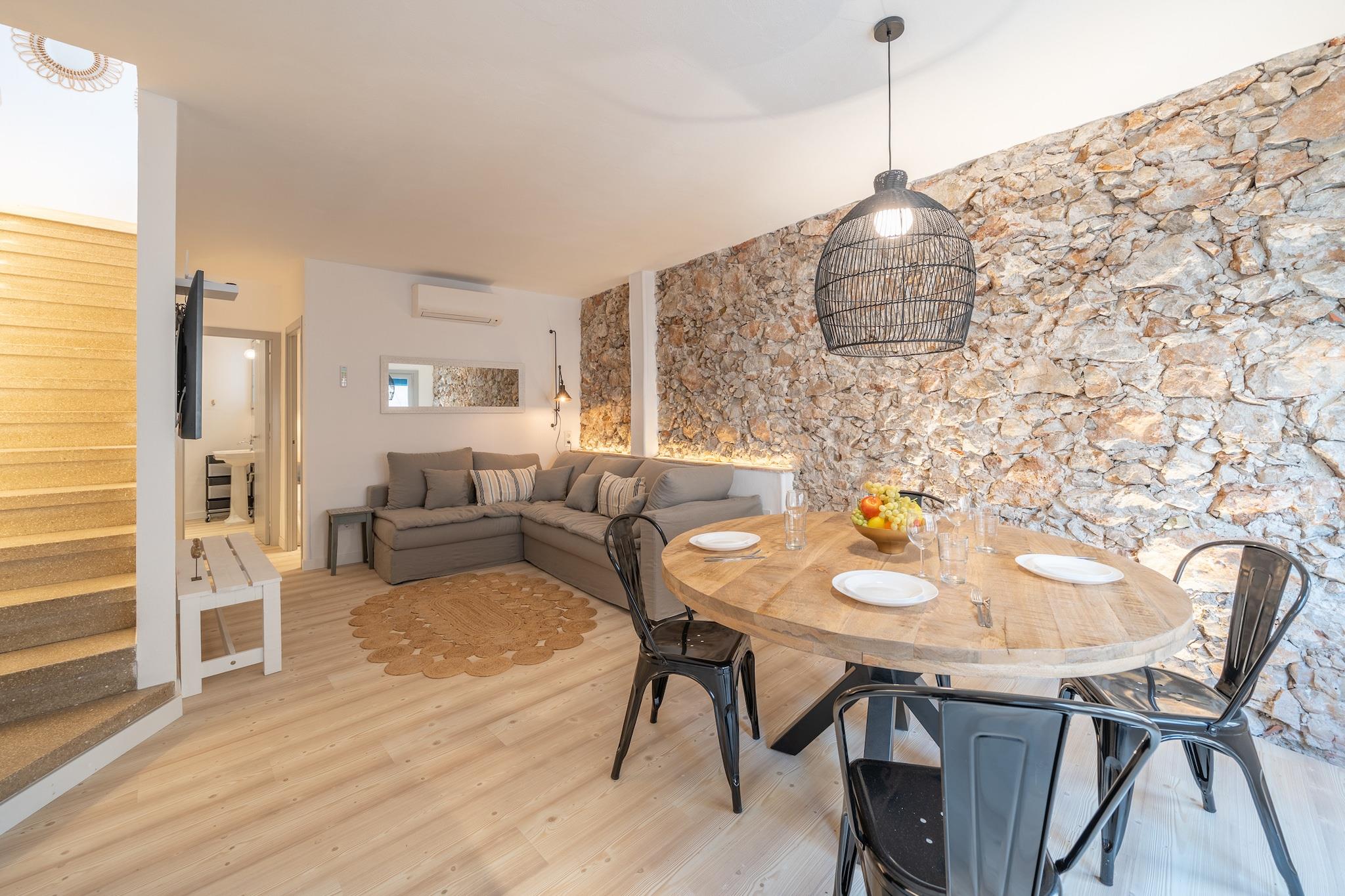 En rummelig og velindrettet lejlighed, dette 85 m² store feriehus i L'Escala er designet til op til fire gæster og har to komfortable soveværelser. Perfekt til par eller små familier, det tilbyder en privat swimmingpool og en møbleret terrasse - ideel til at slappe af udendørs. Lejligheden er udstyret med aircondition, en varmepumpe til komfort året rundt og væsentlige faciliteter, herunder en vaskemaskine, strygejern, Wi-Fi og en hårtørrer. Et tv giver ekstra indendørs underholdning. Beliggende i den naturskønne by L'Escala på Spaniens Costa Brava, tilbyder lejligheden nem adgang til både sand- og klippestrande samt charmerende kyststier. Gæsterne kan nyde den rige lokale kultur, udforske de nærliggende Empúries-ruiner eller besøge markeder, restauranter og caféer i byens centrum. Det omkringliggende område er ideelt til at gå, cykle og nyde middelhavsatmosfæren, alt inden for rækkevidde fra overnatningsstedet. Det åbne køkken er moderne og fuldt udstyret med en keramisk glasplade, køleskab, fryser, ovn, mikroovn og opvaskemaskine. For ekstra bekvemmelighed er en kaffemaskine, brødrister og komplette sæt tallerkener og bestik inkluderet, så gæsterne kan tilberede måltider komfortabelt. Uanset om du spiser indendørs eller ude på terrassen, understøtter rummet både afslapning og bekvemmelighed. Bemærk venligst: linned og håndklæder leveres ikke som standard og bør medbringes eller lejes ved reservation.