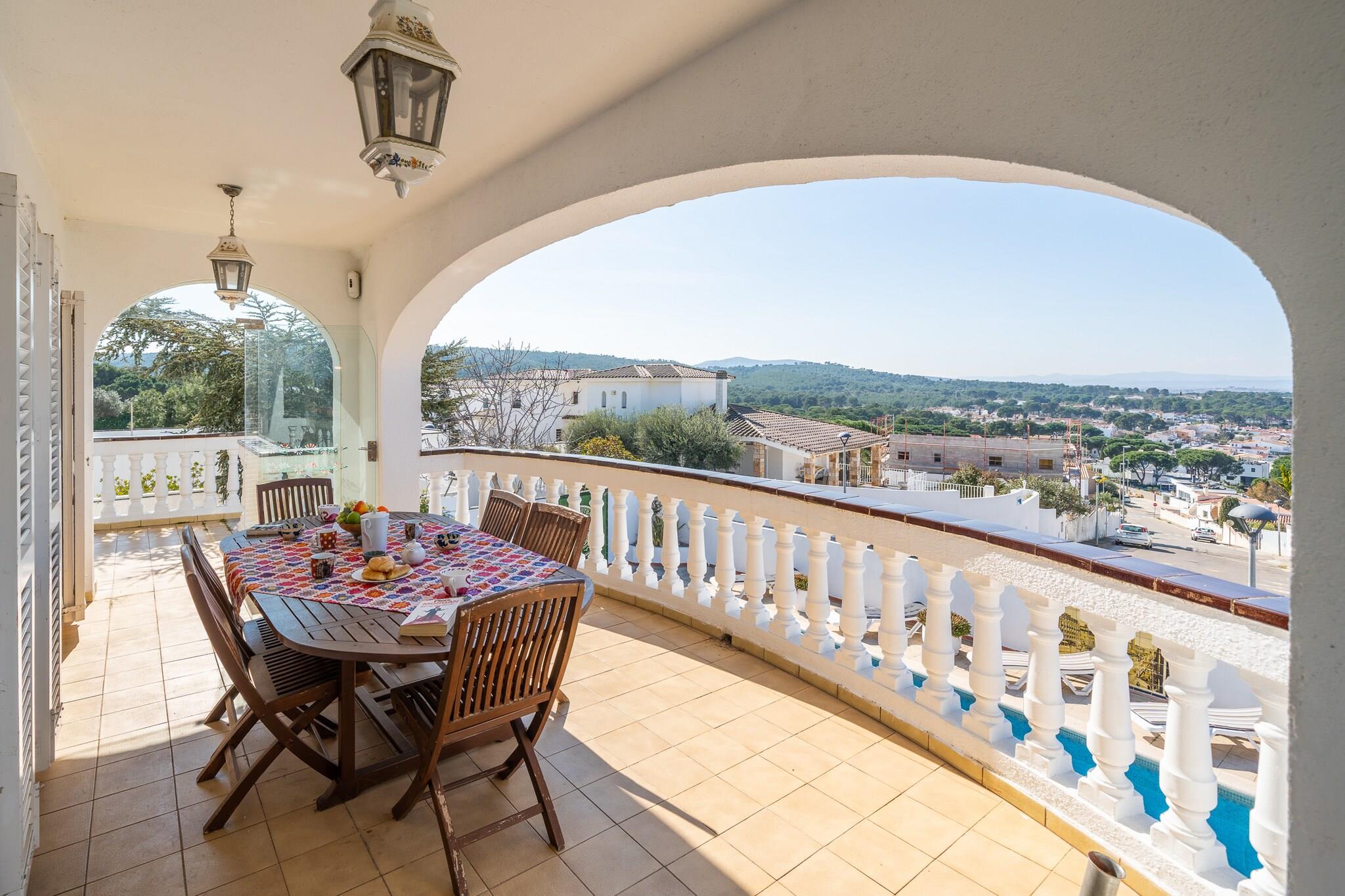 Dette raffinerede og rummelige feriehus på 298 m² i L’Escala tilbyder fire soveværelser og komfortabel plads til op til otte gæster. Villaen er ideel til større familier eller grupper og har en privat swimmingpool, en indhegnet have med havemøbler og flere terrasser, inklusive en balkon. Gæsterne vil sætte pris på faciliteter såsom aircondition, gasfyr til opvarmning, pejs, vaskemaskine, tørretumbler, satellit-tv og Wi-Fi. Udendørs parkering på ejendommen sikrer ekstra bekvemmelighed. Villaen ligger i et fredeligt kvarter i L’Escala og tilbyder hurtig adgang til områdets berømte sandstrande, de historiske ruiner i Empúries og en række udendørsaktiviteter. Fra cykling gennem fyrreskove til at udforske det livlige bycentrum med dets butikker og restauranter tilbyder beliggenheden både ro og bekvemmelighed. Beliggenheden mellem natur og kystlinje gør den til en fremragende base for en afslappende eller aktiv ferie. Villaens separate køkken er designet til fuld selvforplejning og er udstyret med gaskomfur, køleskab, fryser, ovn, mikrobølgeovn og opvaskemaskine. Gæsterne finder også service, køkkenredskaber, kaffemaskine, brødrister, elkedel og juicer – perfekt til at tilberede alt fra morgenmad til en komplet familiemiddag. Bemærk venligst: Sengelinned og håndklæder er ikke inkluderet som standard og kan medbringes eller lejes ved booking. (Bemærk: Den fælles swimmingpool er udelukkende tilgængelig i juli og august.)