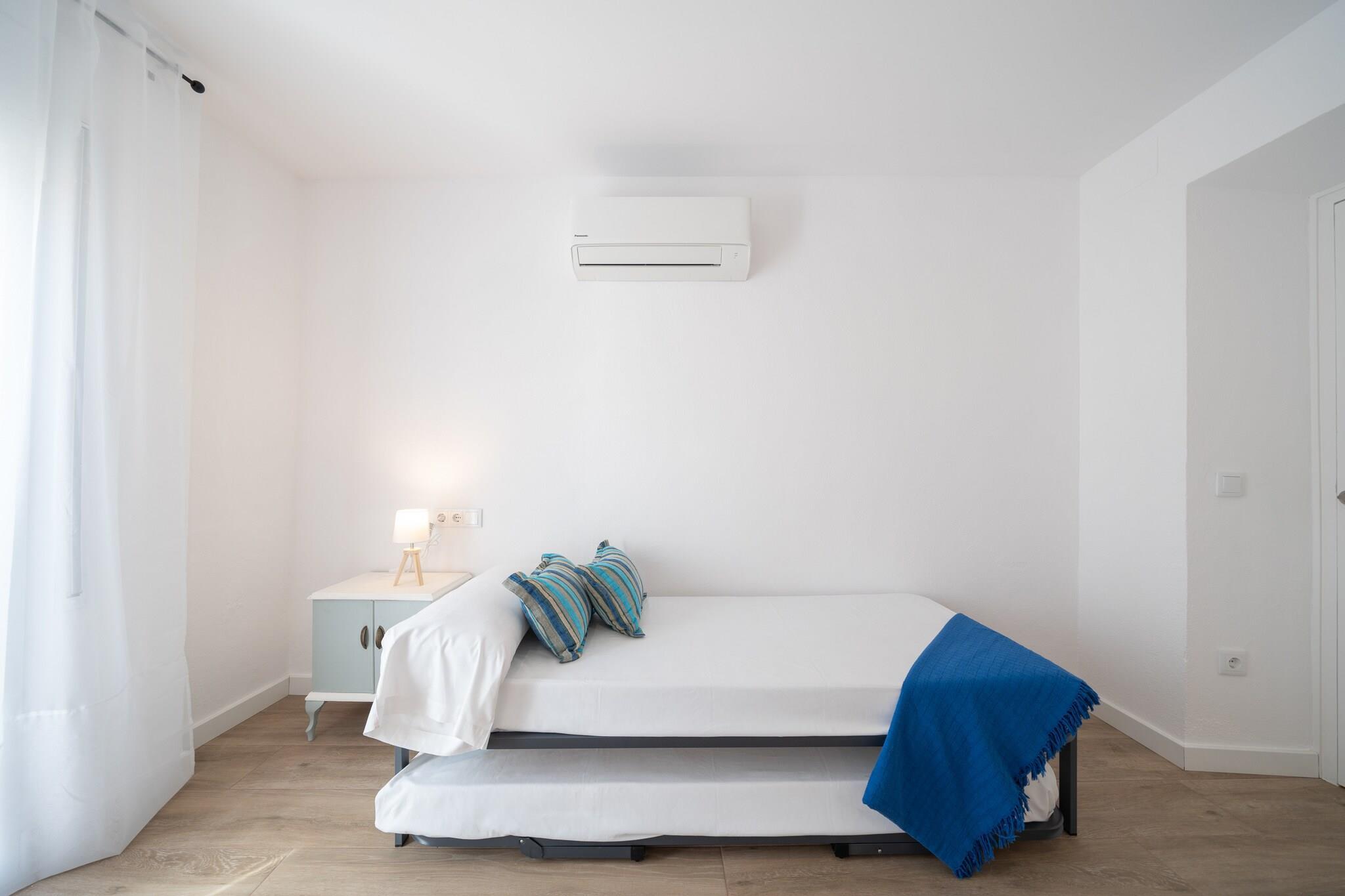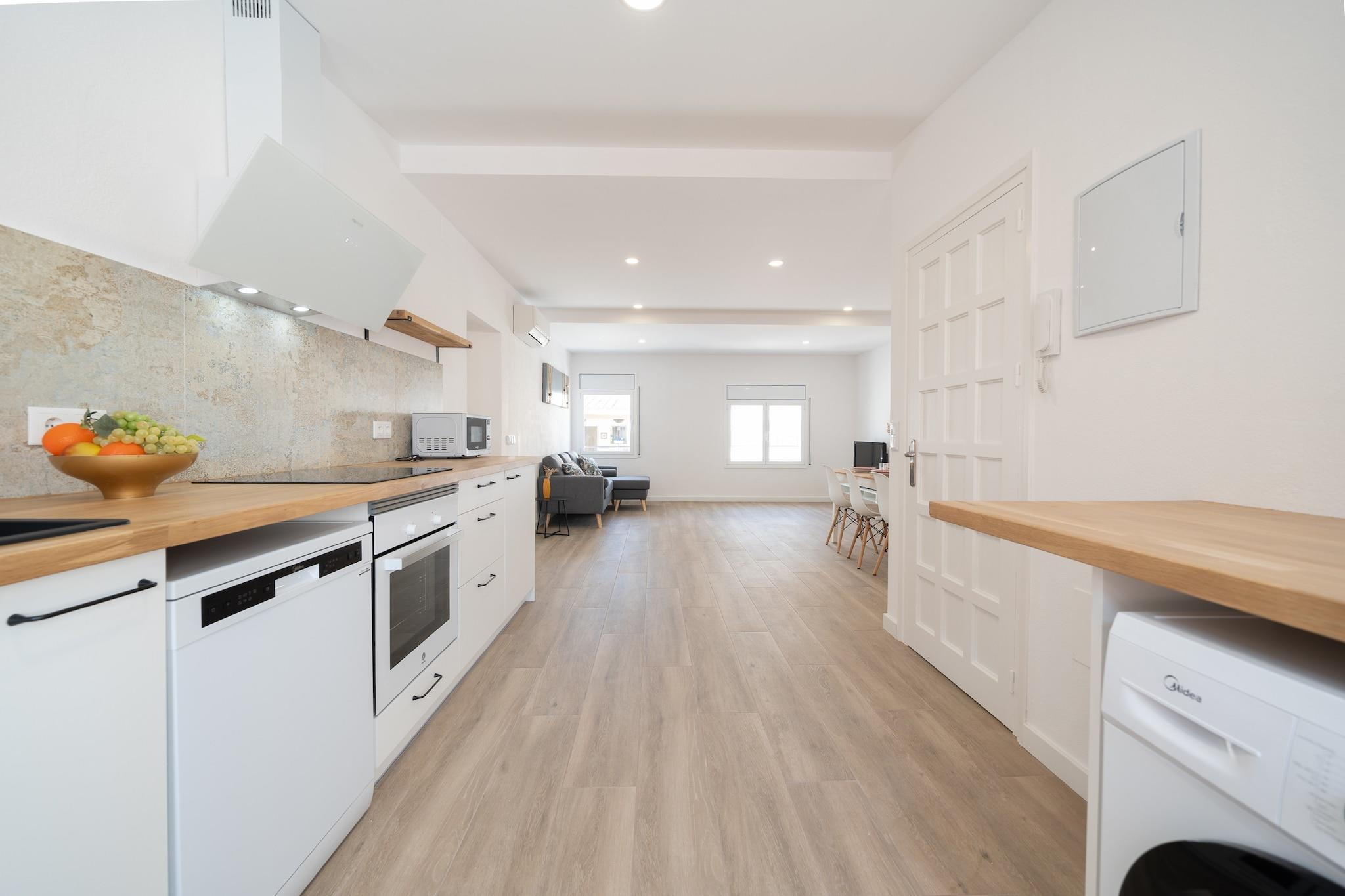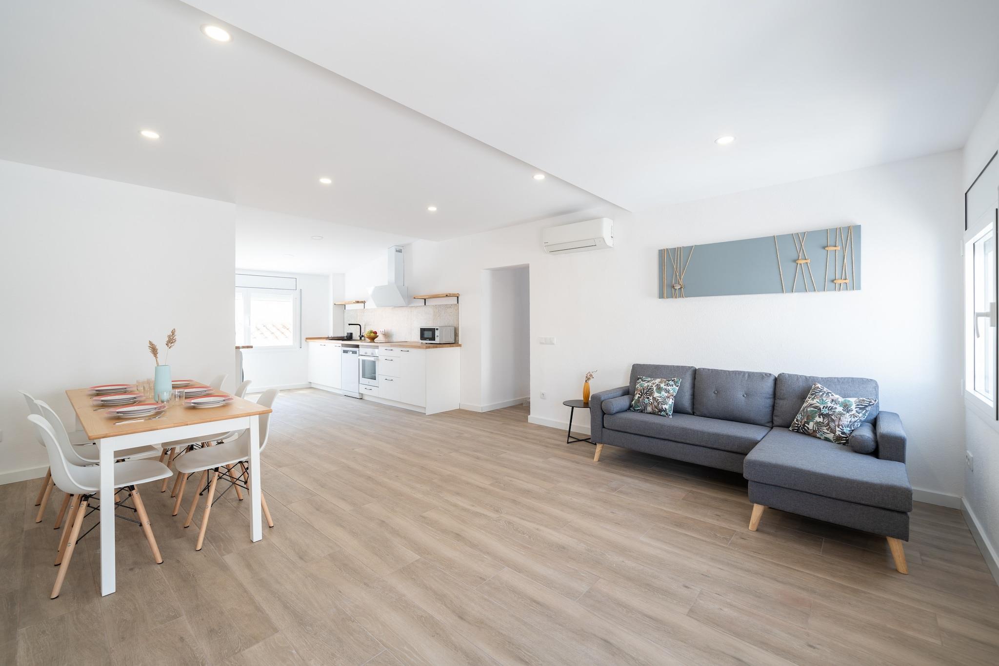 Dette kæledyrsvenlige feriehus er en rummelig og veludstyret lejlighed beliggende i hjertet af L'Escala og har plads til op til seks gæster fordelt på tre soveværelser med aircondition. Indretningen omfatter et dobbeltværelse og to værelser med to enkeltsenge, alle møbleret med kvalitetssengetøj og dyner. Lejligheden er ideel til familier eller små grupper og inkluderer en privat tagterrasse og parkering på stedet. Et lille kæledyr er tilladt mod et gebyr pr. nat, og yderligere tjenester som barnesenge, højstole eller håndklæder er tilgængelige efter anmodning. Lejligheden ligger kun 4 minutters gang fra både Las Barcas og La Creu strandene, med lokale restauranter, supermarkeder og butikker inden for rækkevidde. Den tilbyder en bekvem base for at udforske naturlige og kulturelle steder såsom Montgrí Naturpark (2 km) og de historiske ruiner af Empúries (1,8 km). Dens centrale beliggenhed giver gæsterne mulighed for at nyde både den pulserende kystby og de fredelige naturlandskaber uden behov for lange rejser. Indenfor er det åbne køkken fuldt udstyret med induktionskogeplade, ovn, opvaskemaskine, mikrobølgeovn og kaffemaskine - ideelt til at tilberede måltider med lethed. Lejligheden har to badeværelser med brusere, vaskemaskine, hårtørrer og strygeudstyr for ekstra komfort. Der er Wi-Fi og tv i opholdsstuen. Sengelinned er inkluderet i rengøringsgebyret, mens håndklæder og køkkenlinned kan bestilles som ekstraudstyr. (Bemærk: Den fælles swimmingpool er udelukkende tilgængelig i juli og august.)