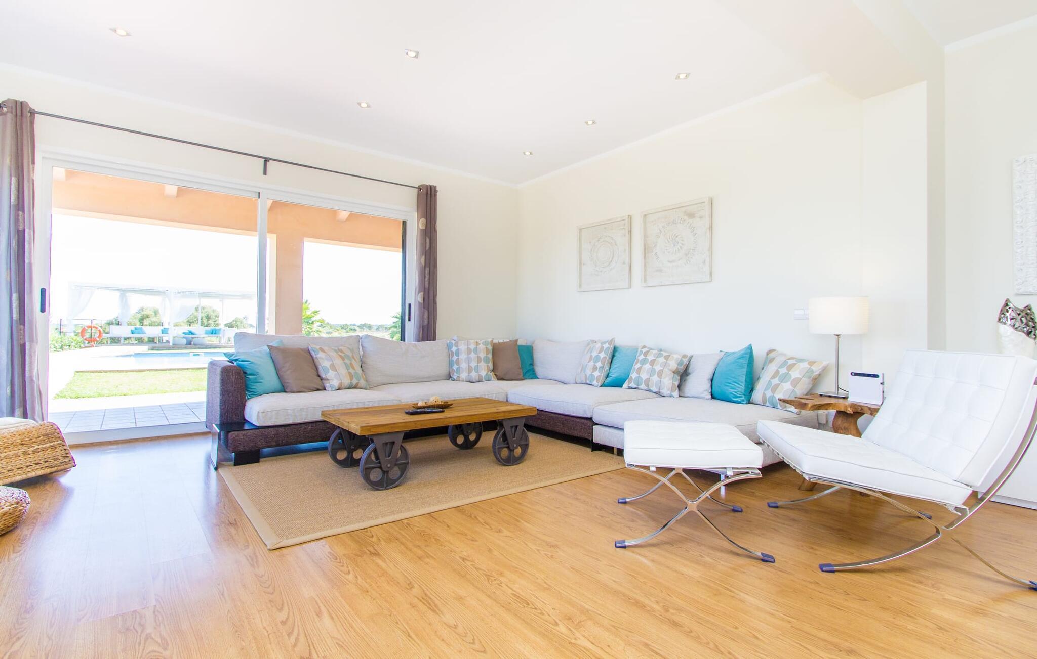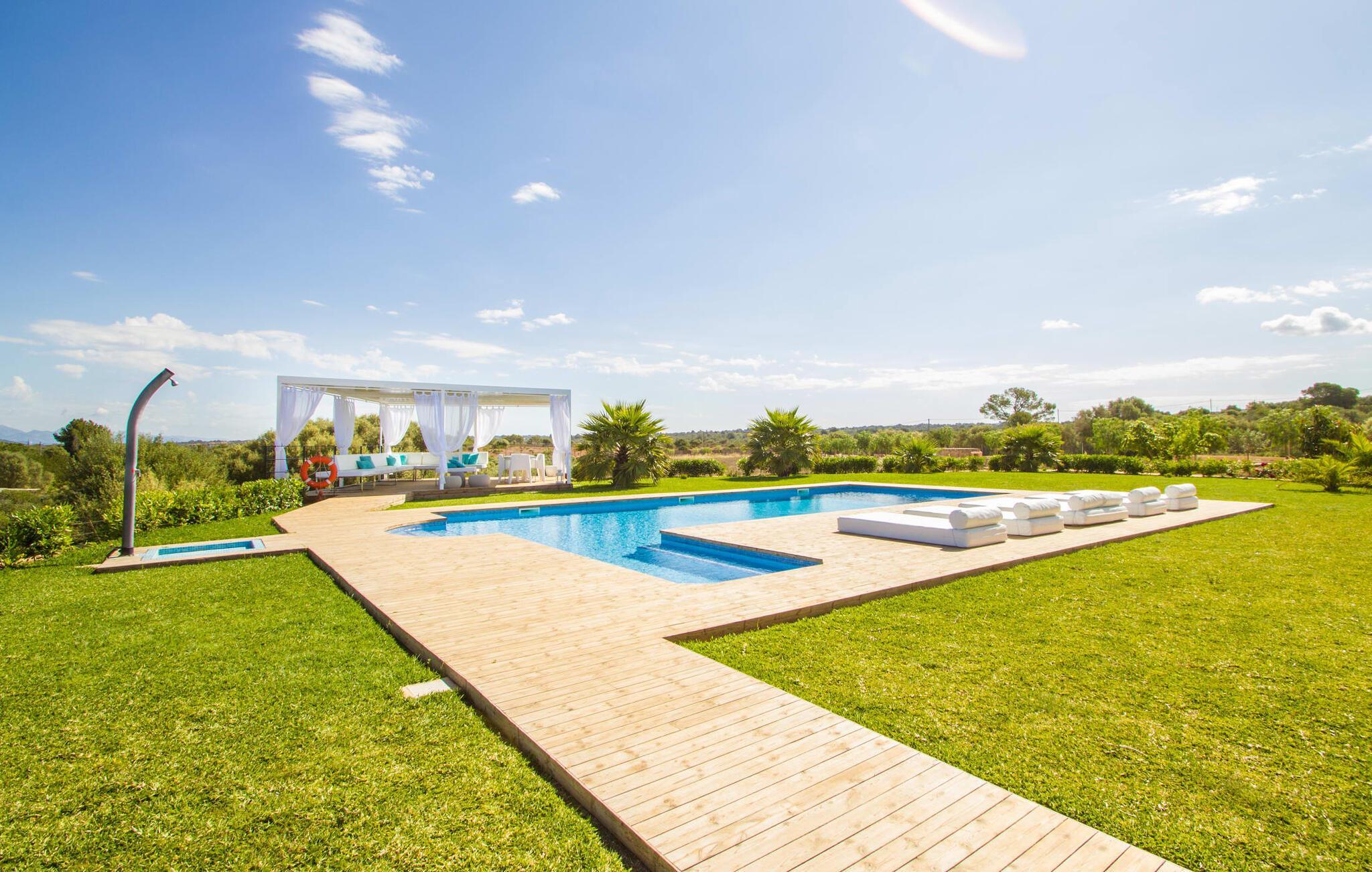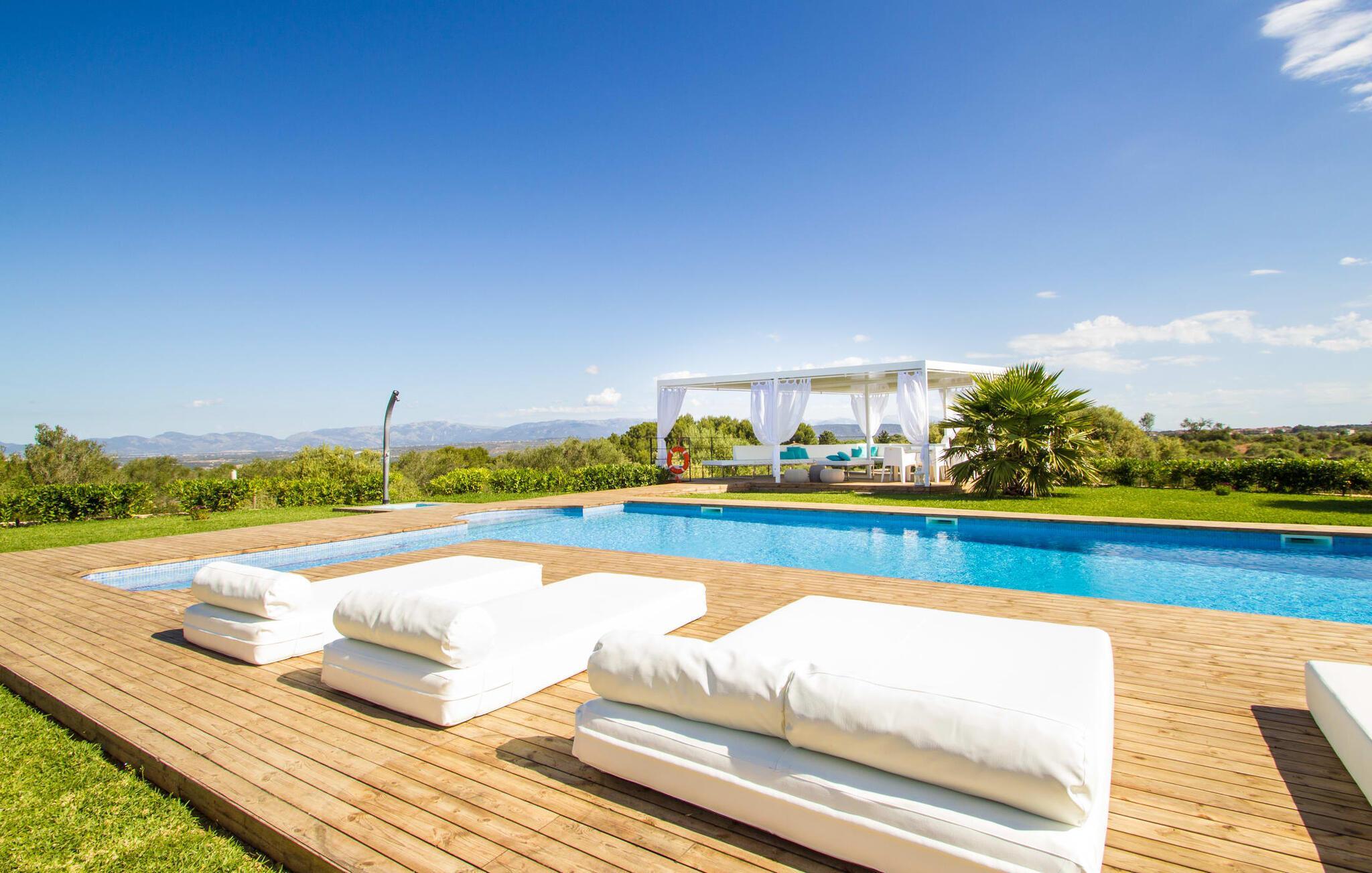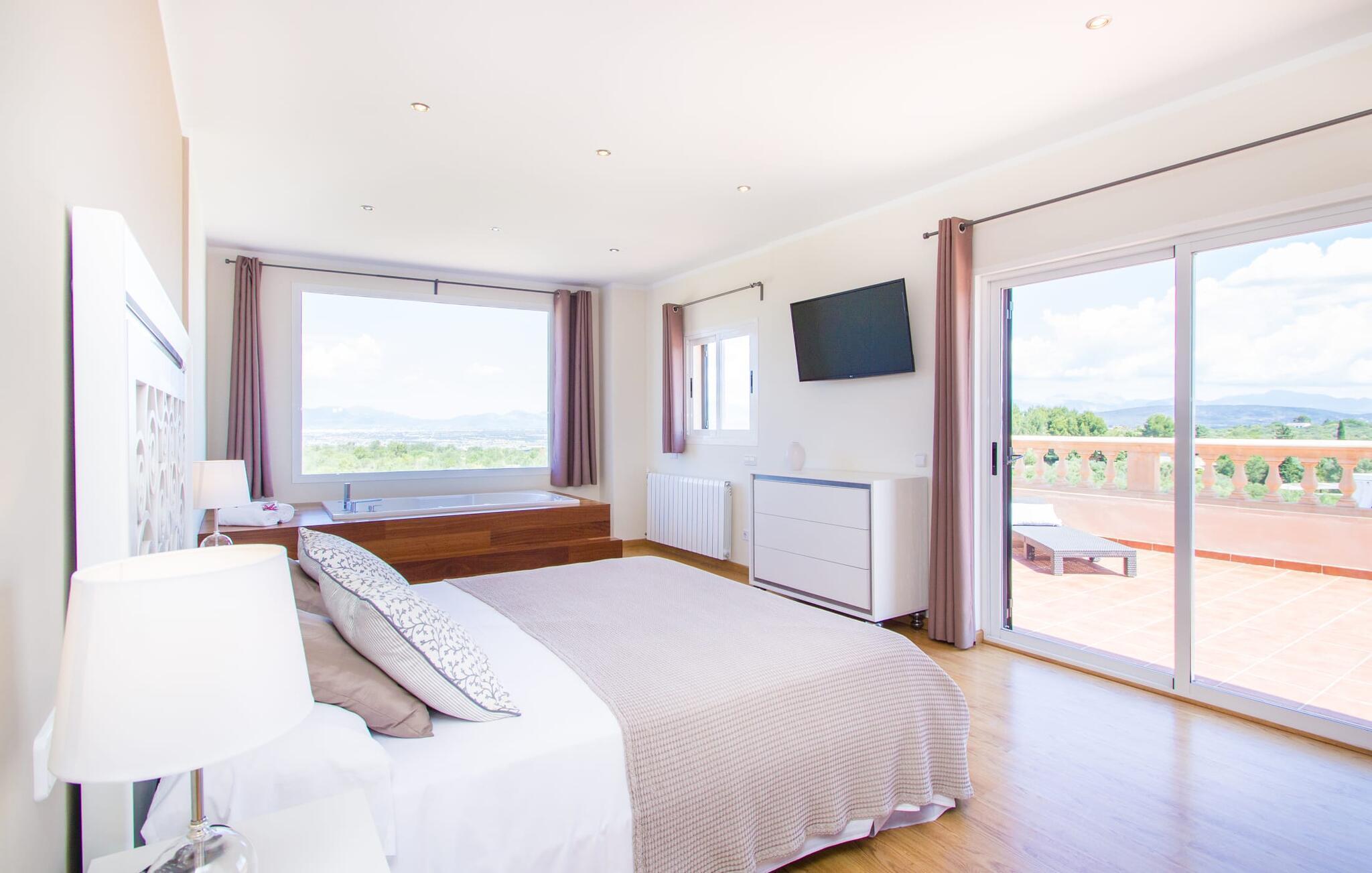 Den elegante og luksuriøse designervilla "La Tierra" ligger i landlige omgivelser med vid udsigt over sletterne til bjergene, perfekt til at opleve Mallorcas fortryllende hvide nætter. Dette er et Fincallorca feriehus. Dans barfodet over en gangbro til en stor pool, nyd cocktails i udendørsloungen eller forkæl dig selv med en beroligende boble-hydromassage i boblebadet. Villaen har en tagterrasse, der tilbyder rolige steder at slappe af under parasoller eller tilberede snacks på en mobil elektrisk grill. Deltag i aktiviteter som basketball for at forblive aktiv. Parkeringspladser og to garager er tilgængelige på stedet. Villaen har unik arkitektur, store vinduer og et moderne køkken udstyret med side-by-side køleskab og et langt spisebord, perfekt til hyggelige brunch. Med stilfulde værelser og eget badeværelse med regnbruser er denne villa et ideelt tilflugtssted for bryllupsrejser, komplet med et indbygget insektnetsystem til fredelige nætter. Villaen “La Tierra” ligger kun 2 km fra landsbyen Sant Jordi med sine indkøbsmuligheder og kun 13 km fra lufthavnen. Efter blot 20 km når du portene til Palma, som er ideel for dem, der elsker kontrasterne i naturen og komfort med bykultur, shopping, natteliv og adgang til fremragende strande. Bemærk venligst, at denne ejendom ikke accepterer ungdomsgrupper eller polterabender. En ungdomsgruppe på denne ejendom består af personer på 26 år eller derunder. Book ikke denne ejendom, hvis du er en ungdomsgruppe eller polterabend, da din reservation vil blive afvist, når den er booket, hvilket også kan være tilfældet ved ankomst til ejendommen eller under dit ophold, og du vil ikke modtage en refusion