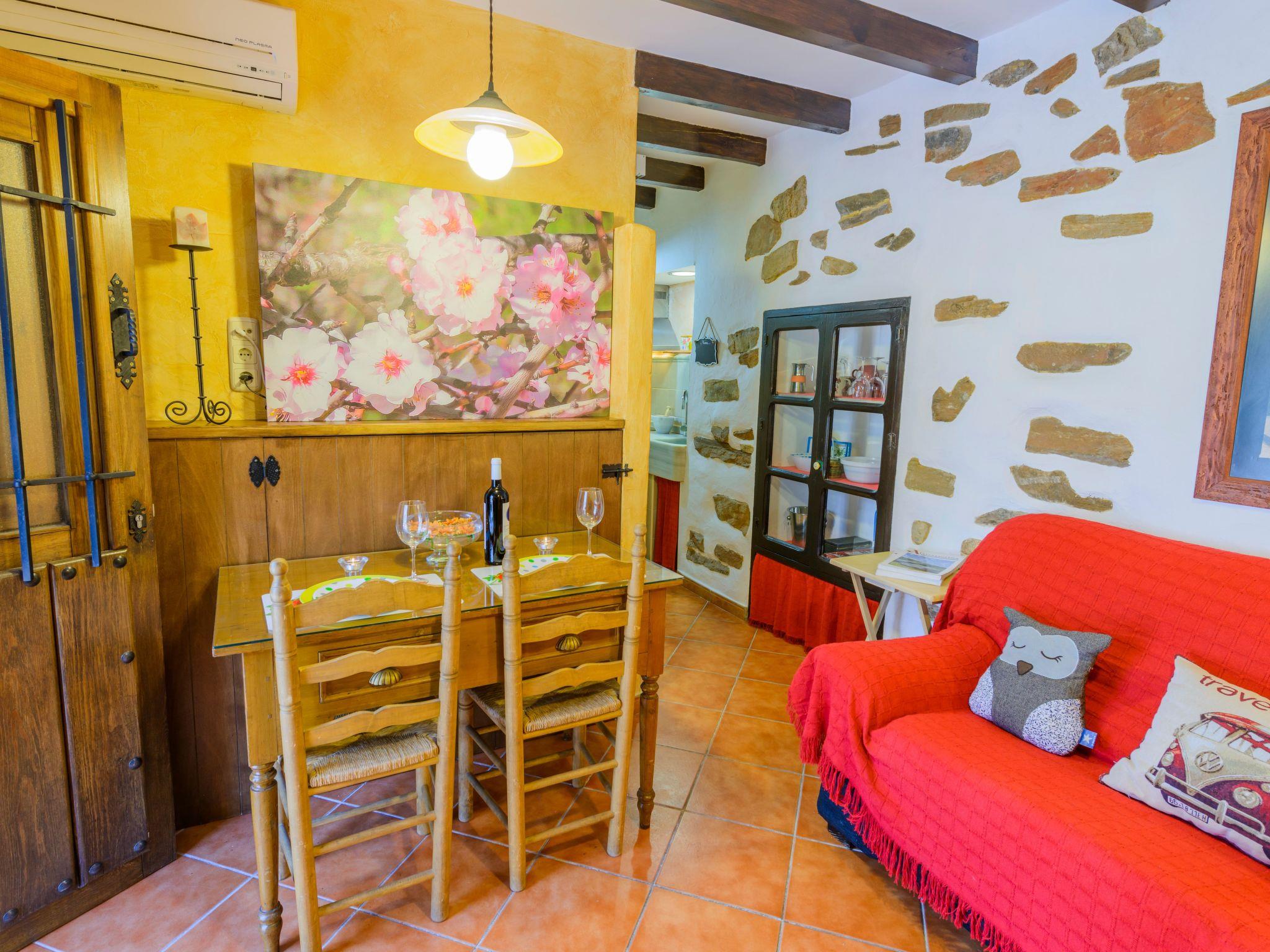 The small house has a living area of about 35 m² and has a bedroom with double bed, a small but fully equipped kitchen next to the living room with fireplace and TV/DVD and a bathroom with whirlpool bath. The house is beautifully decorated and has heating and air conditioning. There is also a TV in the bedroom.