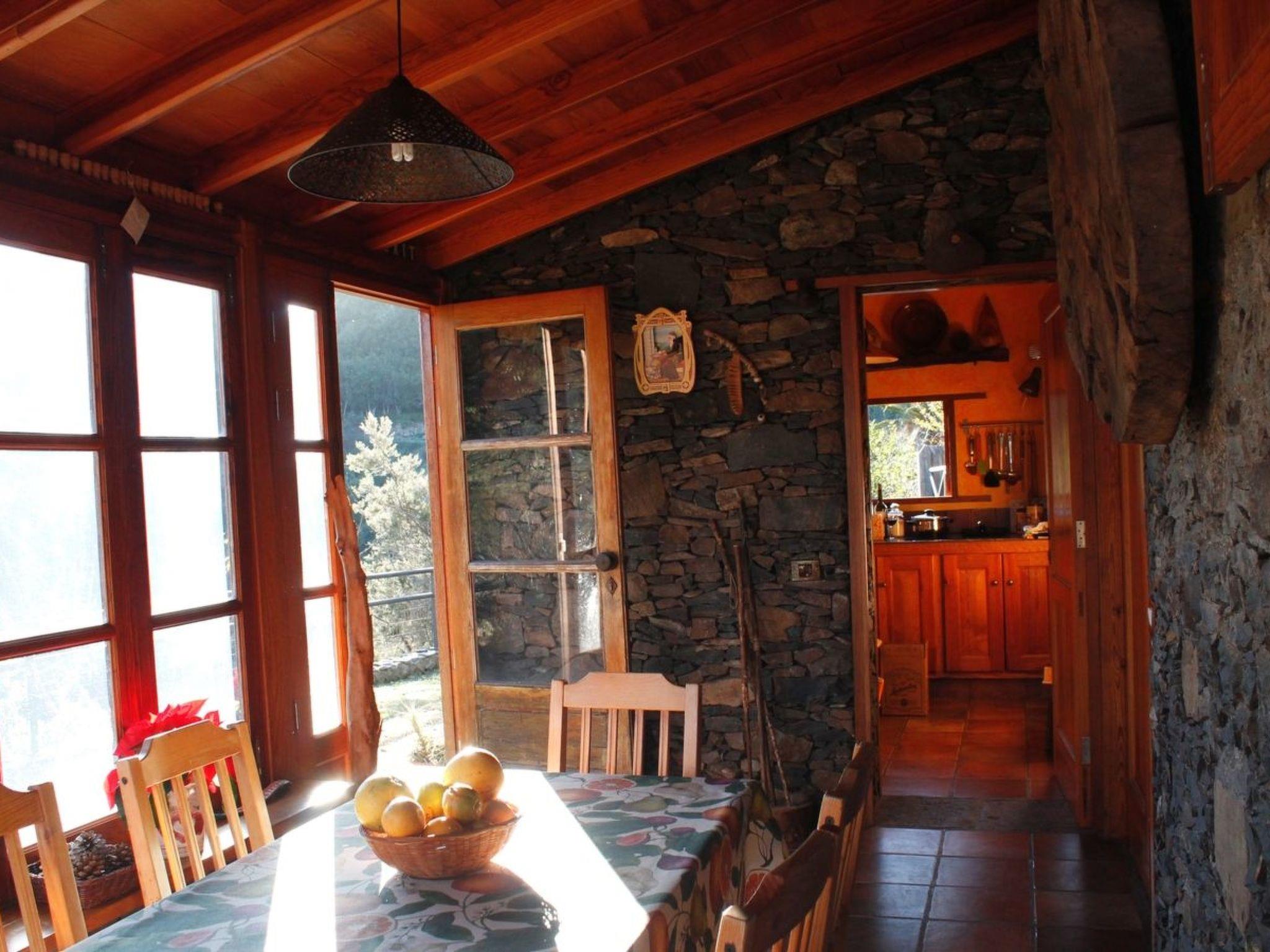 It has 2 bedrooms (master bedroom with a double bed in the attic) and the other with 2 single beds and a cot for small children, a bathroom with shower, kitchen (stove, refrigerator, microwave, fondue, blender, juicer, coffee maker, etc.), a living room with satellite TV, flat screen TV, Wi-Fi, stereo, CD's for guests, a fireplace, a sofa for 3 people and a hammock, a covered veranda with table, chairs and rocking chair.