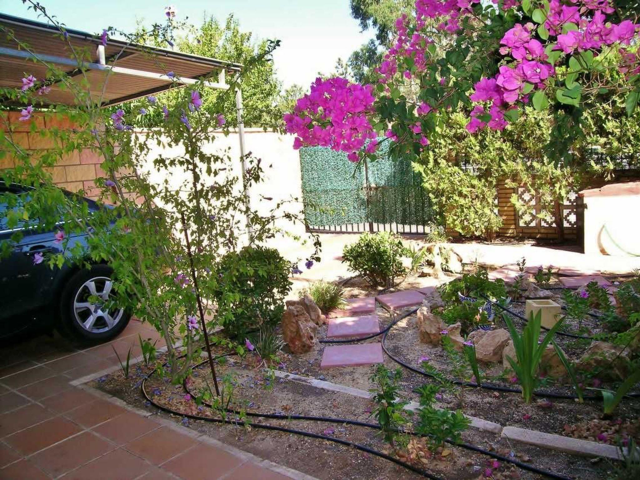 Fully fenced garden, with privacy and away from prying eyes.parking for several cars, and two areas of porch and pergola where you can enjoy family lunches and dinners, and garden loungers where you can sunbathe.