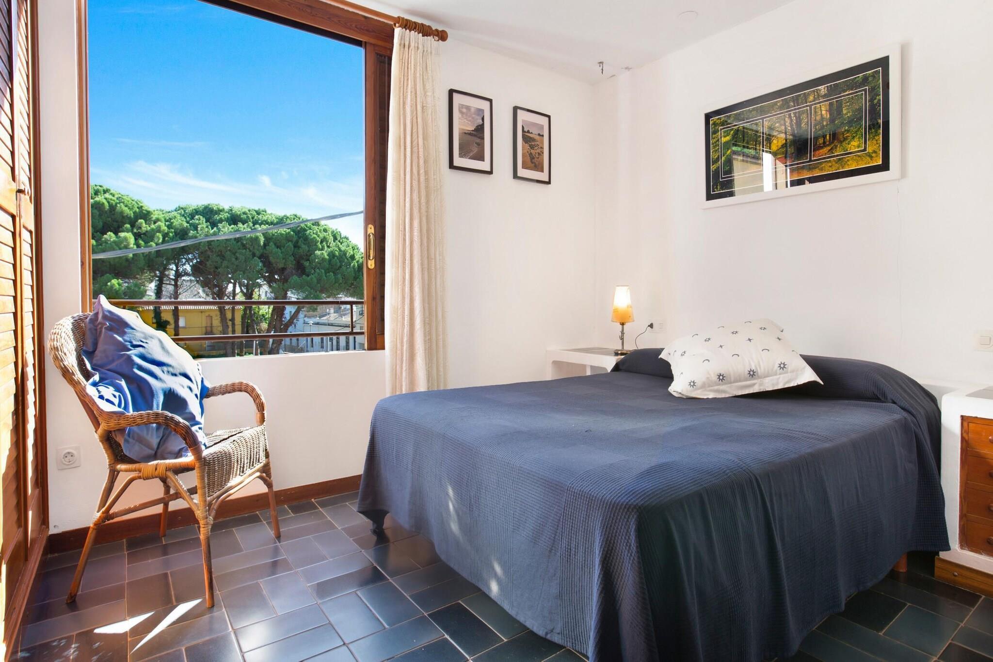 Denne charmerende villa er perfekt beliggende kun 180 meter fra den smukke Llafranc strand, og tilbyder en rolig familieferie på Costa Brava. Ejendommen er fordelt på tre etager og kan komfortabelt rumme 6 til 7 gæster. I stueetagen finder du en hyggelig stue med sofaer, en have og adgang til den fælles pool, ideel til at slappe af efter en dag på stranden. Villaen tilbyder også gratis Wi-Fi og parkering for ekstra bekvemmelighed. Kæledyr er tilladt efter anmodning mod et tillæg, men ejendommen er ikke tilgængelig for ungdomsgrupper under 35 år. Villaen er en del af en fredelig udvikling omgivet af en fyrreskov, der giver en fredfyldt atmosfære kun få øjeblikke fra stranden. Nærheden til Llafrancs fantastiske kystlinje giver gæsterne mulighed for nemt at nyde det krystalklare vand og den smukke promenade i skyggen af fyrretræer. Den nærliggende havn og forskellige lokale faciliteter, herunder butikker, caféer og restauranter, gør det til et ideelt sted for familier, der ønsker at udforske området, mens de nyder et afslappende og roligt ophold. Indvendigt er villaen fuldt udstyret til et behageligt ophold. Køkkenet er restaureret og indeholder moderne apparater såsom gaskomfur, mikroovn, brødrister, elektrisk ovn, opvaskemaskine og tv. Der er et vaskerum for ekstra bekvemmelighed. Soveværelserne inkluderer to med køjesenge, hvilket gør det til et godt valg for familier med børn, og et soveværelse med en-suite med dobbeltseng og badekar. Den øverste etage byder også på en stue med udgang til en møbleret terrasse, perfekt til at nyde morgenmaden, mens du nyder morgensolen.