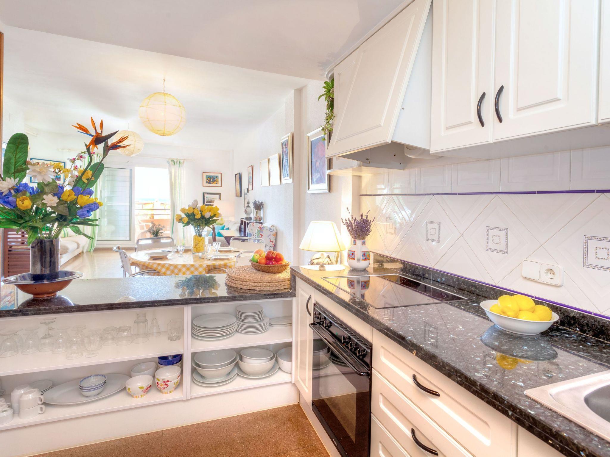 "Maritim II", 4-room apartment 105 m2, on the upper ground floor. Comfortable and modern furnishings: living/dining room 35 m2 with satellite TV, digital TV and flat screen. Exit to the terrace. 2 rooms, each room with 1 french bed (140 cm). 1 room with 1 bed (110 cm). Exit to the terrace. Open kitchen (oven, dishwasher, 4 ceramic glass hob hotplates, microwave, freezer) with hatch. Bath/bidet/WC, shower/bidet/WC. Air-conditioning. Terrace 5 m2. Terrace furniture. Very beautiful view of the sea and the port. Facilities: washing machine, iron. Please note: TV only ES, FR. HUTG011740