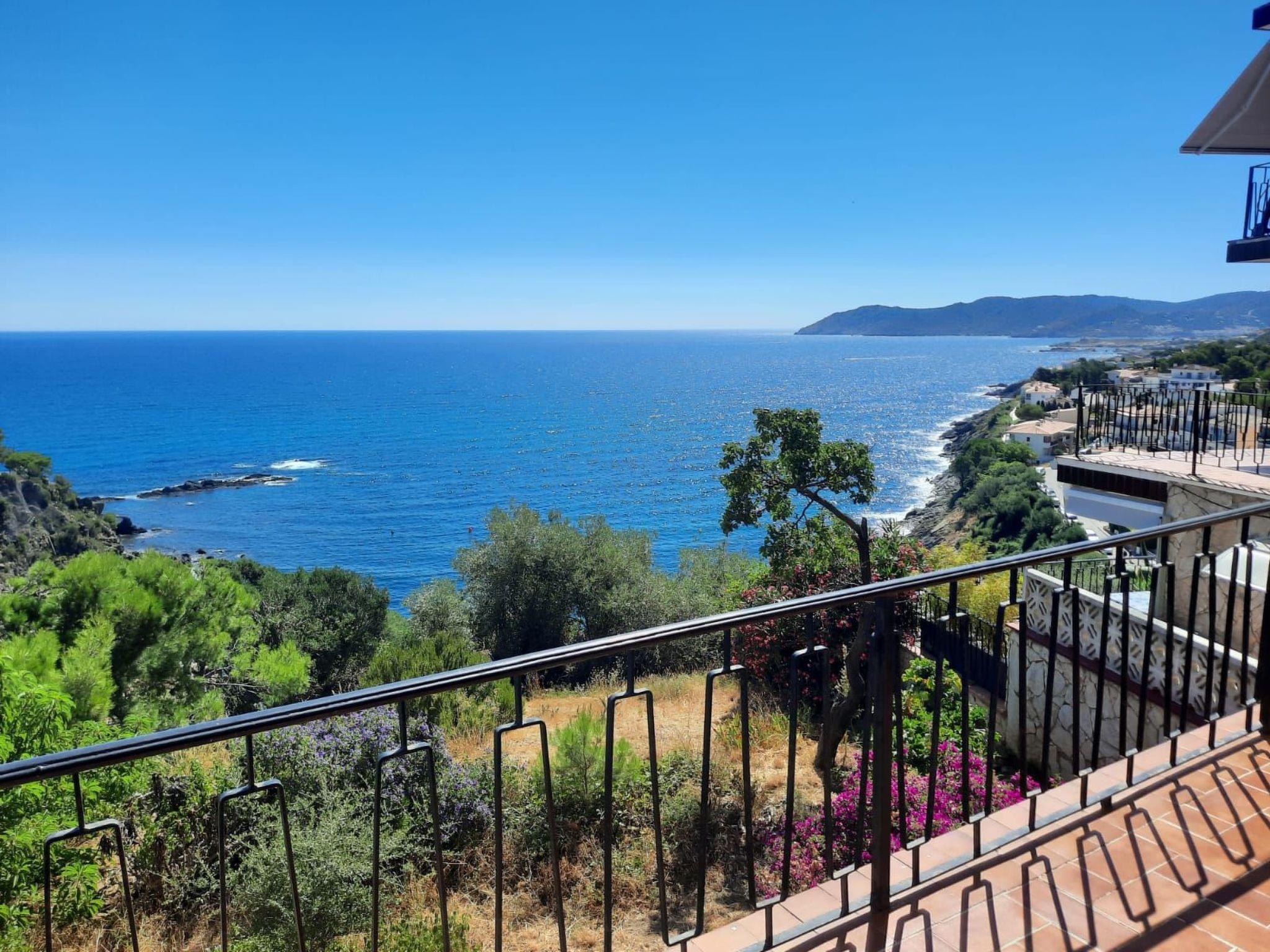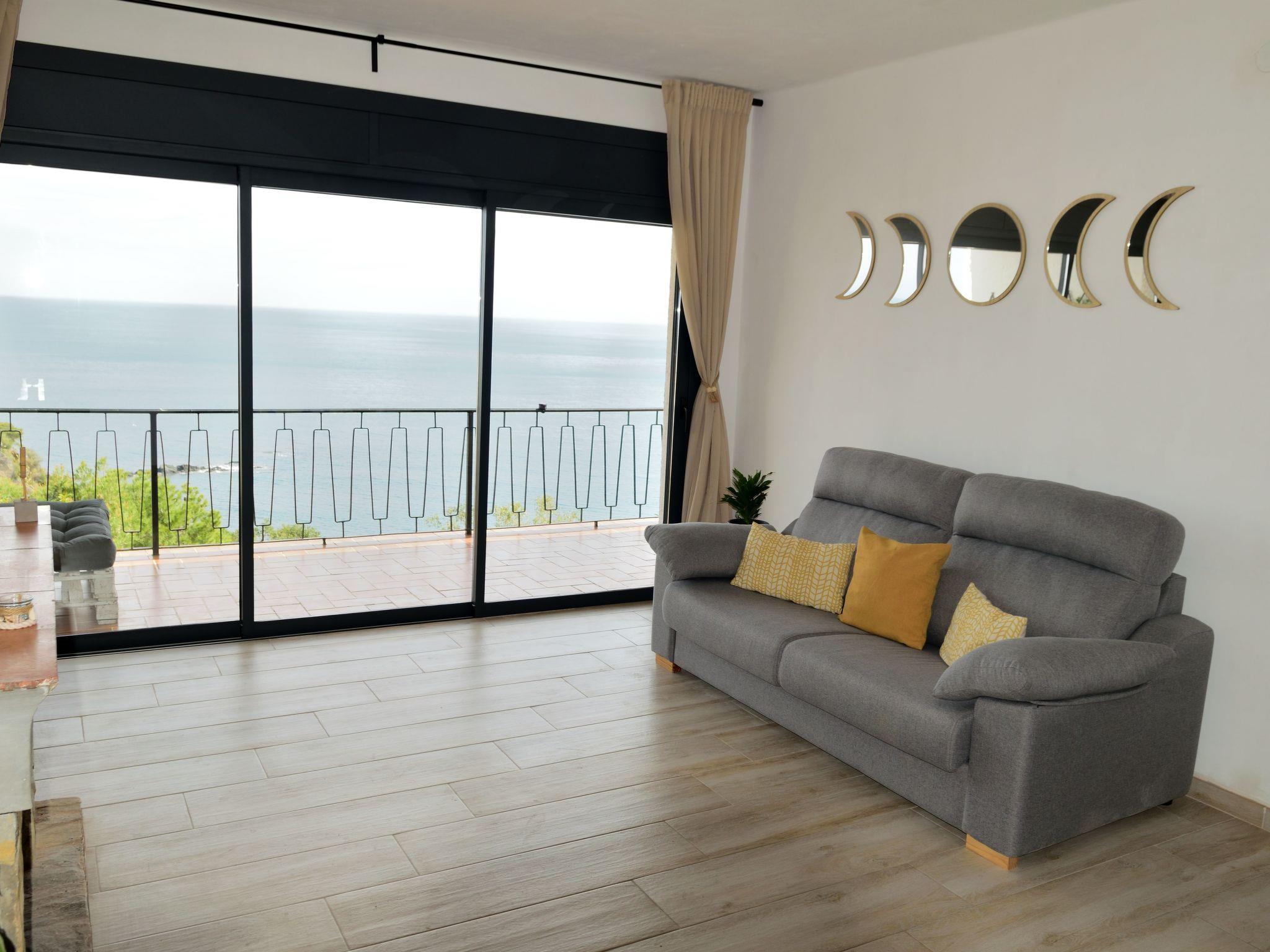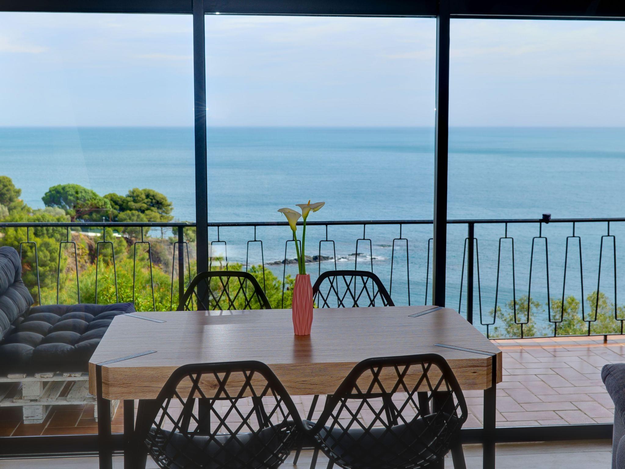 large terrace fenced with a railing and with privileged views of the mediterranean sea, has an electric awning and has outdoor tables and chairs.