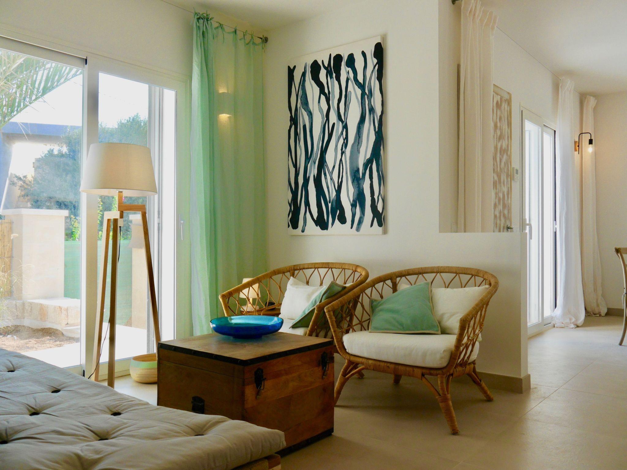 Casa Poggibonsi al Mar - only a few steps away from the beautiful beach of Cala Llombards. Newly built in a privileged location of Cala Llombards - a wonderful place for a beach holiday in any season. Ideally equipped with everything you need for a pleasant stay, the two-storey house offers enough space for four people in two bedrooms. The air-conditioned (hot/cold) rooms are elegantly and thoughtfully furnished. Additionally in the living room: marble infrared heating.