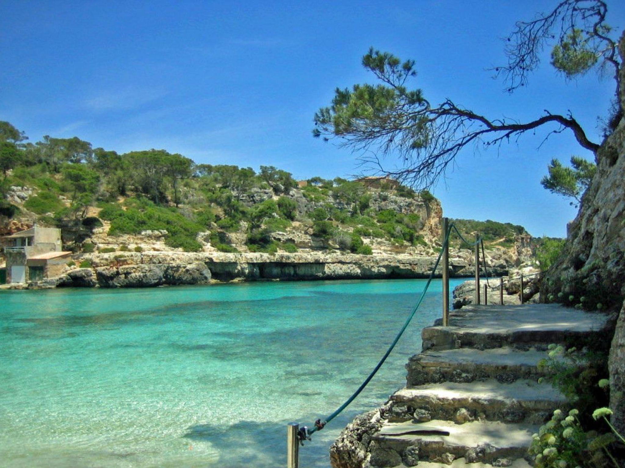 The special thing about Casa Poggibonsi al Mar is not just the wonderful view of the sea. About 20 metres from the entrance to the house there is a staircase with 80 steps leading to a bathing area (rocky plateau) in Cala Llombards. There are bathing ladders there during the bathing season. The fine sandy beach of Cala Llombards, where there is a chiringito (bar) in the season, can be reached after a 3 - 5 minute walk. Below, in Cala Llombards, sunbeds and parasols with a small private safe are available for hire. The beach bar is known for very good food, also open for dinner on the beach....