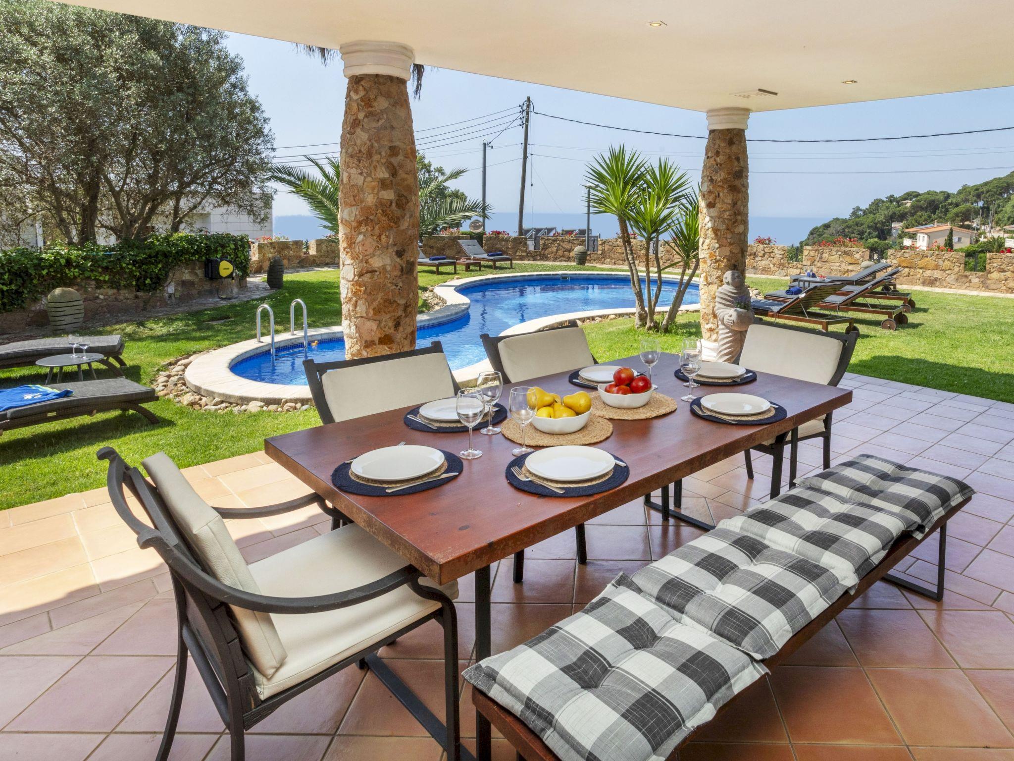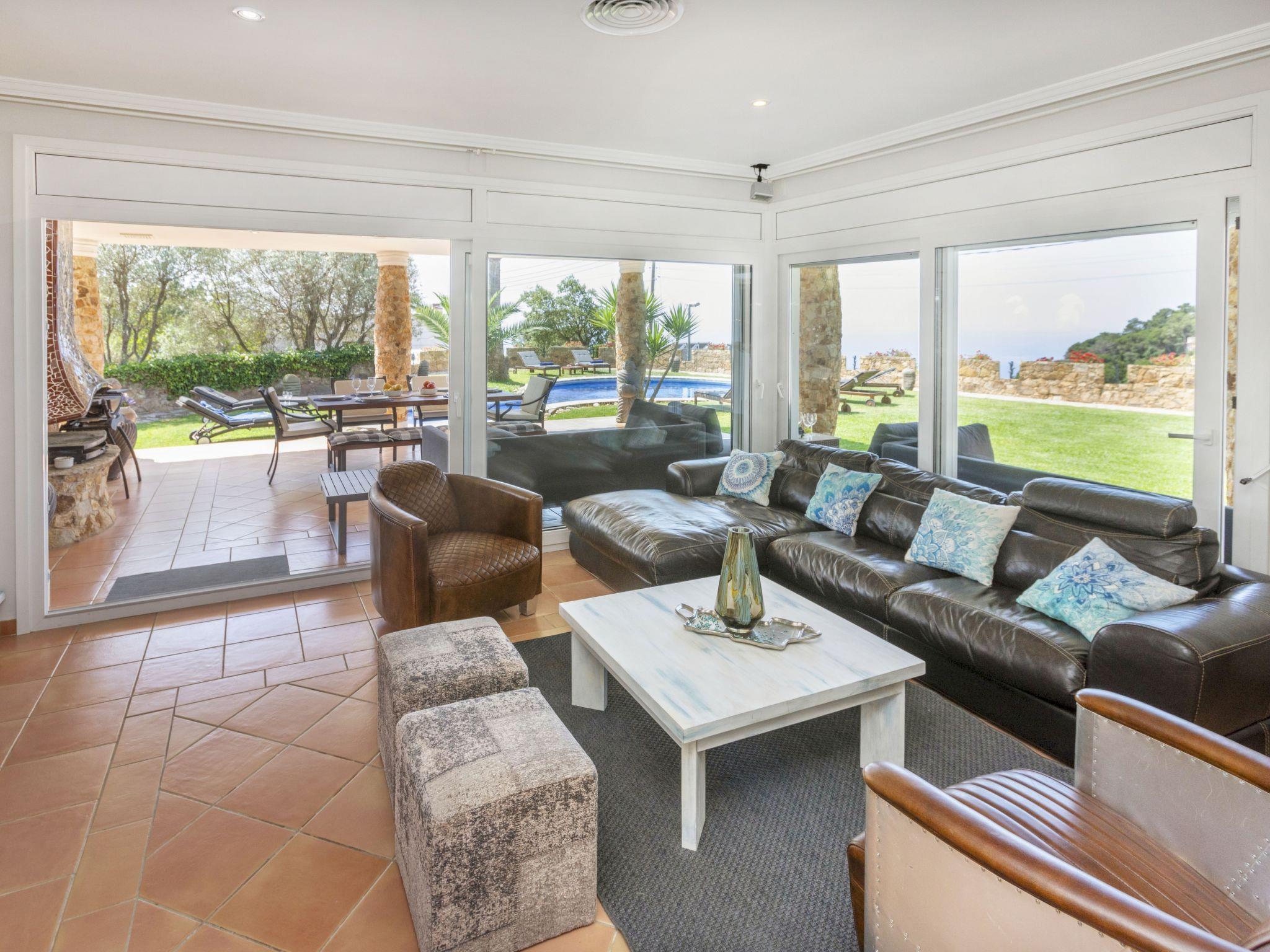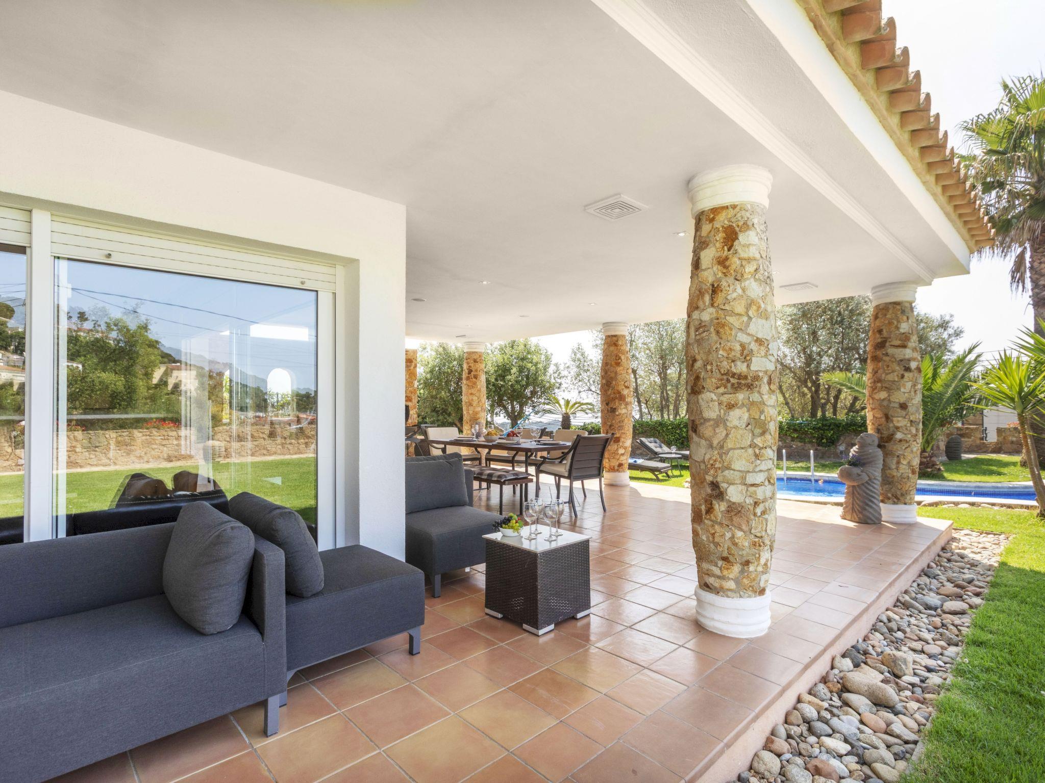 "Guaita", 5-room house 150 m2. Spacious and bright, very modern and cosy furnishings: living/dining room with open-hearth fireplace (only for decoration), dining table, digital TV, international TV channels, flat screen and air conditioning. Exit to the patio, to the swimming pool. 1 double bedroom with 1 double sofabed (140 cm, length 190 cm), 1 french bed (160 cm, length 190 cm), digital TV and air conditioning. 1 children's room with 2 beds (90 cm, length 190 cm), digital TV and air conditioning. 1 double bedroom with 1 french bed (150 cm, length 190 cm), digital TV and air conditioning. 1 double bedroom with 1 sofabed (80 cm, length 180 cm), 1 french bed (160 cm, length 190 cm), shower/bidet/WC, digital TV and air conditioning. Large kitchen (oven, dishwasher, 4 ceramic glass hob hotplates, toaster, kettle, microwave, freezer, electric coffee machine). Exit to the patio, to the swimming pool. Bath/WC. Porch. Terrace furniture, barbecue, deck chairs, covered balcony. Panoramic view of the sea. Facilities: washing machine, iron, children's high chair, baby cot for up to 2 year olds. Internet (WiFi, free). Maximum 1 pet/ dog allowed. HUTG-011355-52 // Reg. Nr.: ESFCTU00001701300034994900000000000000HUTG-011355-522