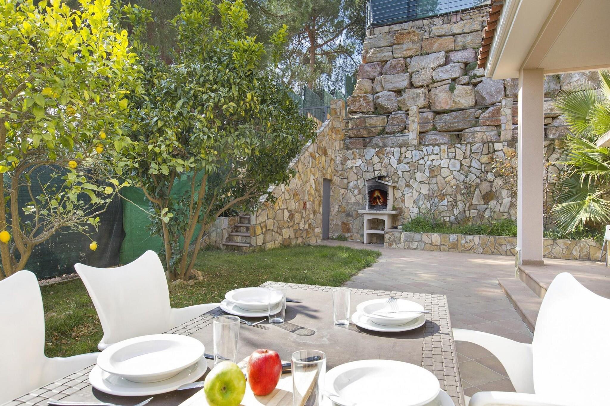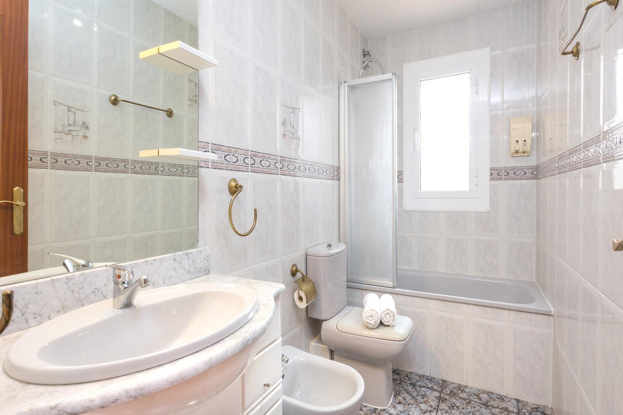 Denne rummelige villa tilbyder et perfekt tilflugtssted for store familier eller grupper med plads til op til 13 gæster fordelt på seks komfortable soveværelser. Villaen har to opholds-/spiseområder, hver med et tv og en hyggelig pejs, der giver rigelig plads til afslapning. De fuldt udstyrede køkkener på begge etager har moderne apparater, herunder en opvaskemaskine, mikroovn, gaskomfur, vaskemaskine og kaffemaskine. Villaen ligger i et fredeligt boligområde kun 3,5 km fra den smukke Canyelles-strand og 4 km fra det livlige centrum af Lloret de Mar. Gæsterne kan nyde en betagende udsigt over bjergene og delvis havudsigt fra den store overdækkede terrasse, perfekt til udendørs måltider eller afslapning med familien. Det omkringliggende område er hjemsted for charmerende byer som Tossa de Mar, der byder på masser af lokale attraktioner, butikker og restauranter. Ejendommen har også et grillområde, gynger til børn og en privat pool, hvilket gør det til et ideelt sted for både afslapning og underholdning. Villaens udendørsareal strækker sig over 800m2, komplet med en privat pool (9,5x4,5m) og to dejlige terrasser, der giver gæsterne mulighed for at slikke solen og nyde den omkringliggende udsigt. Familier kan samles i de rummelige spiseområder, både indendørs og udendørs, mens børn kan nyde gyngerne. Ejendommen tilbyder også gratis WiFi og parkering. Kæledyr er tilladt på forespørgsel, og med særlige arrangementer til gæster, kan nyde et fredeligt ophold.