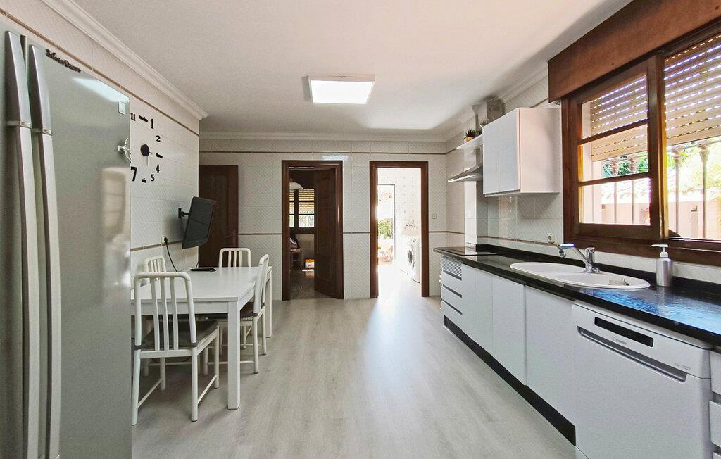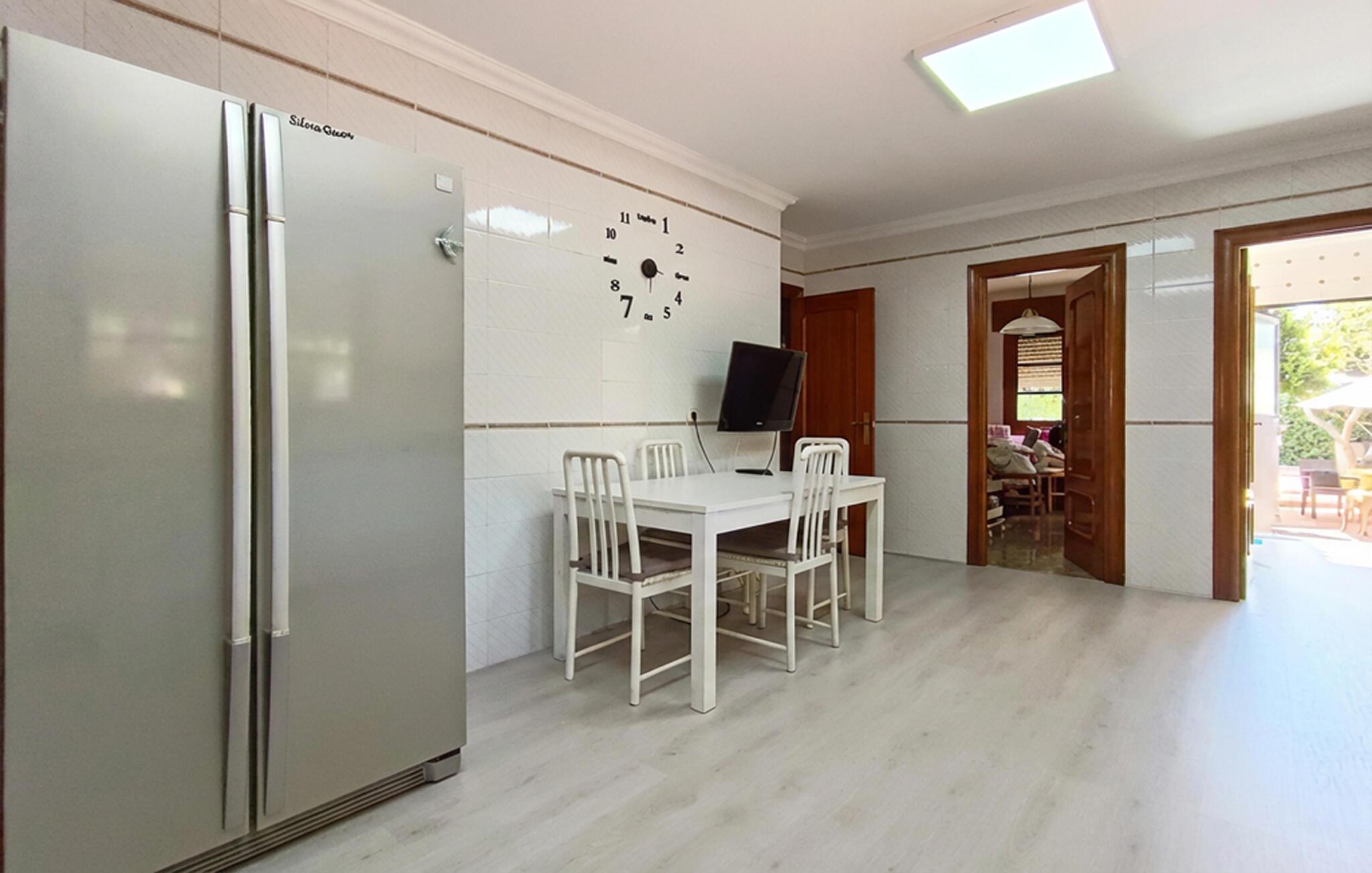 Dette rummelige, moderne udstyrede feriehus tilbyder rigelig plads til en større familie eller en gruppe venner, hvor de kan tilbringe afslappende dage sammen. Prøv lækre tapas-opskrifter under sjove madlavningsaftener, planlæg jeres aktiviteter sammen til afslappende måltider og find sammen i stuen til en filmaften efter en begivenhedsrig dag.